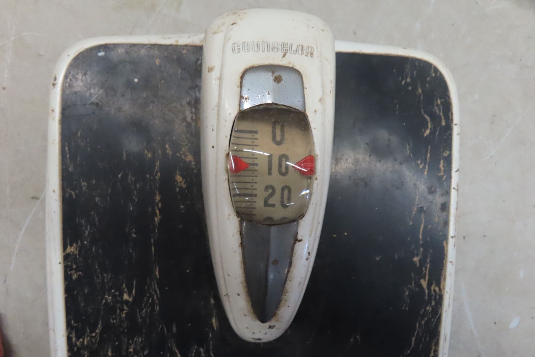 Vintage Scale, 2 Enamel Basins, Glass Door Knobs and Wood Crate