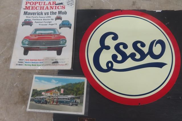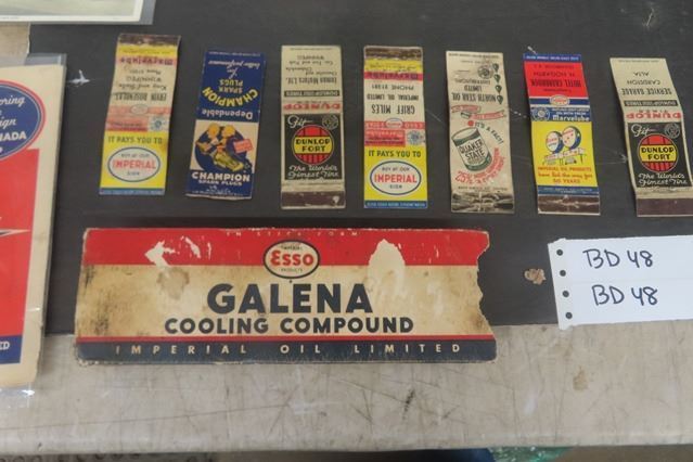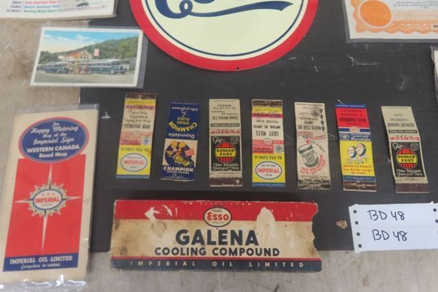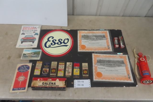 Vintage Service Station Oil Company Lot ; Gulf Oil Gas Pump Telephone, Esso Cooling Compound, Imperial 3 Star Road Map, Oil Company Stocks, Esso Postcard, Matchbook Covers Including; Quaker State, Champion Spark Plugs plus much more