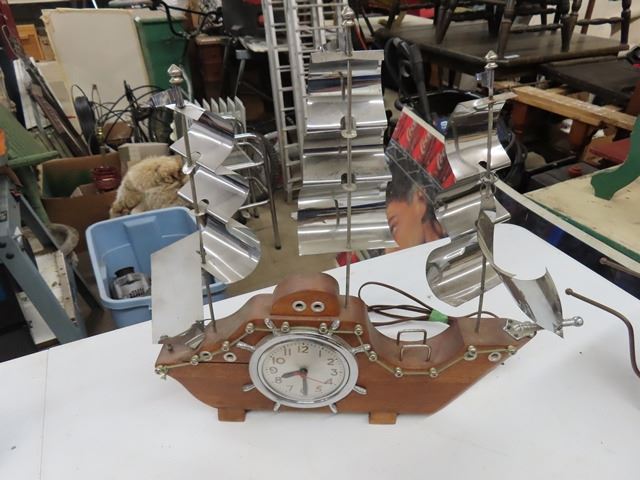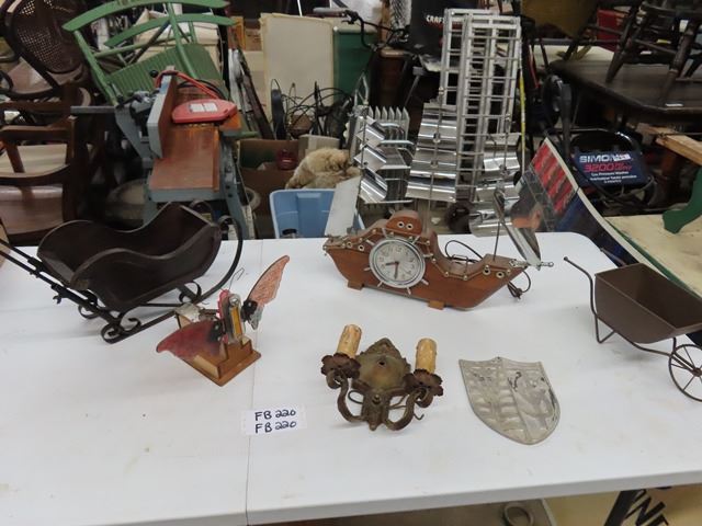 Vintage Sessions Wood + Metal Boat Clock 19" x 19", Wall Scone, Sled Planter, Wheel Barrow Planter, Home Made Butterfly Gizmo