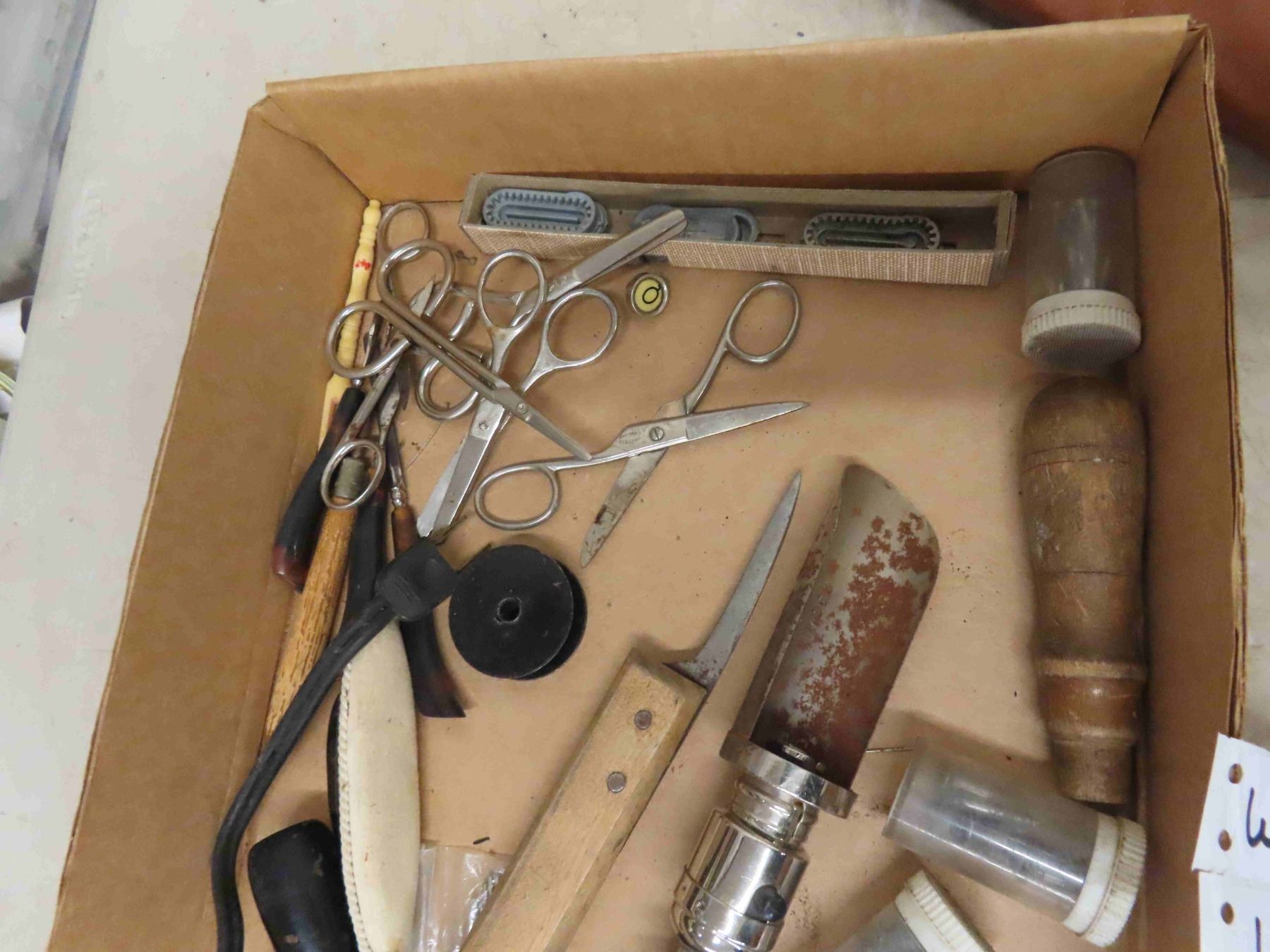 Vintage Sewing Supplies, Scissors, Magnifier Glass, Tools