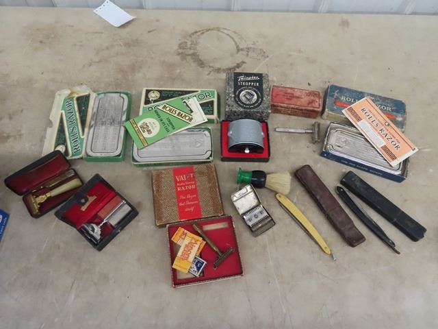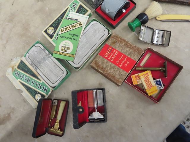 Vintage Shaving Items - Straight Blades, Razors All in Boxes, & Some w Pamphlets, Rolls Razor Valet