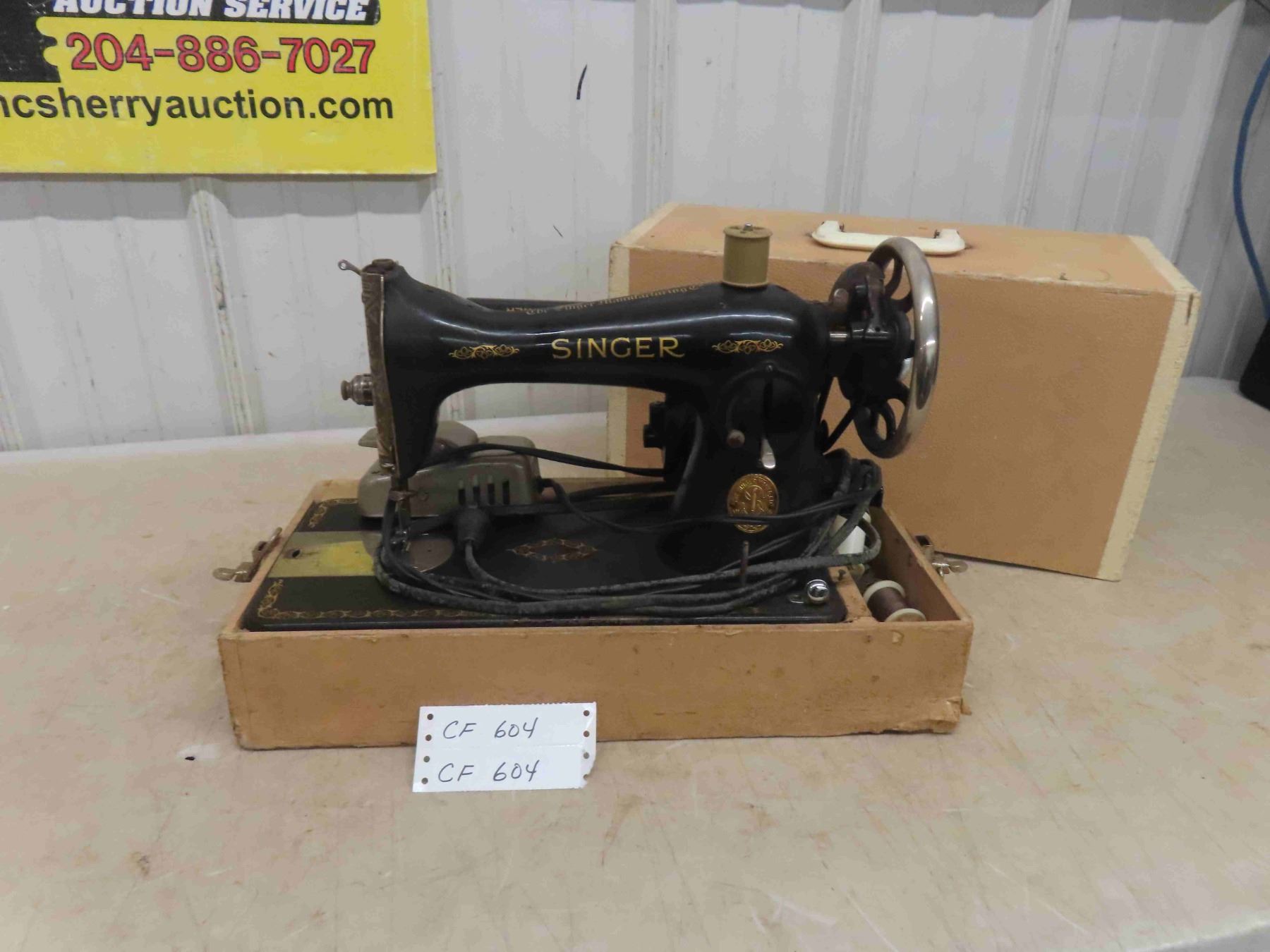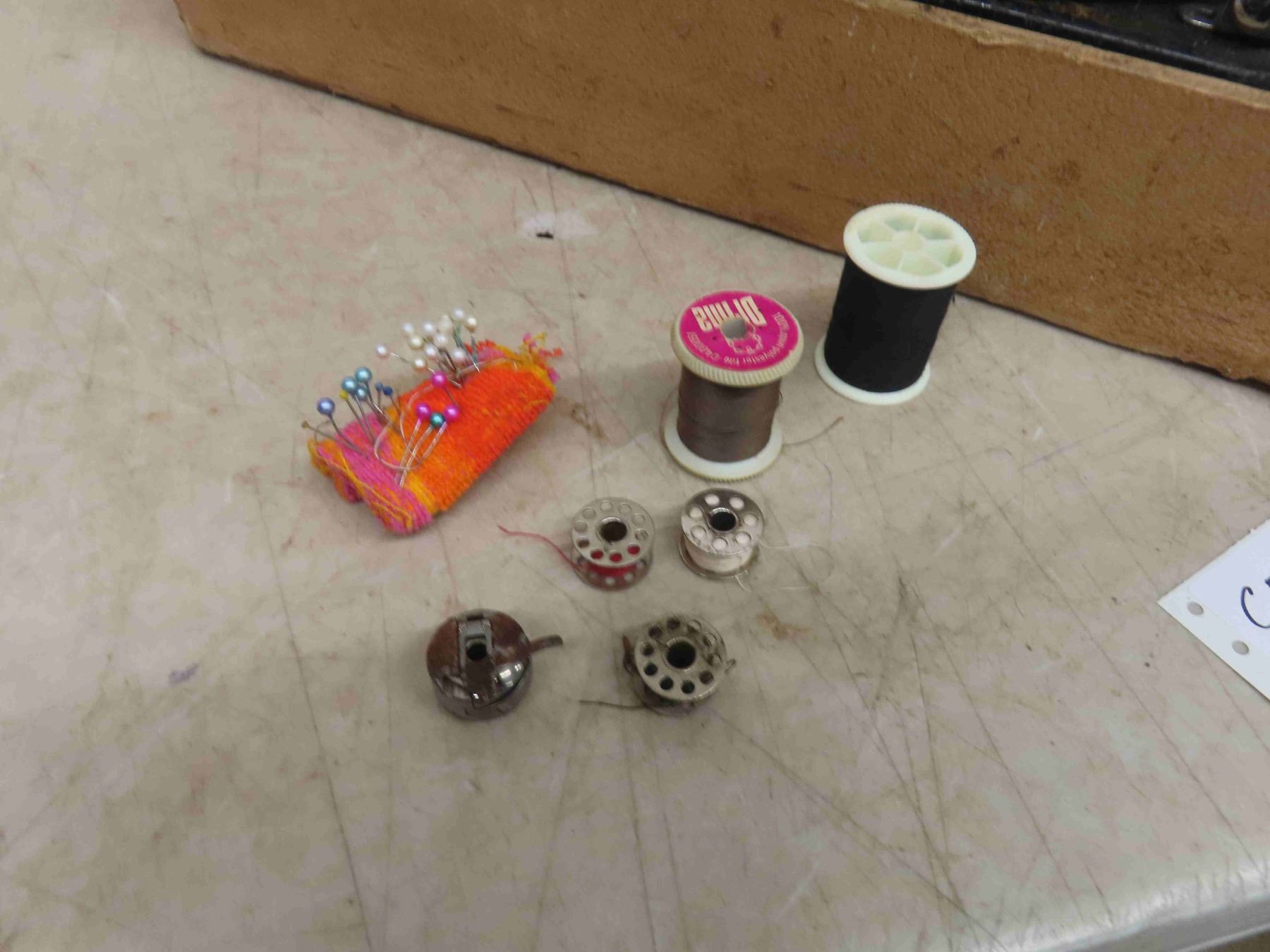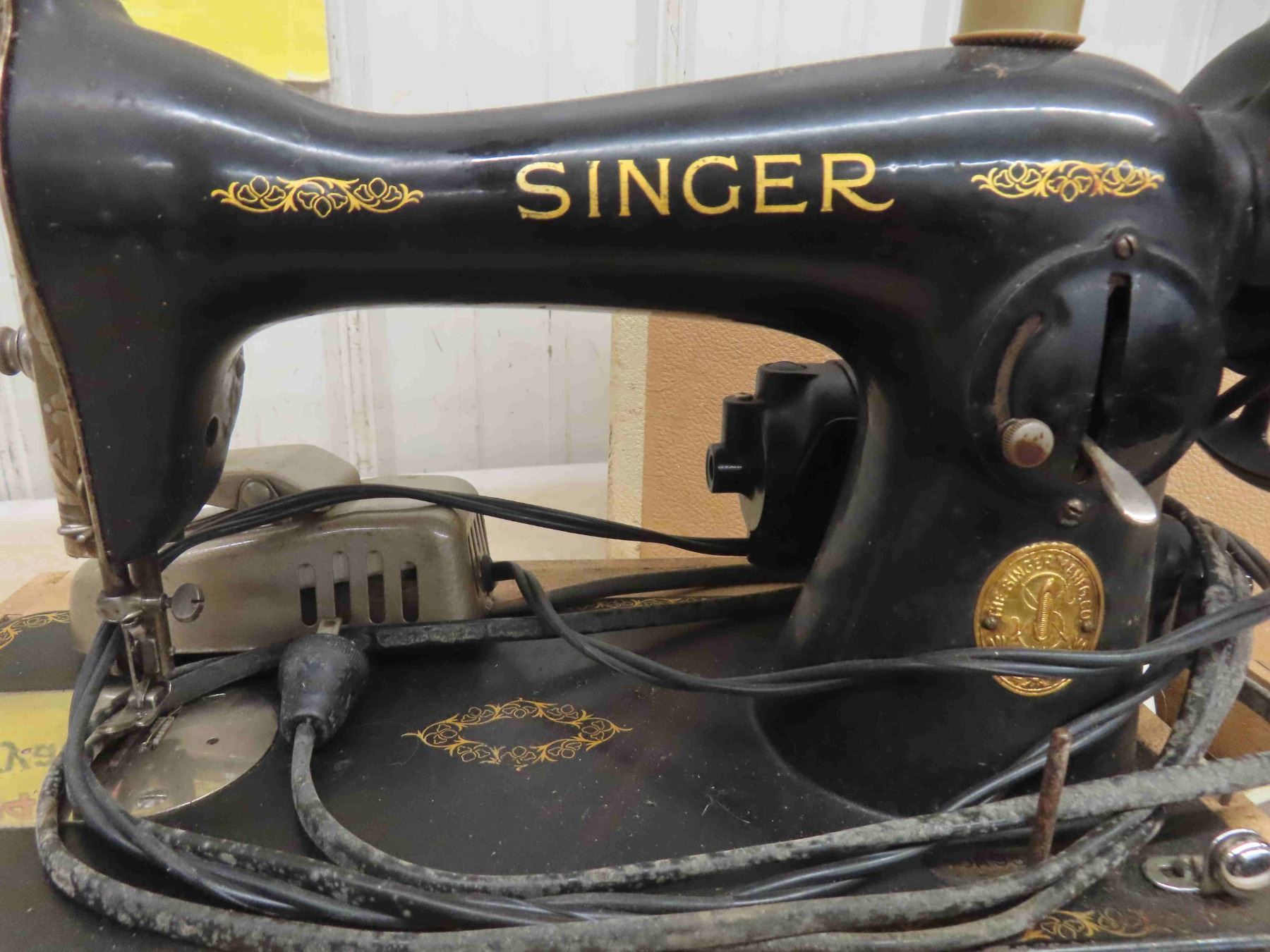 Vintage Singer Sewing Machine with Thread Bobbins + Carrying Case