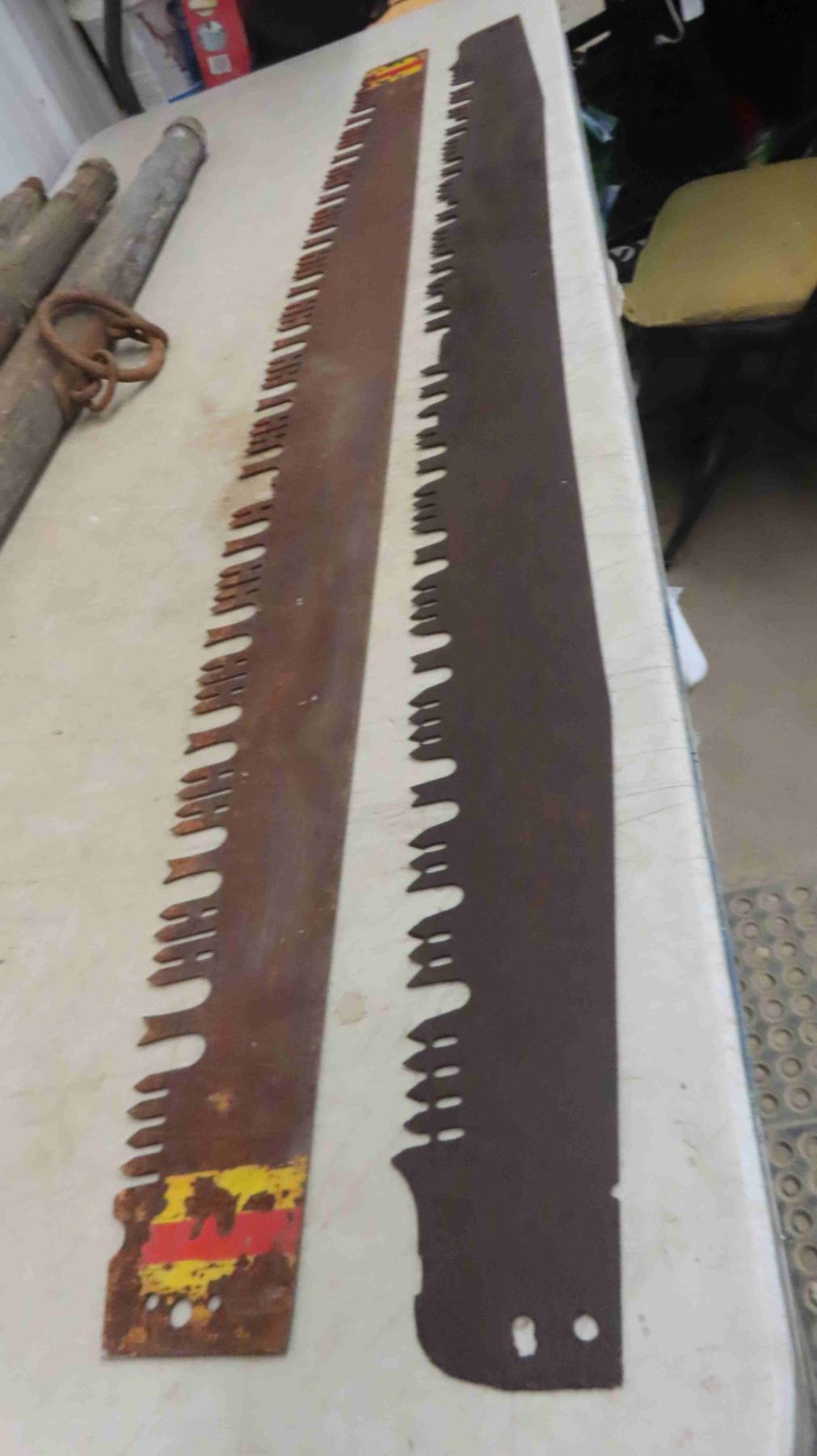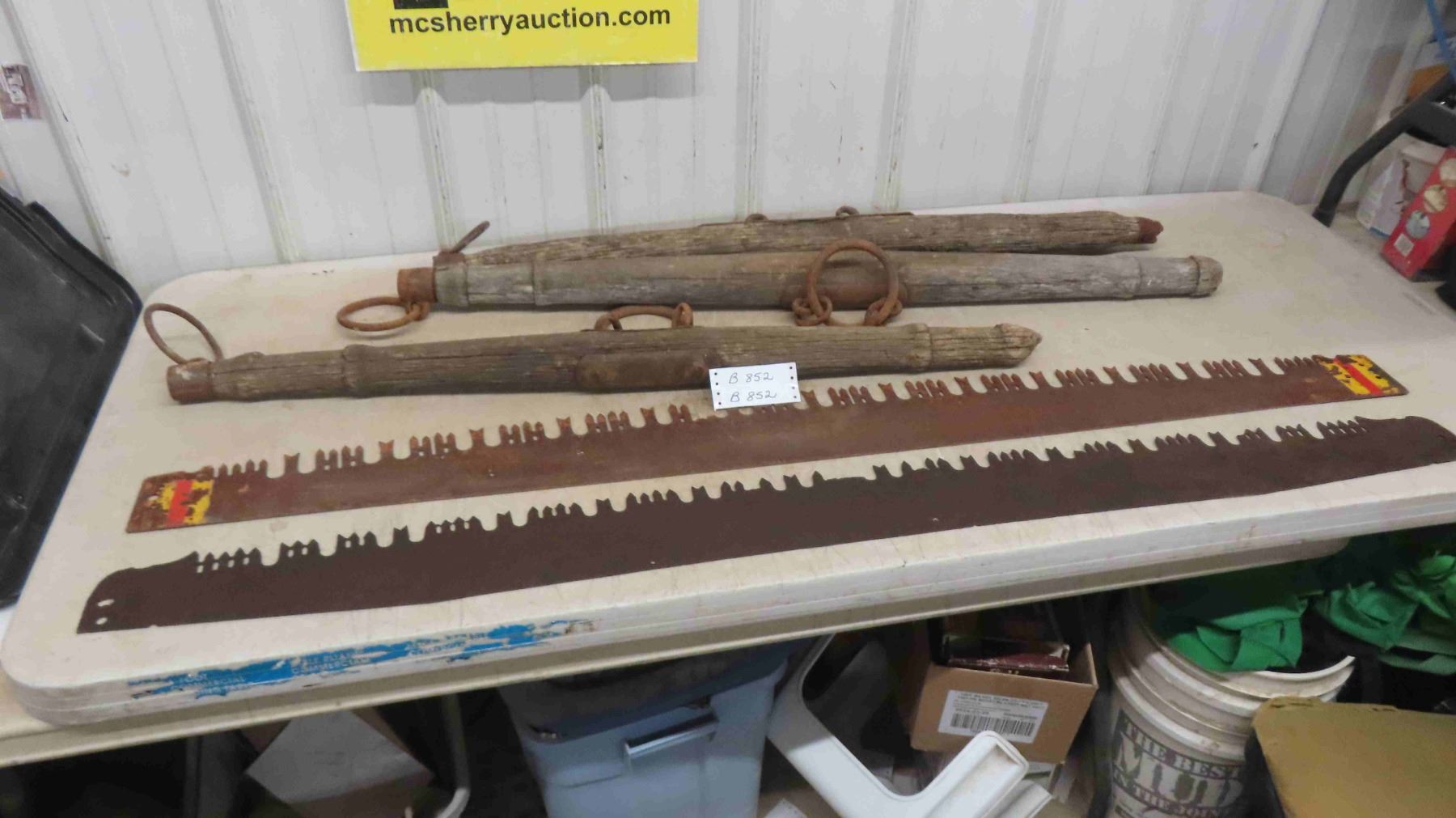 Vintage Single Trees , 2 Double Handled Saw Blades 60'' L