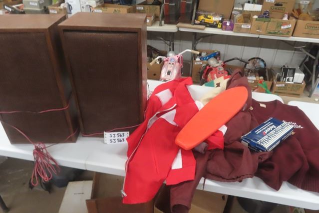 Vintage Skateboard, Pair of Speakers, A Couple Jackets