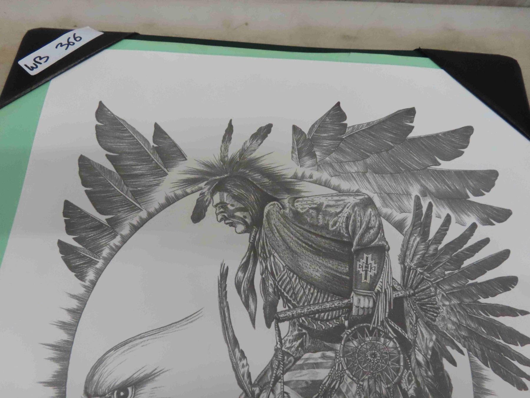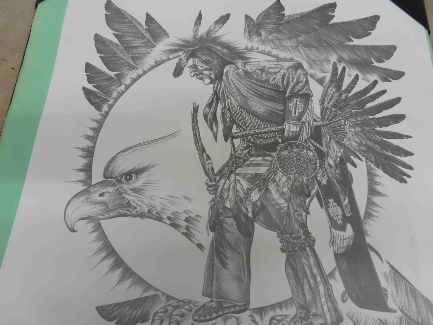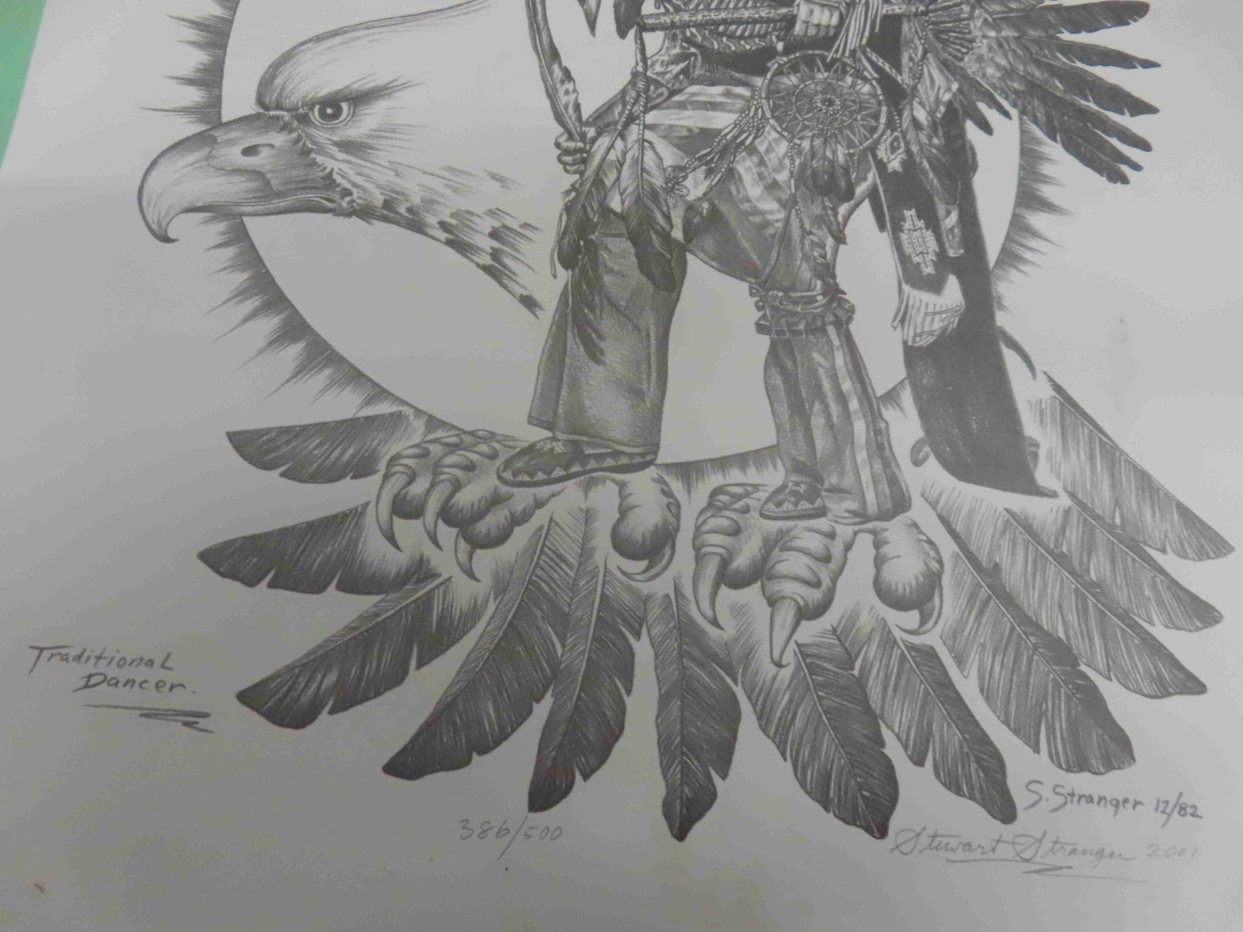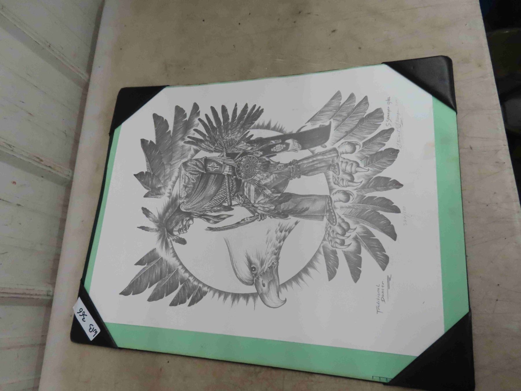 Vintage Sketch Drawing First Nations Artist Stewart Stranger 22'' x 18''
