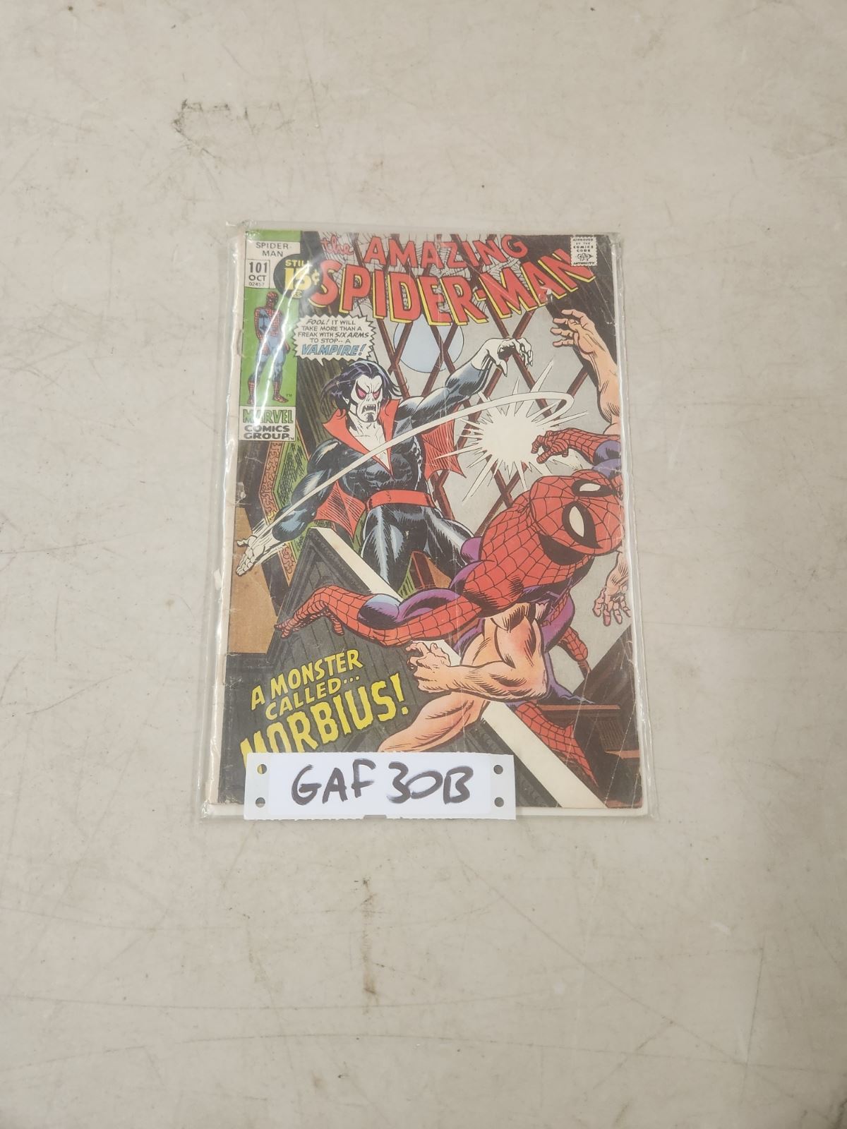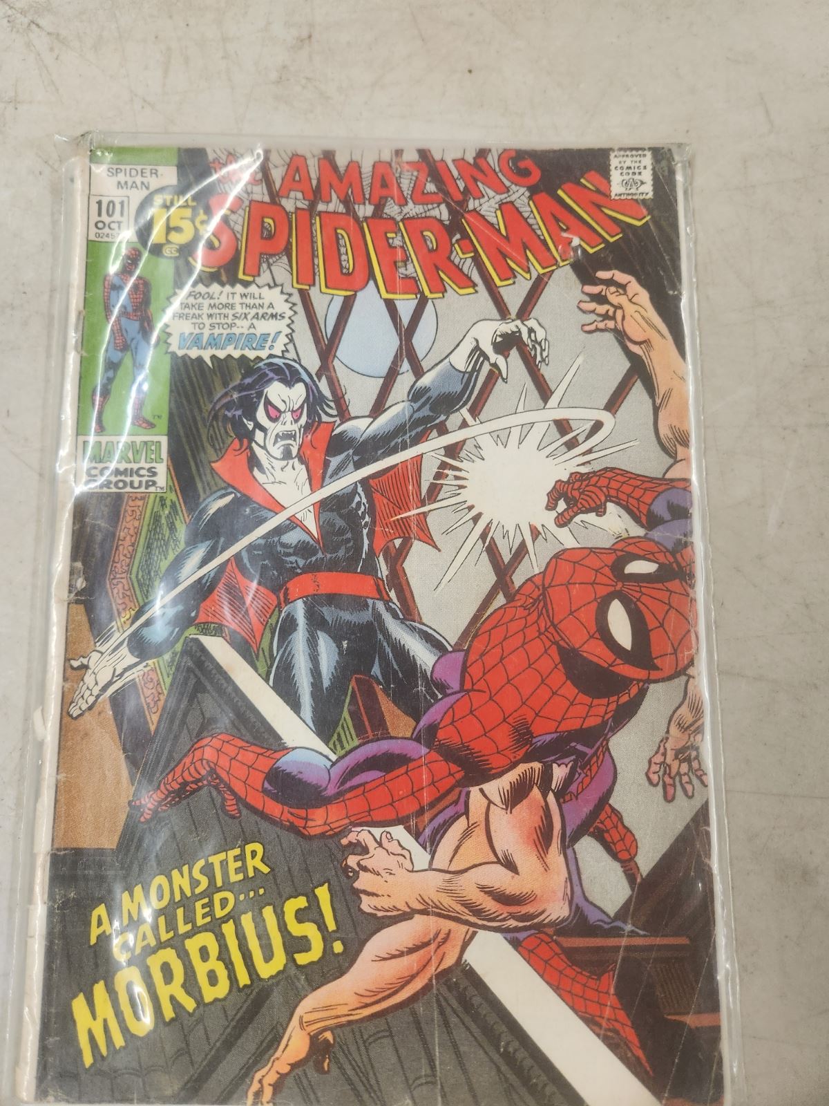 Vintage Spiderman comic. Amazing spiderman 101. 1st appearance of Morbius.