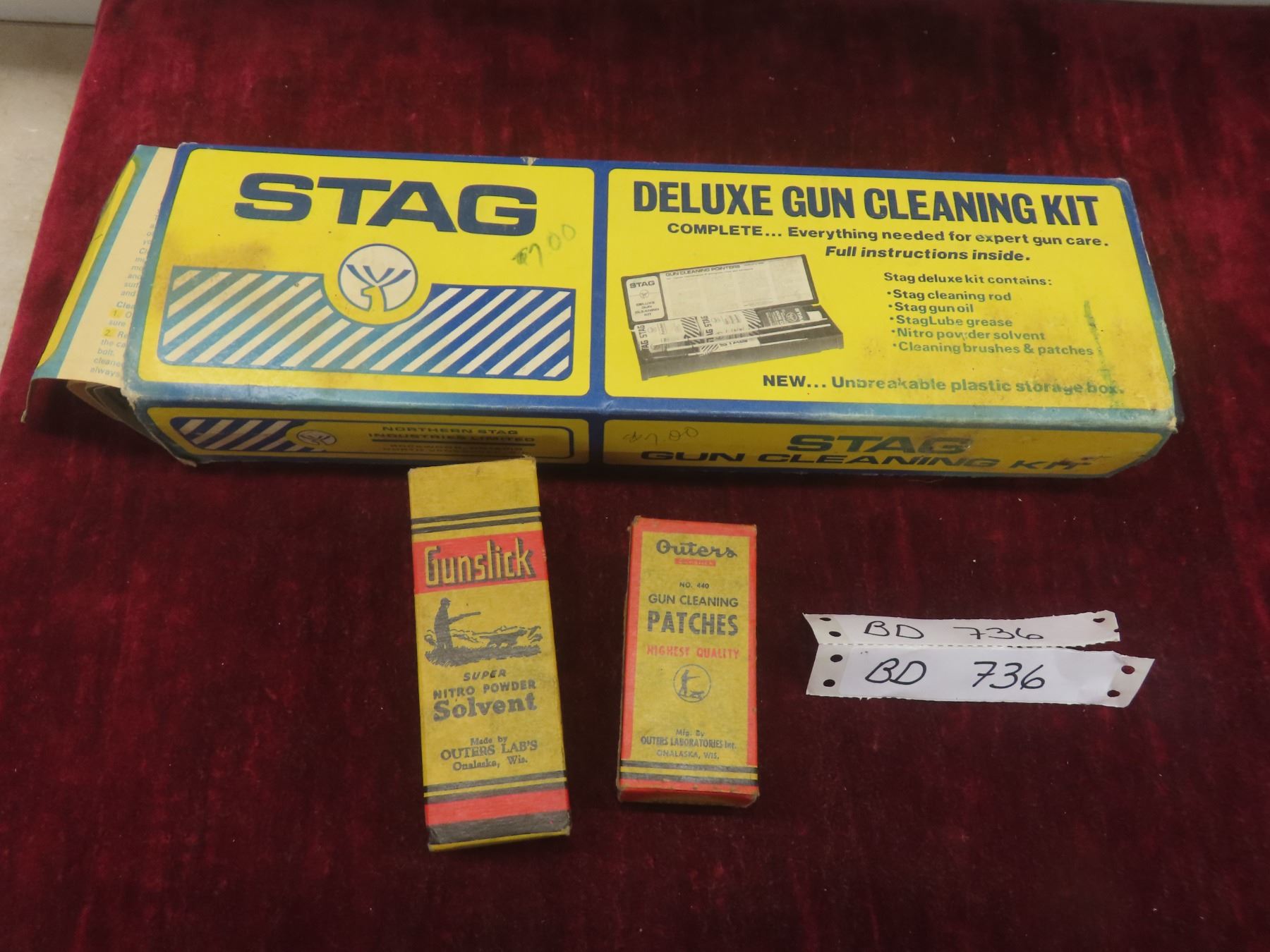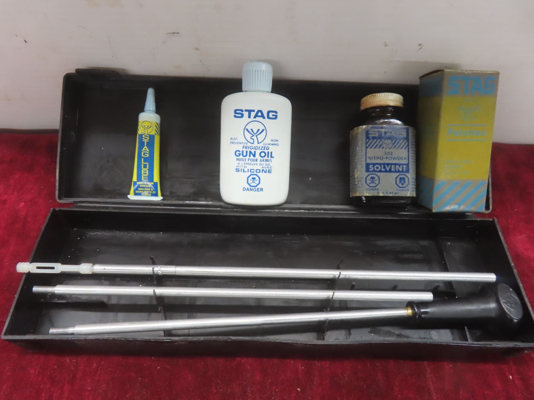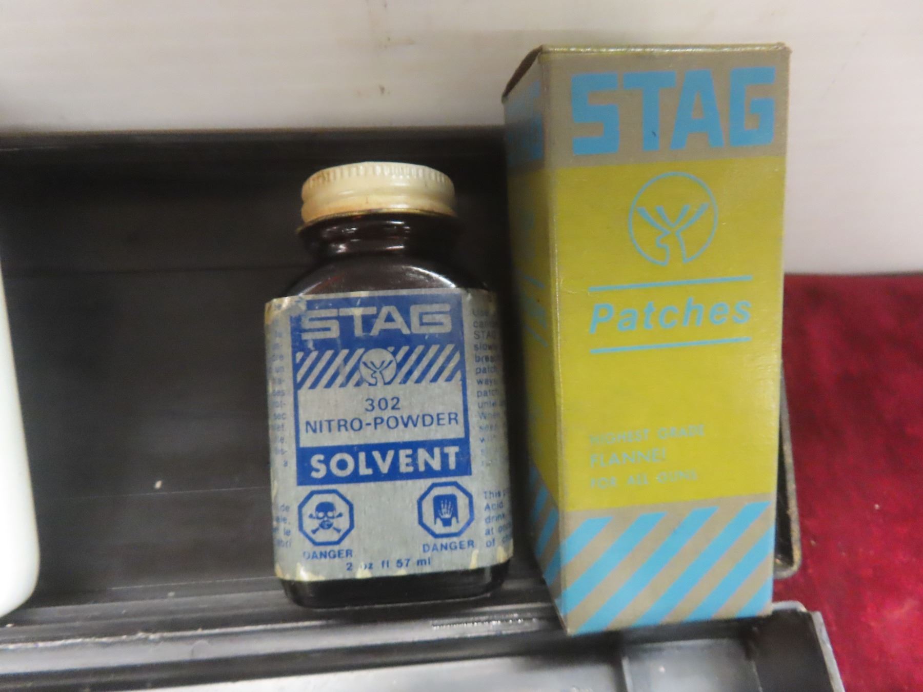 Vintage Stag Gun Cleaning Kit. Patches, Solvent in Org Box