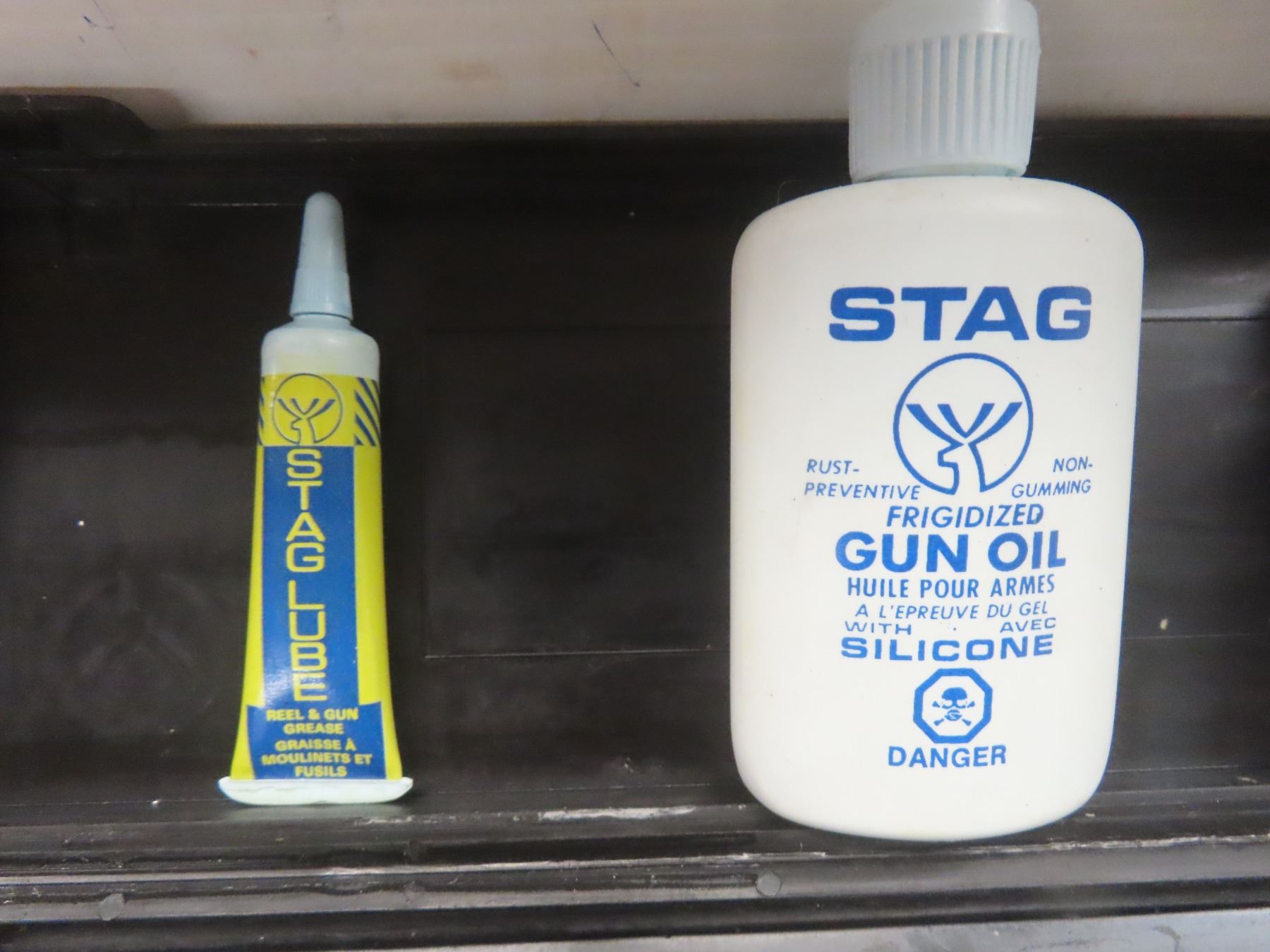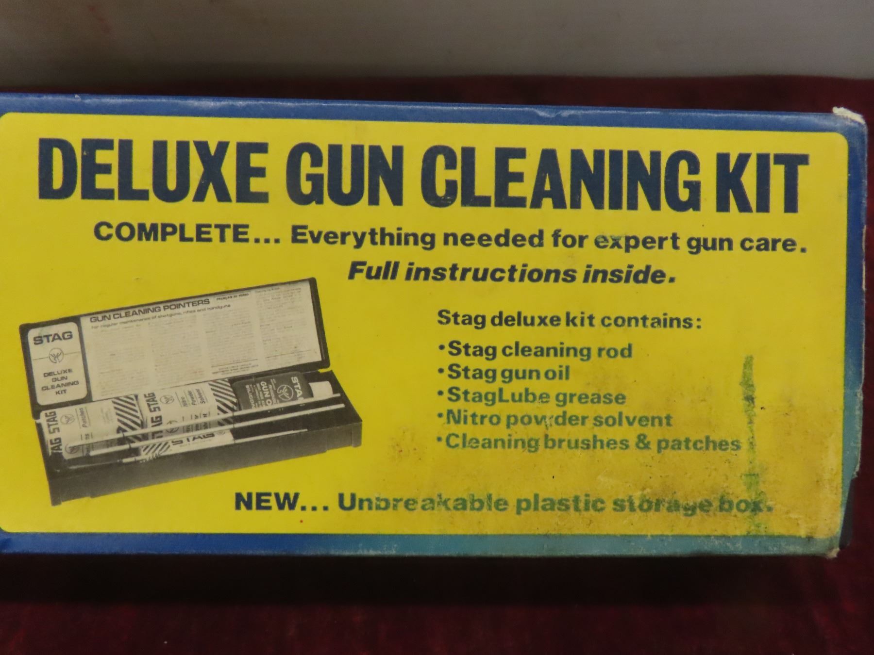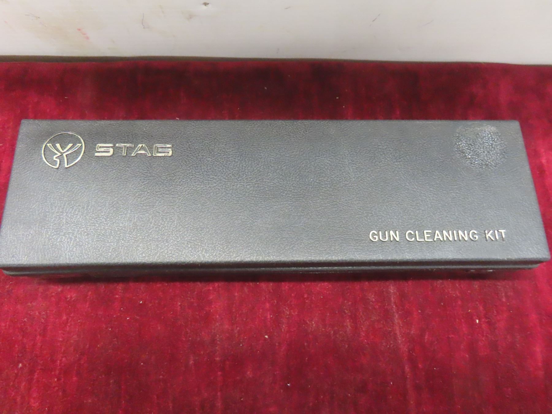 Vintage Stag Gun Cleaning Kit. Patches, Solvent in Org Box