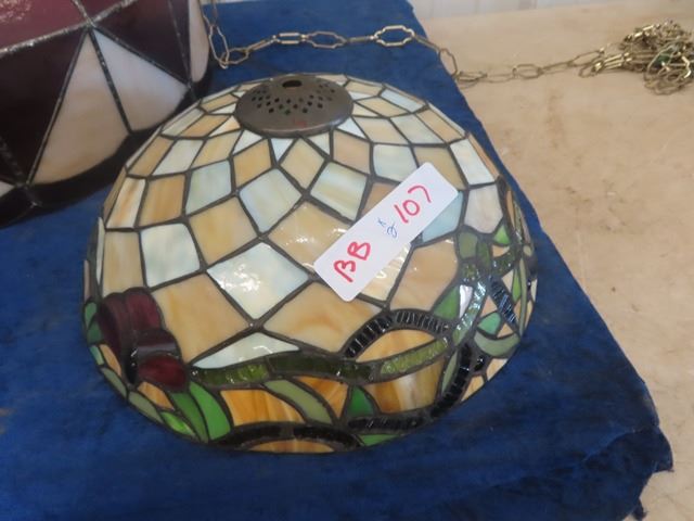 Vintage Stained Glass Swag Lamp with Tiffany Style Stained Glass Shade