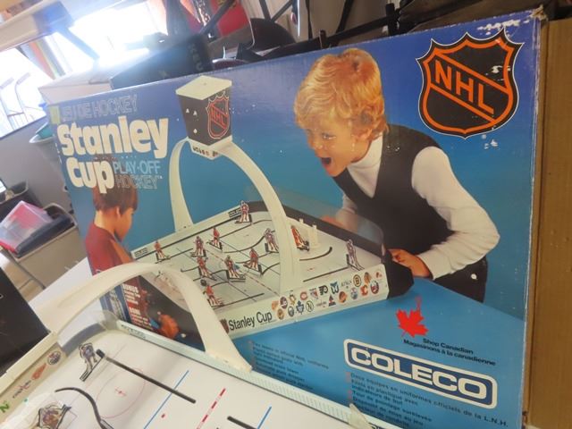 Vintage Stanley Cup Playoff Table Hockey Game. Teams are WPG Jets + EDM Oilers - Comes with Puck, Extra Team Players, Stickers & Original box