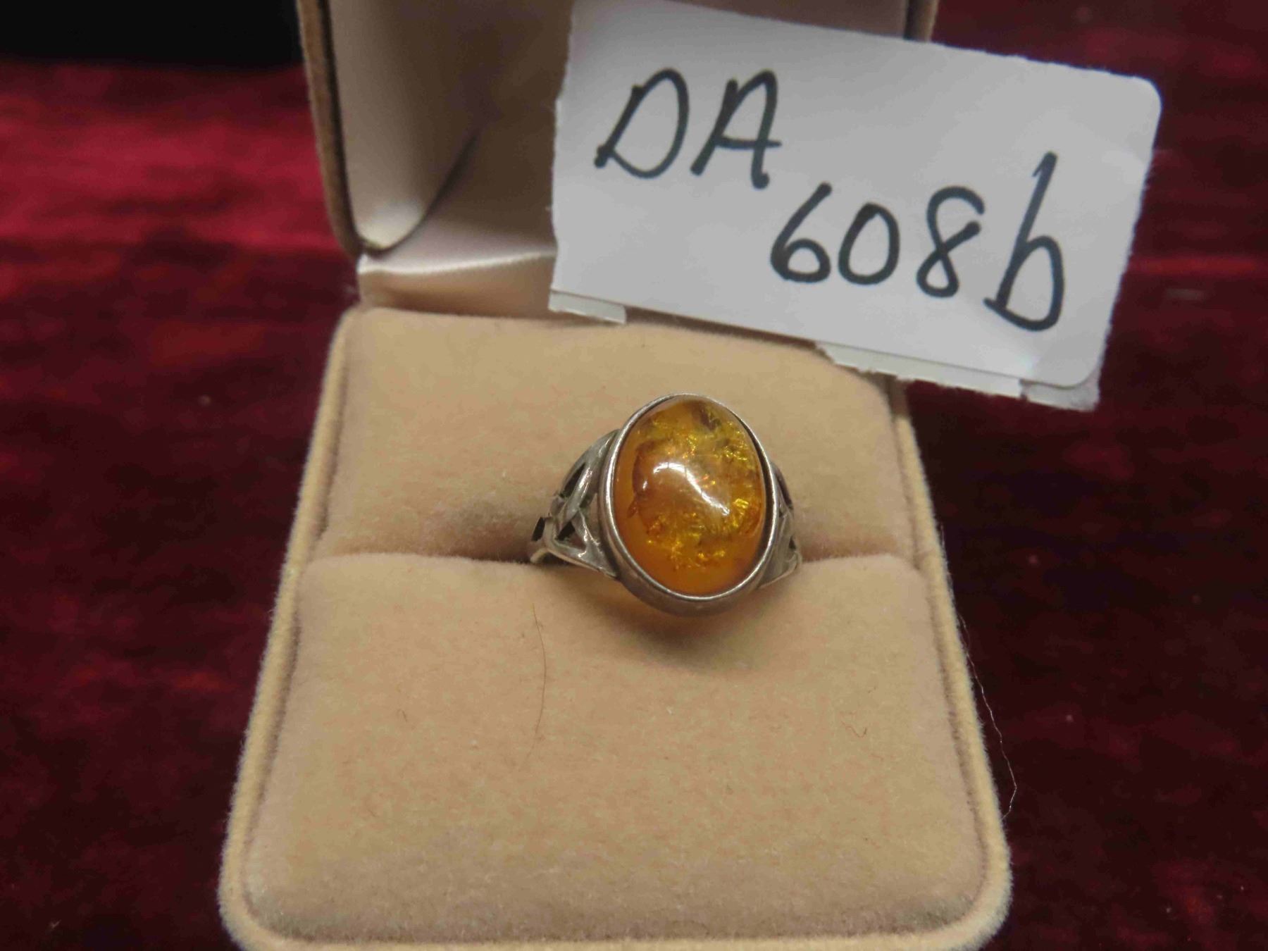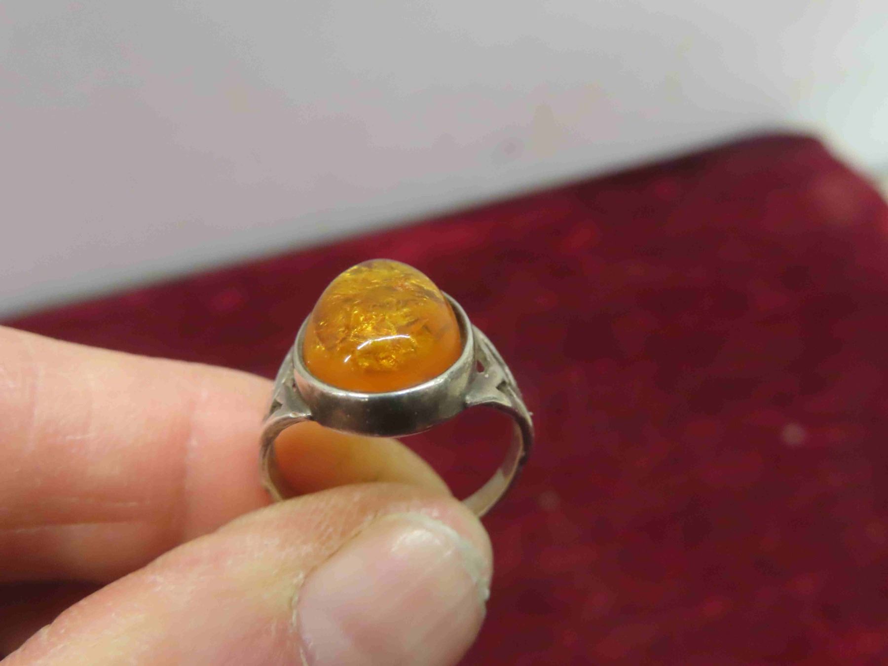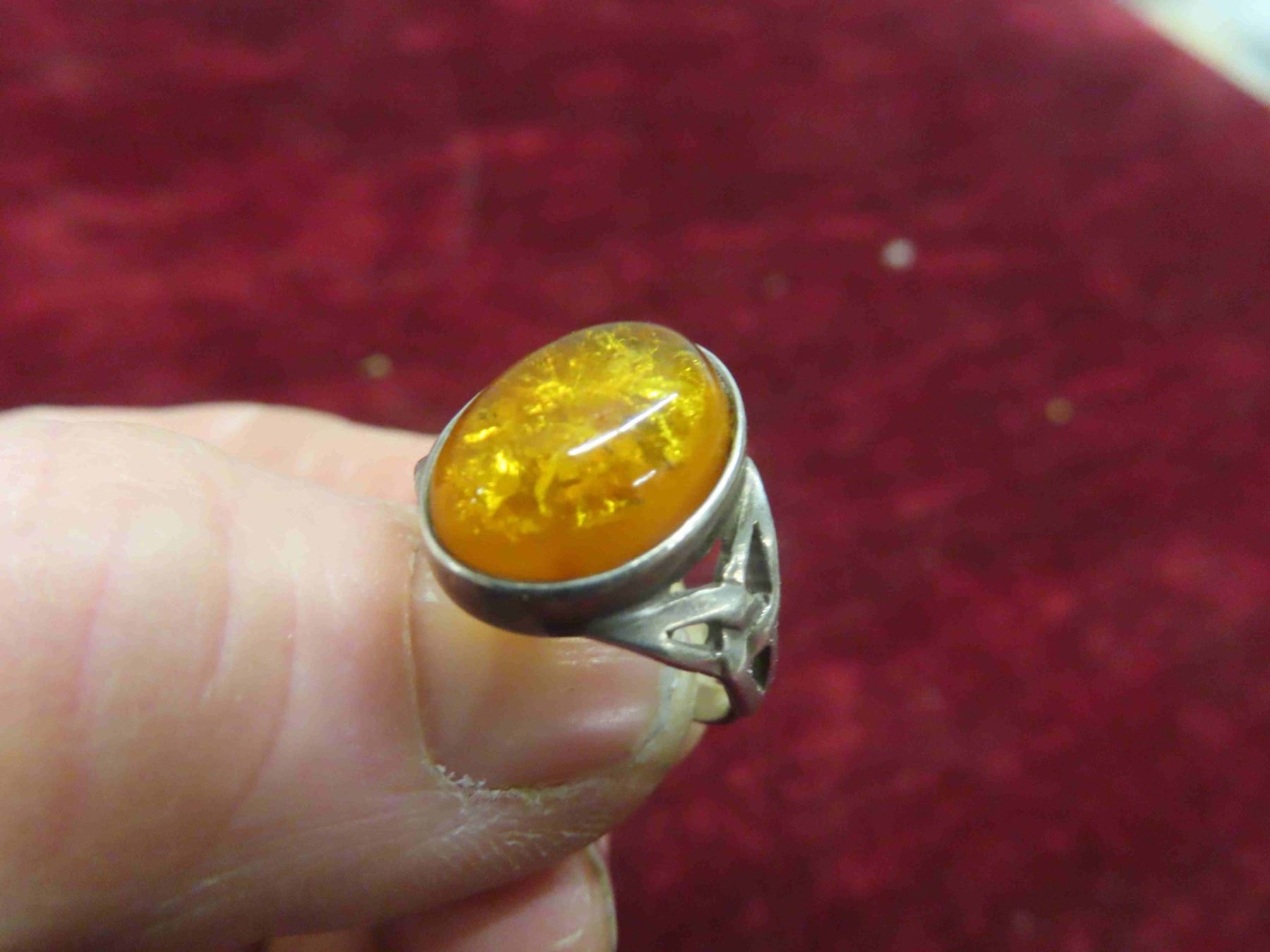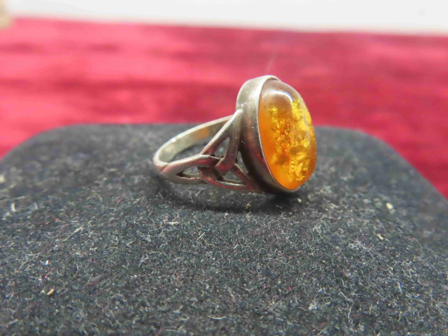 Vintage Sterling Silver + Baltic Amber Oval Ring Size 6