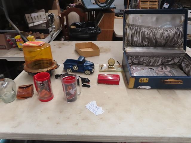 Vintage Suitcase, Popcorn Maker, Ceramic Ford, Ceramic Black Panther, Sewing Tin Plus More!