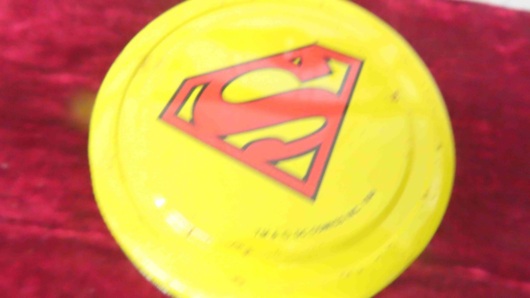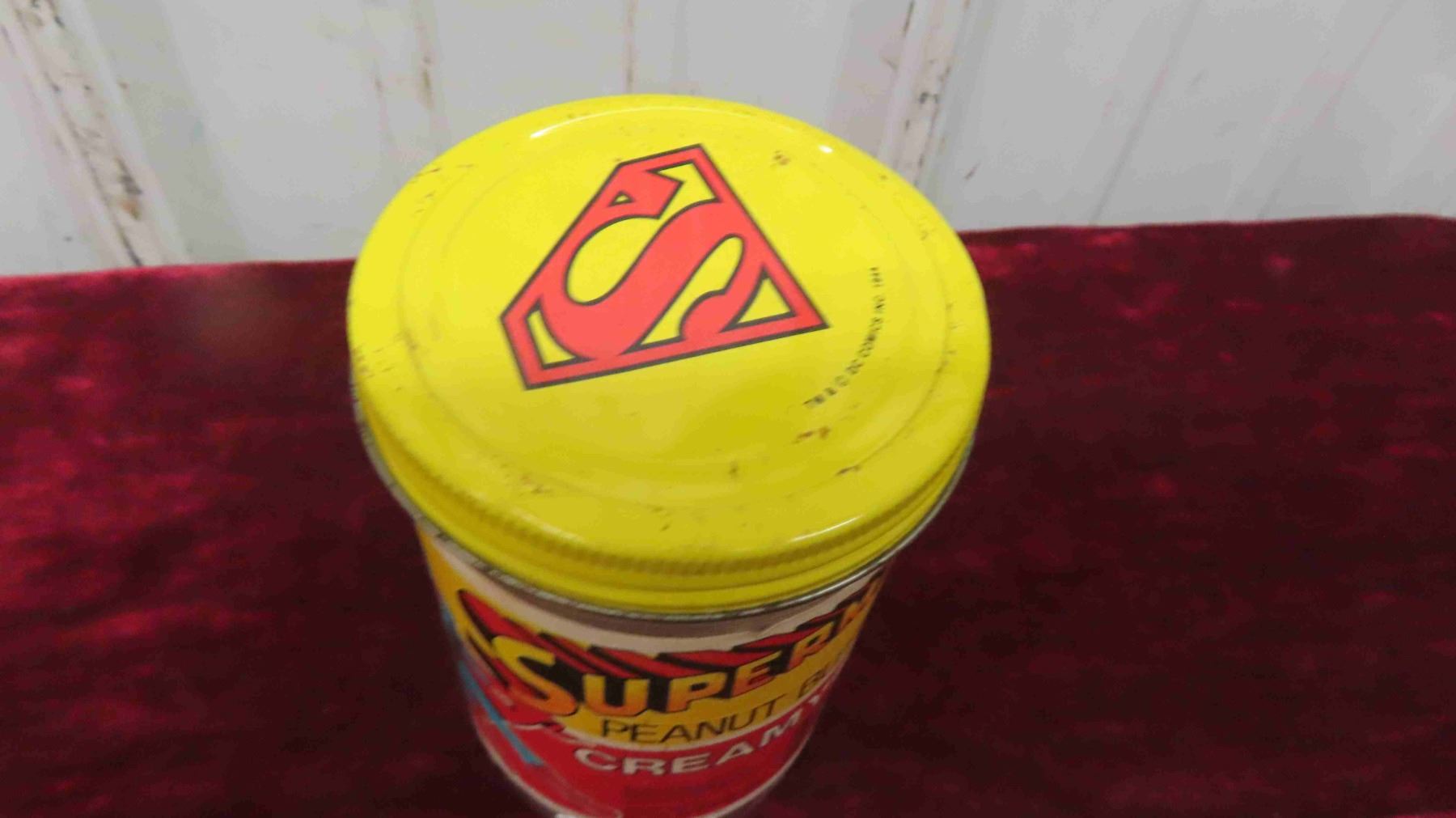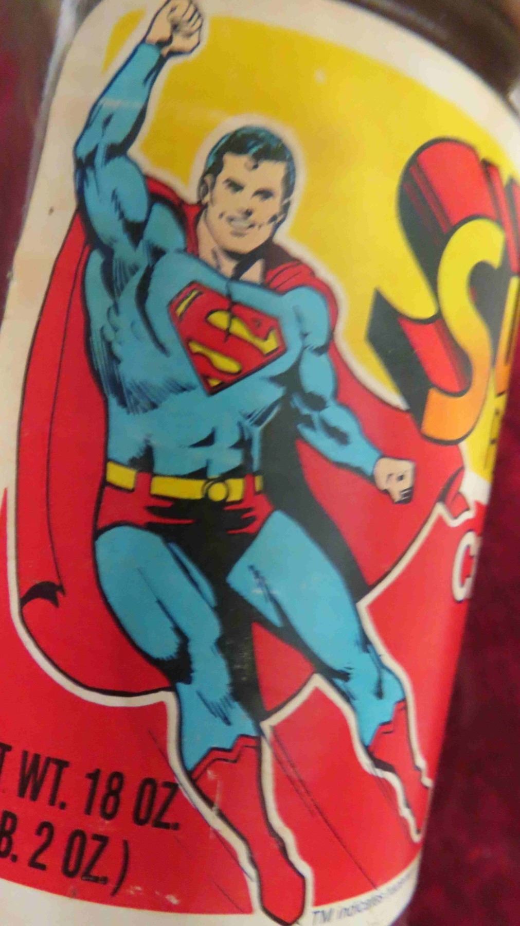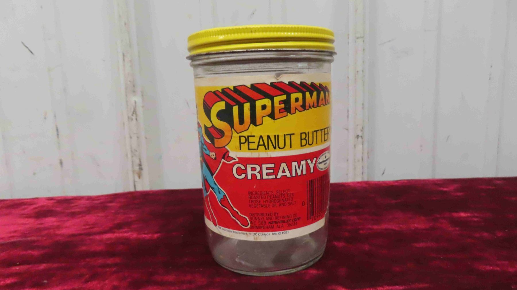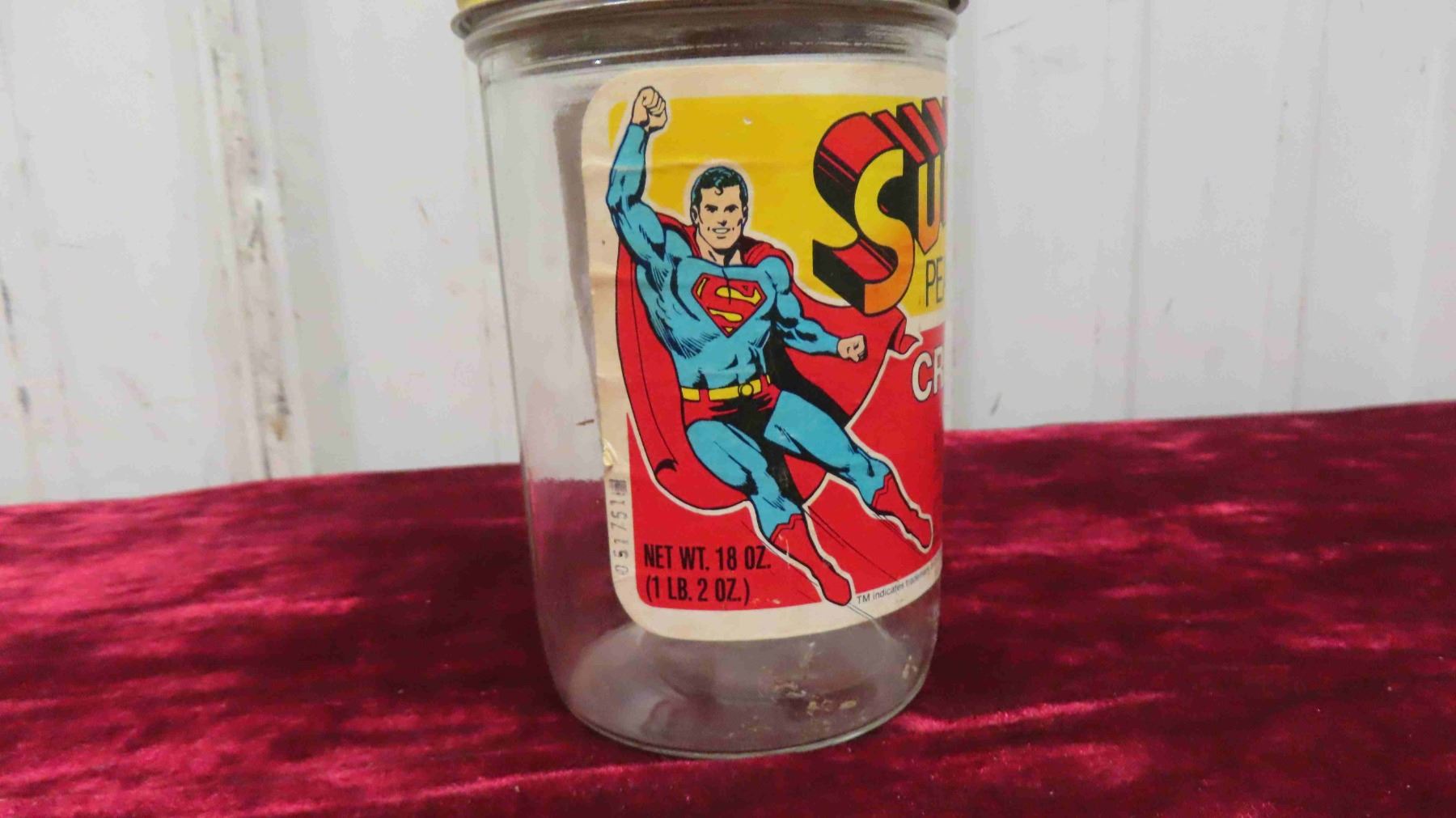 Vintage Superman Glass Peanut Butter Jar with Paper Label - 1944
