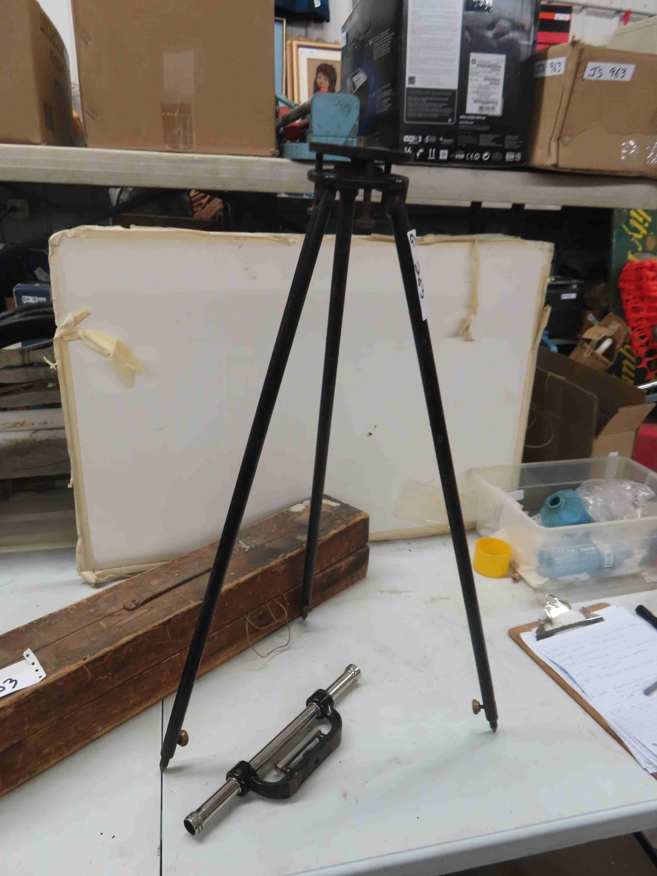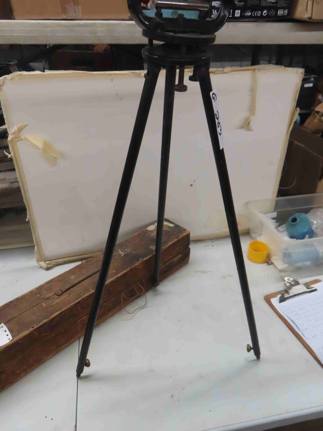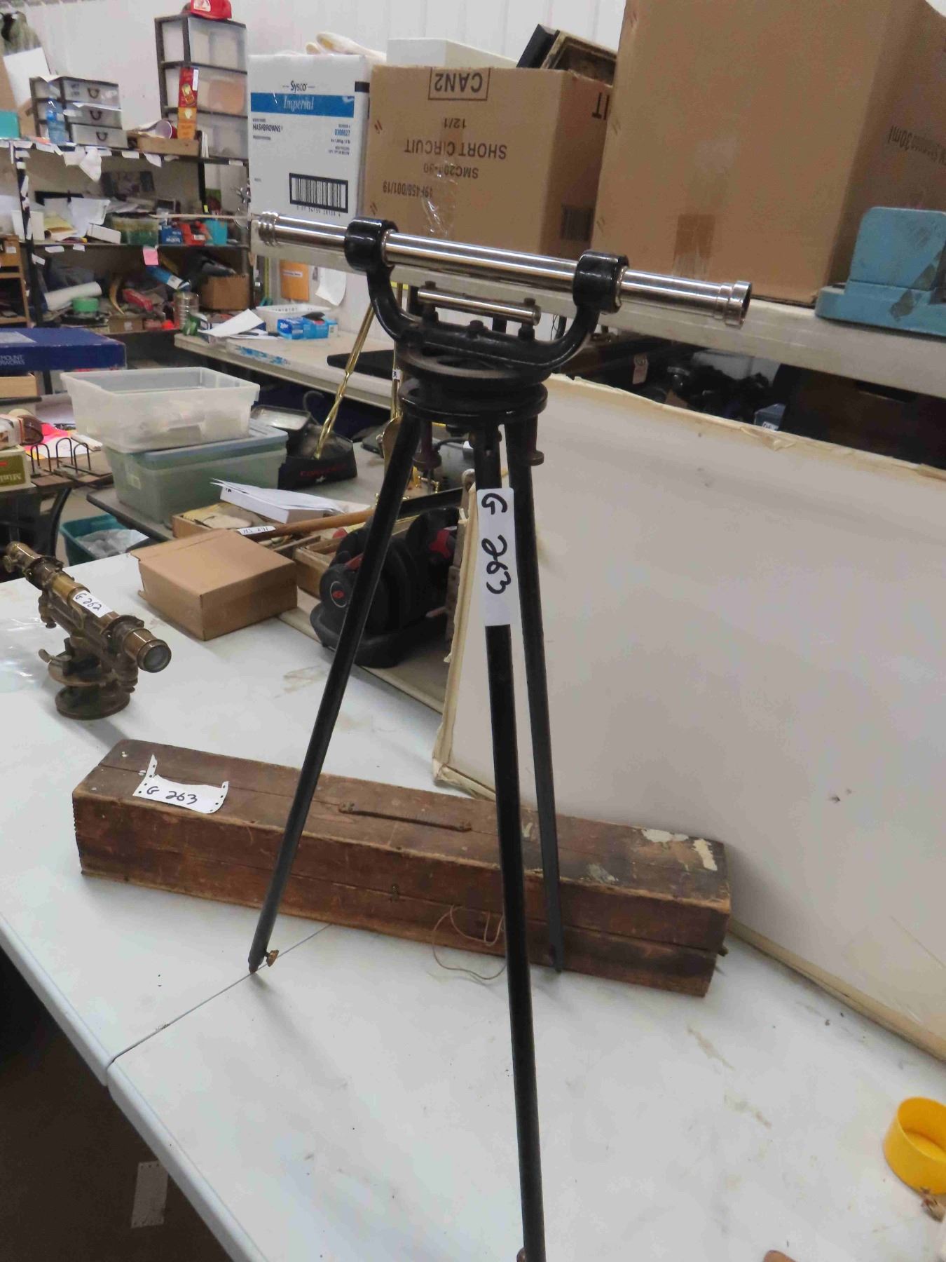 Vintage Surveying Transit by L.S. Starrett Company with Tripod and Wooden Case
