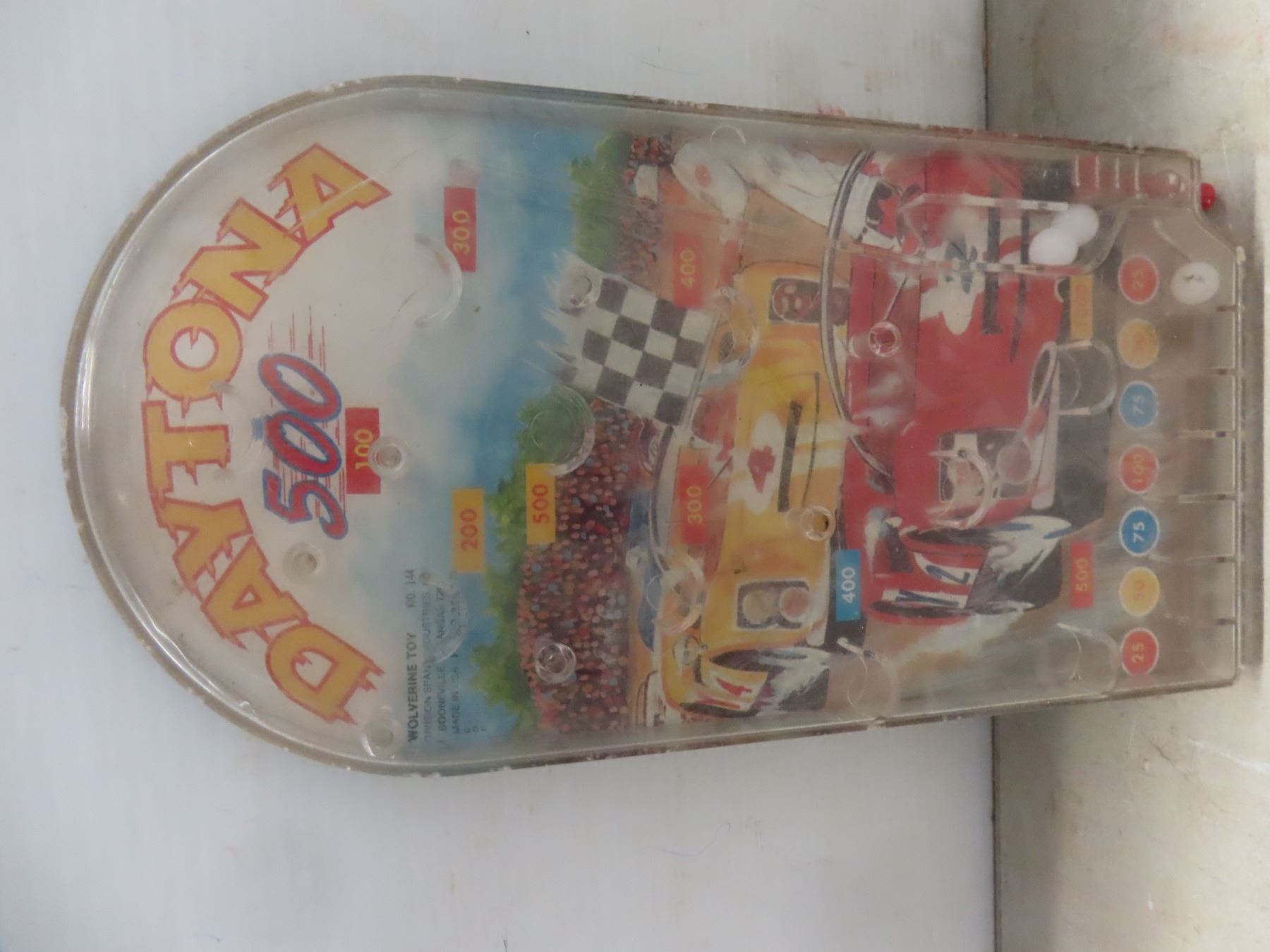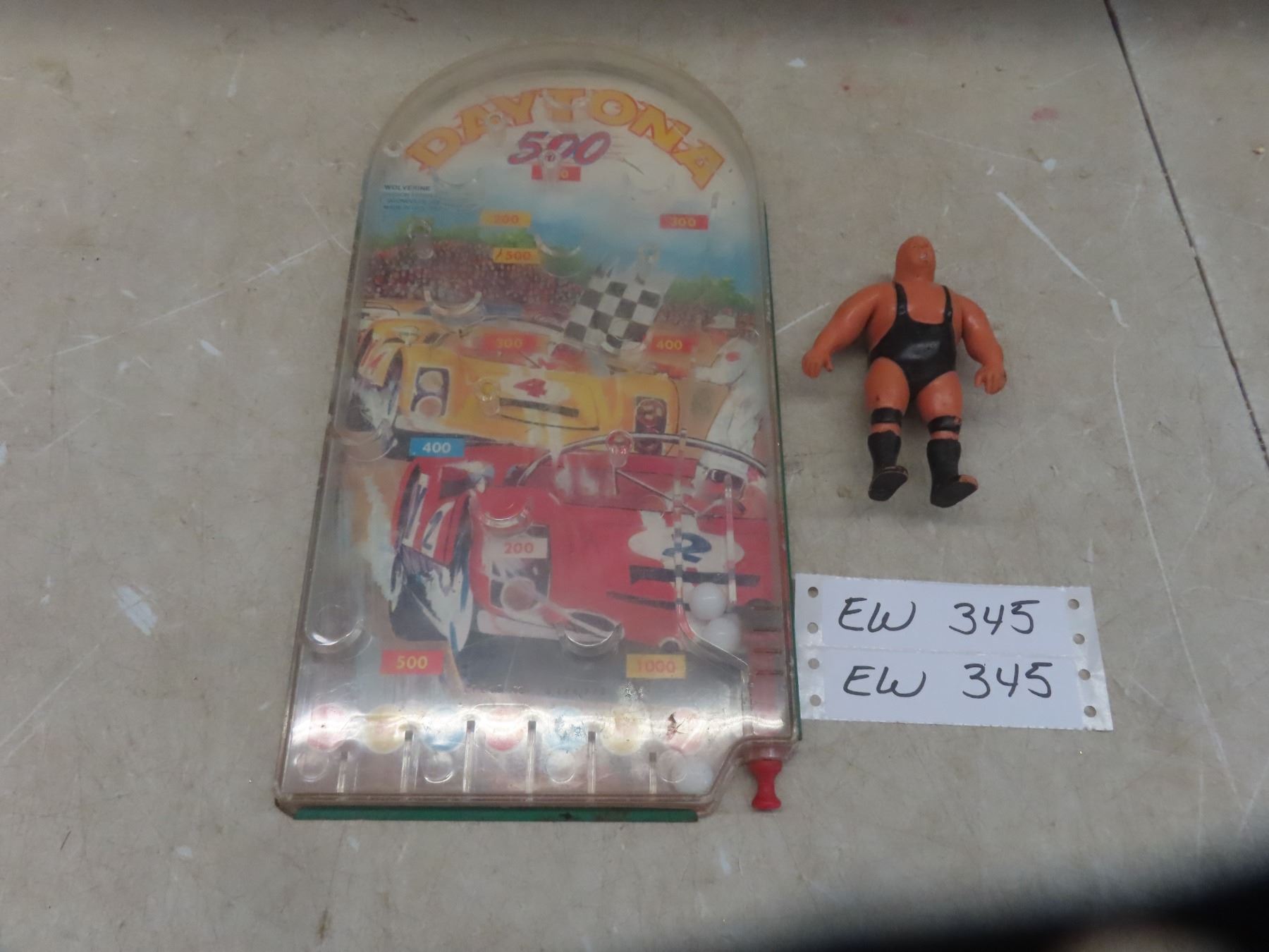 Vintage Table Top Pin Ball "Daytona 500" Game and Wrestling Figure