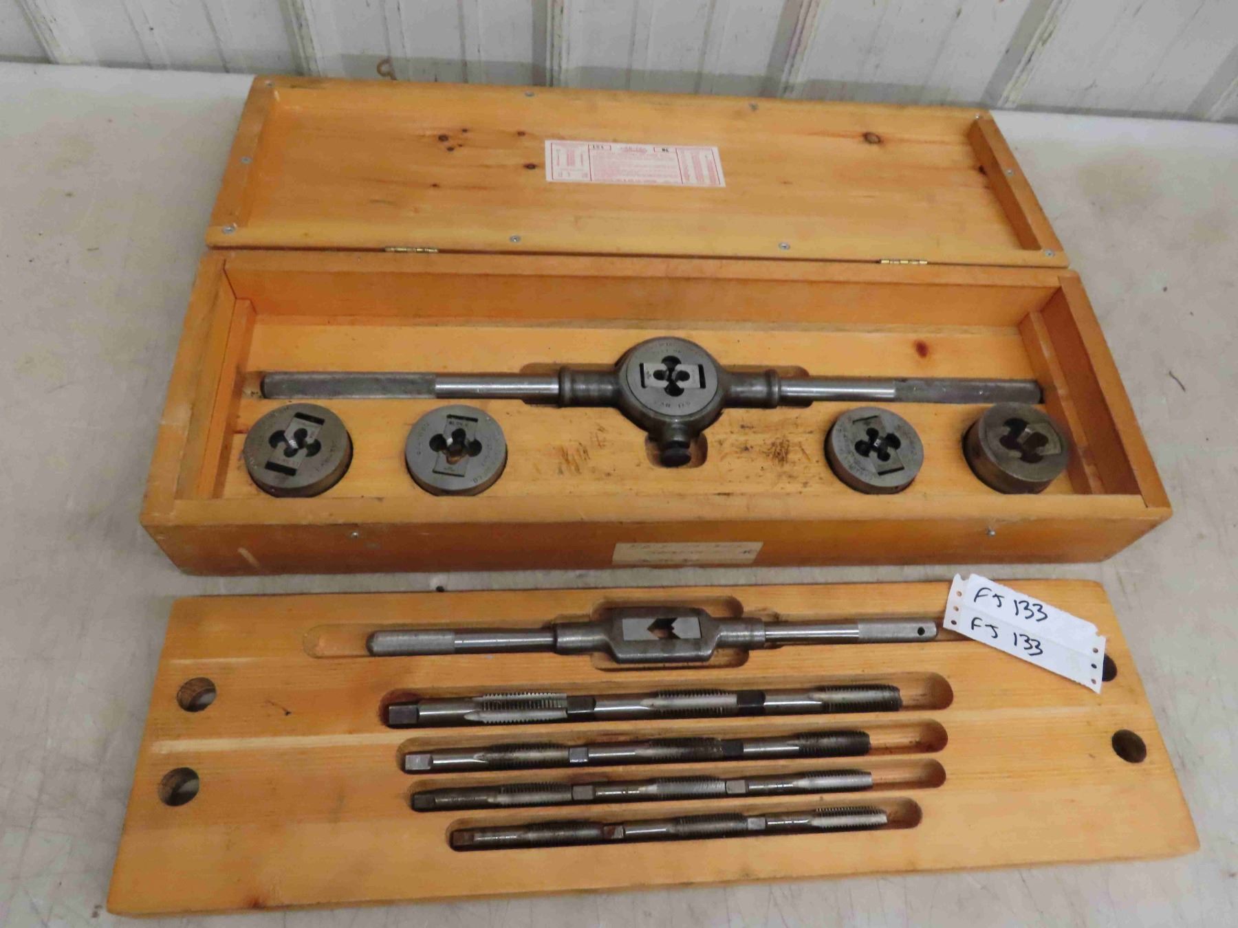 Vintage Tap & Die Threading Set, Size 1/2'' - 3/4'' in Nice Wood Case 'Can-Tap'