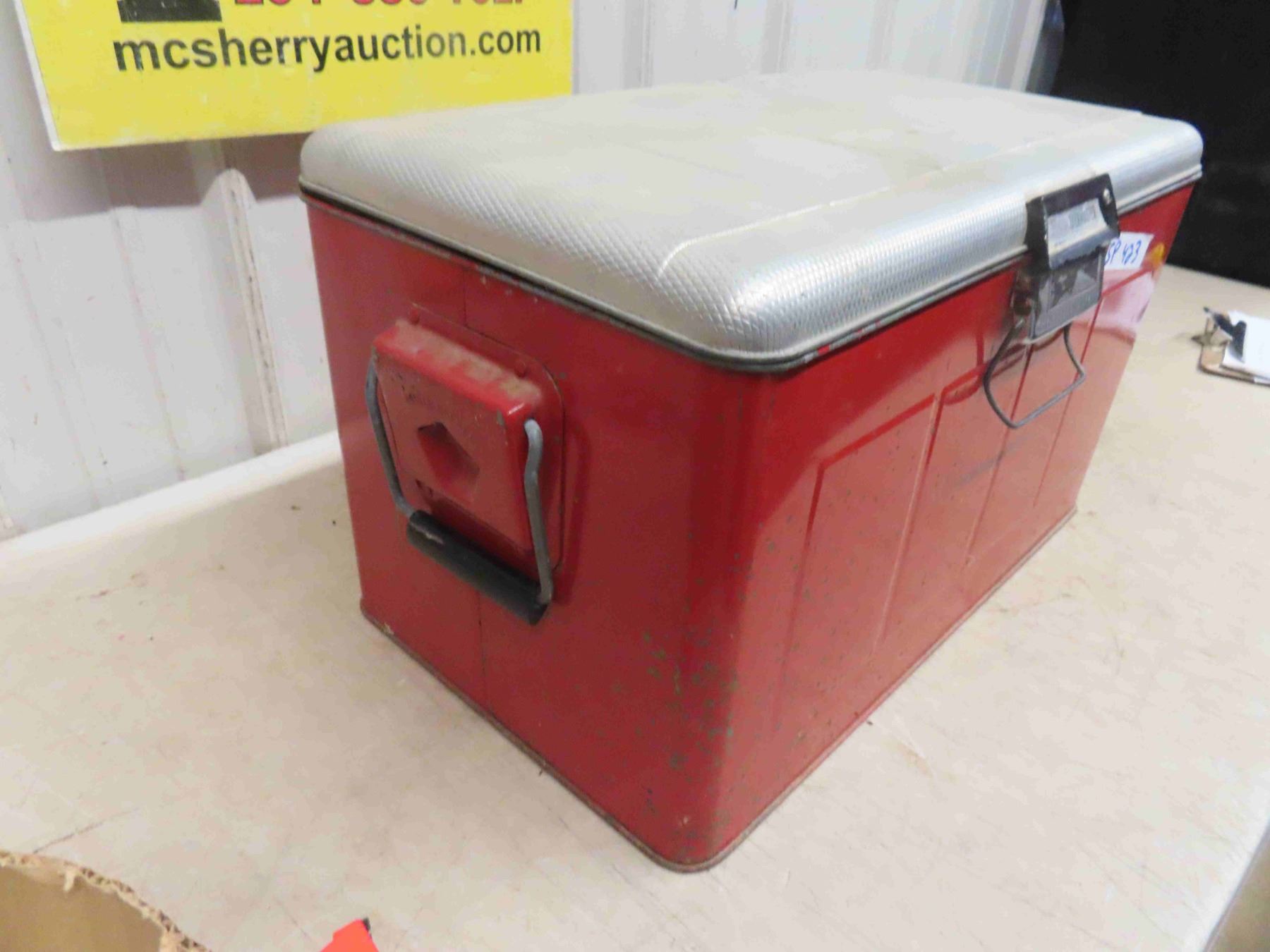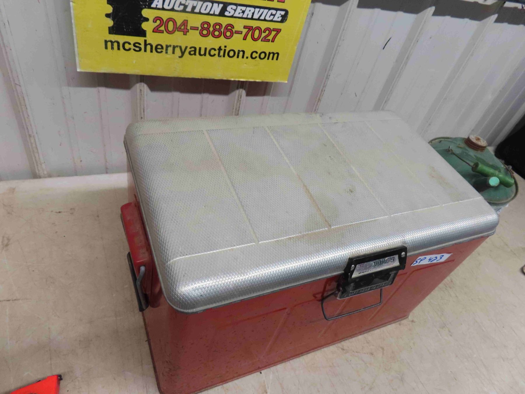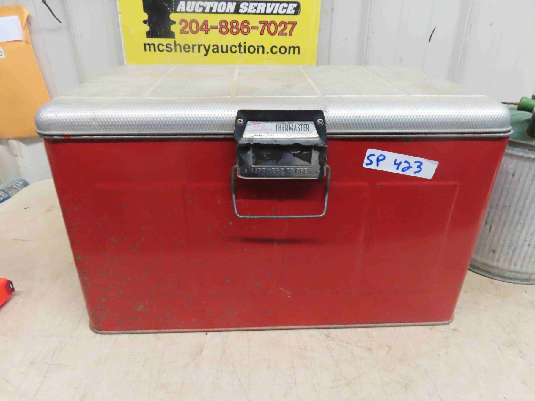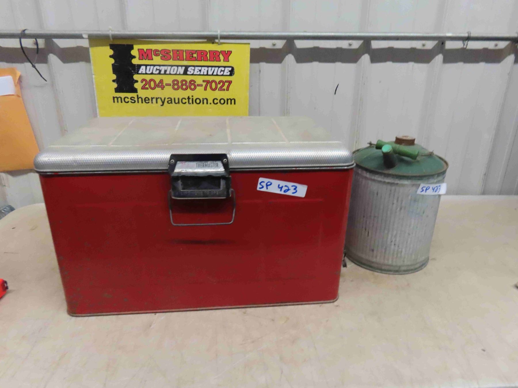 Vintage Thermaster Metal Picnic Cooler 13'' x 22'' x 13'' , Gas Can