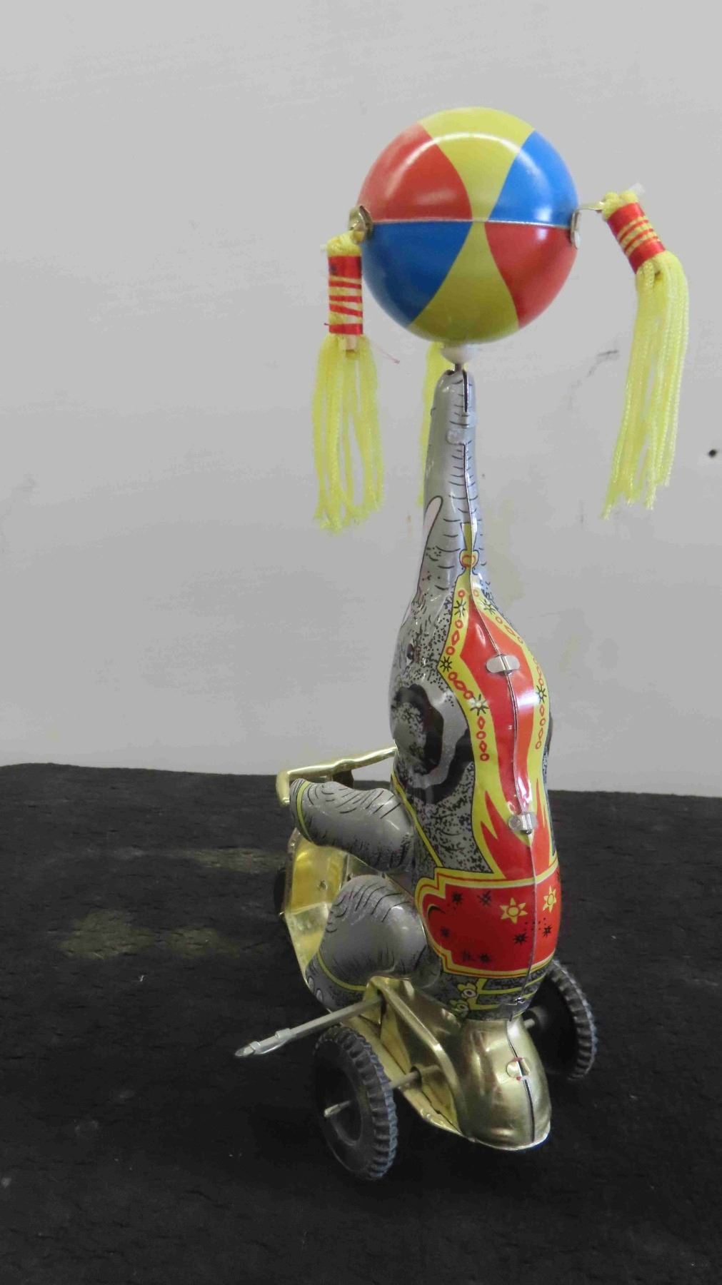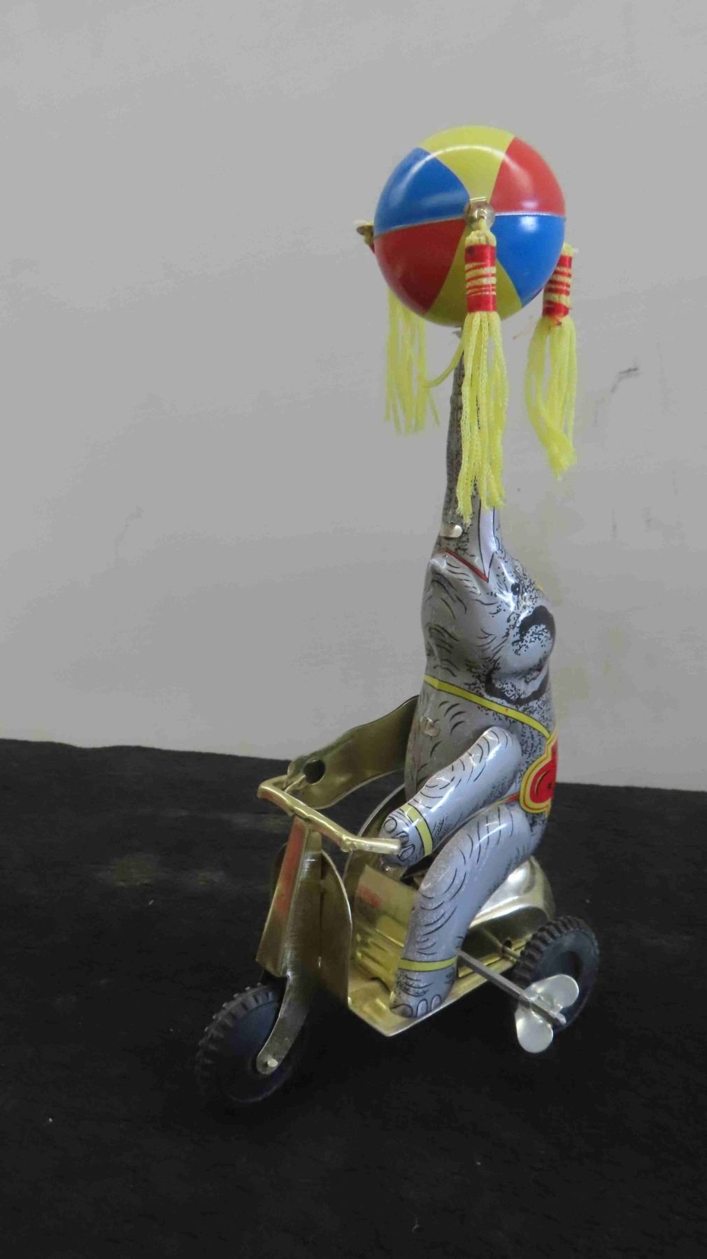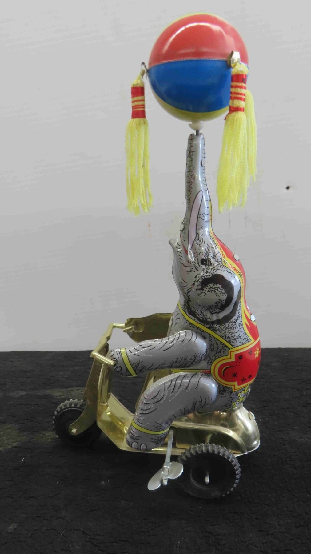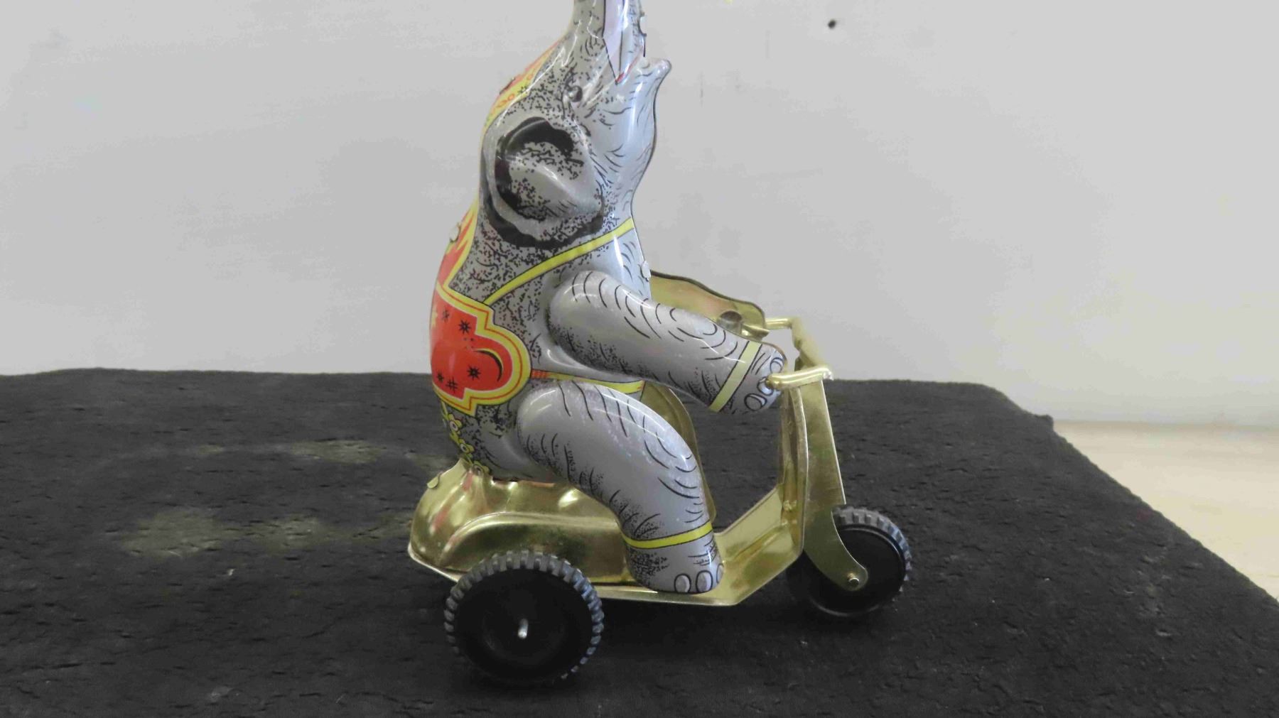Vintage Tin Wind Up Elephant on Scooter 6'' x 3 1/2'' x 10 1/2''