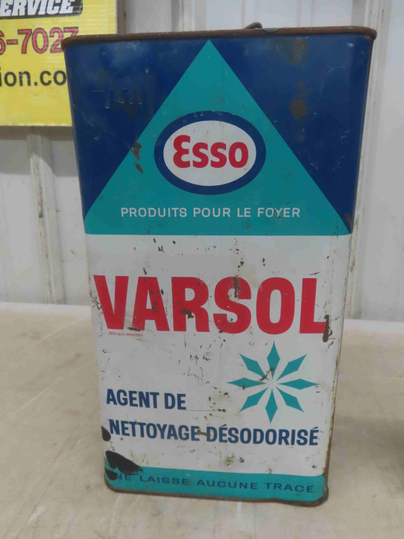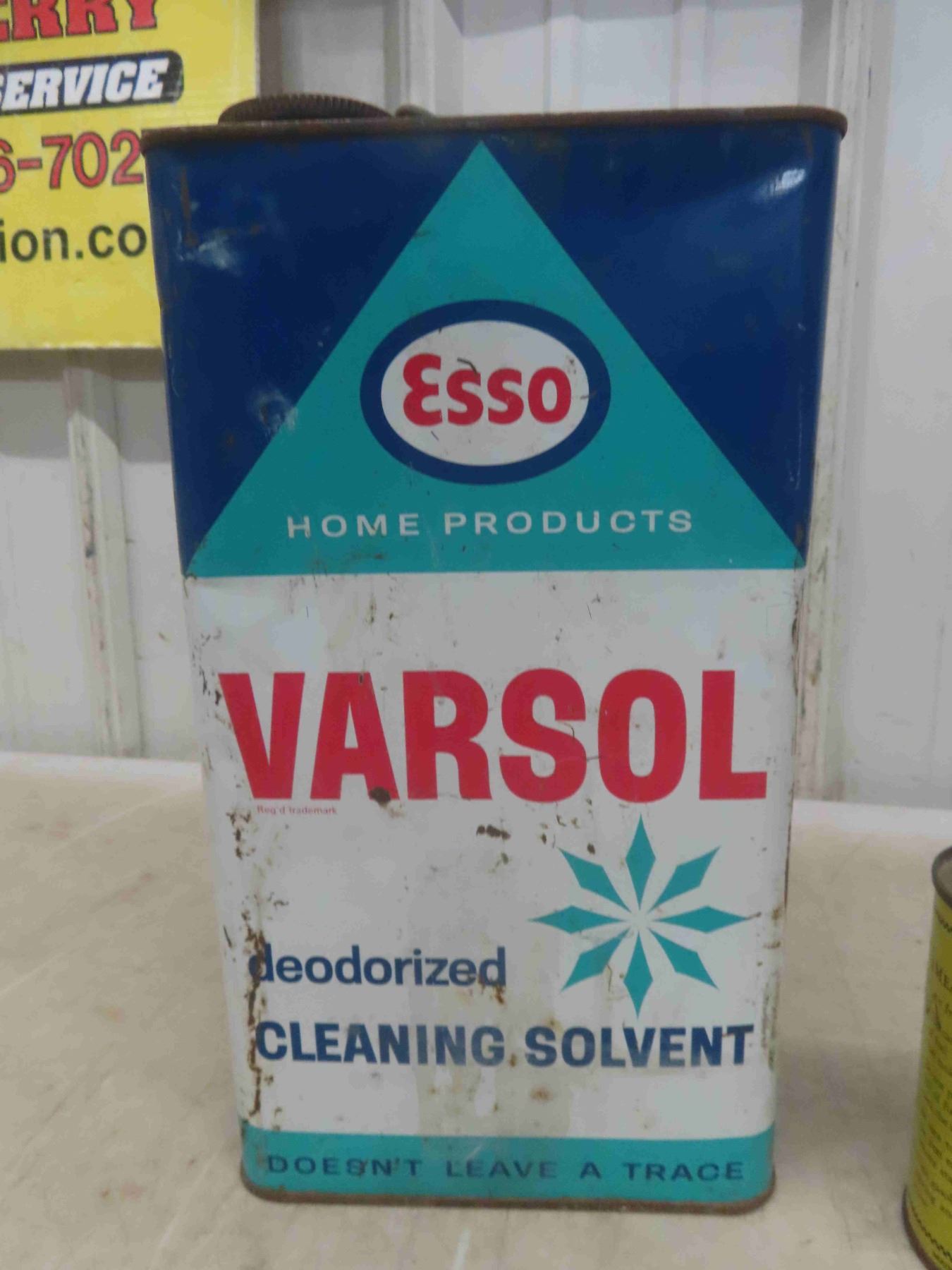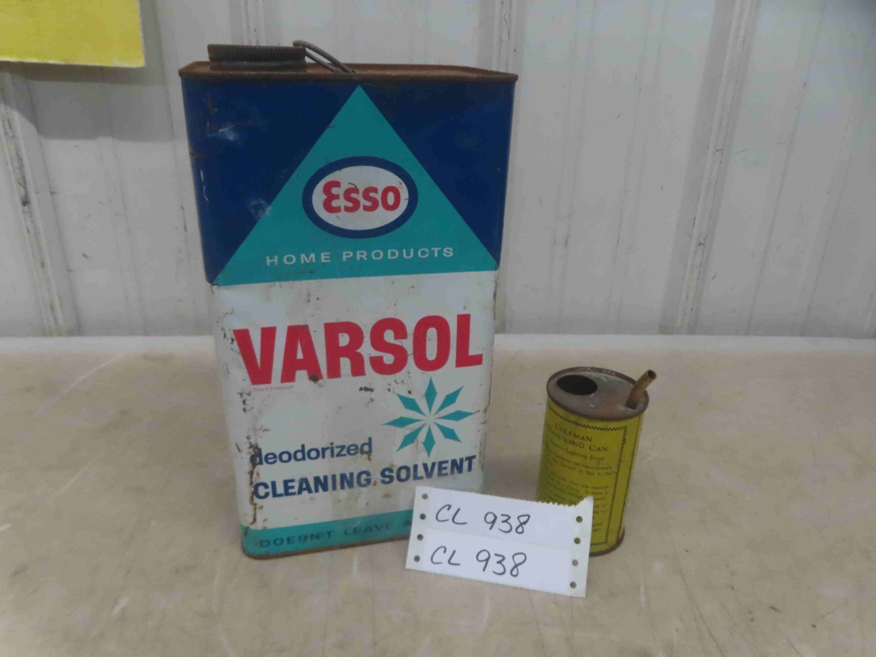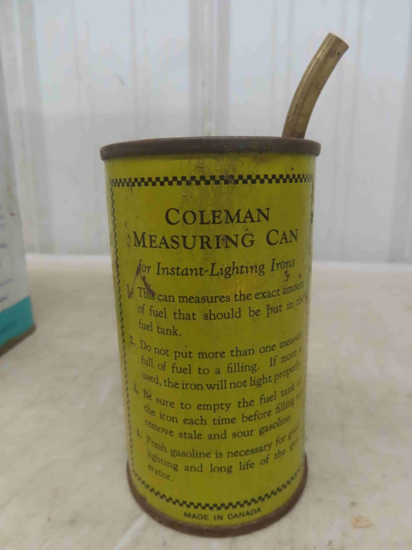Vintage Tins : Esso Varsol 1 Gallon , Coleman Measuring Can with Spout