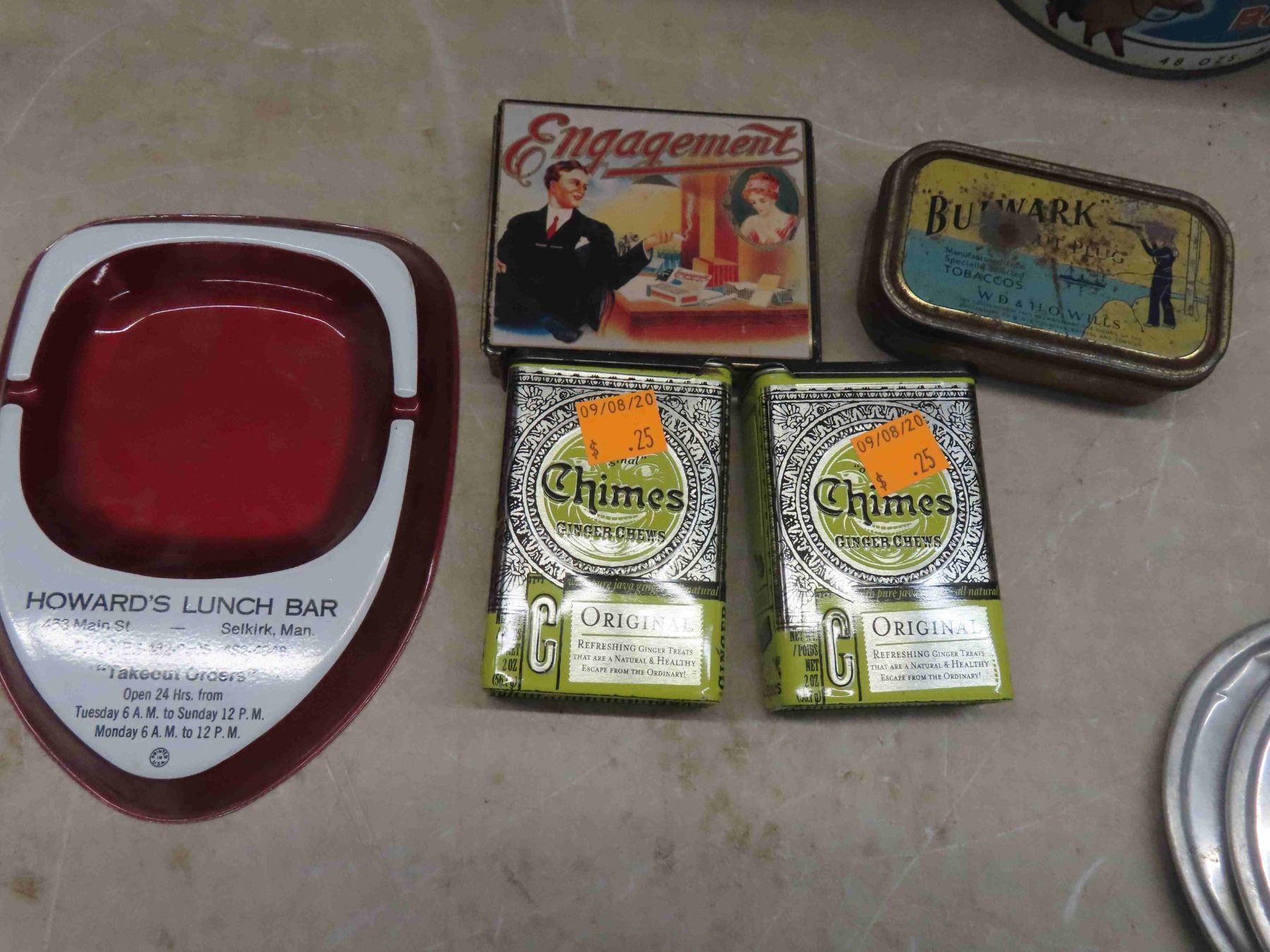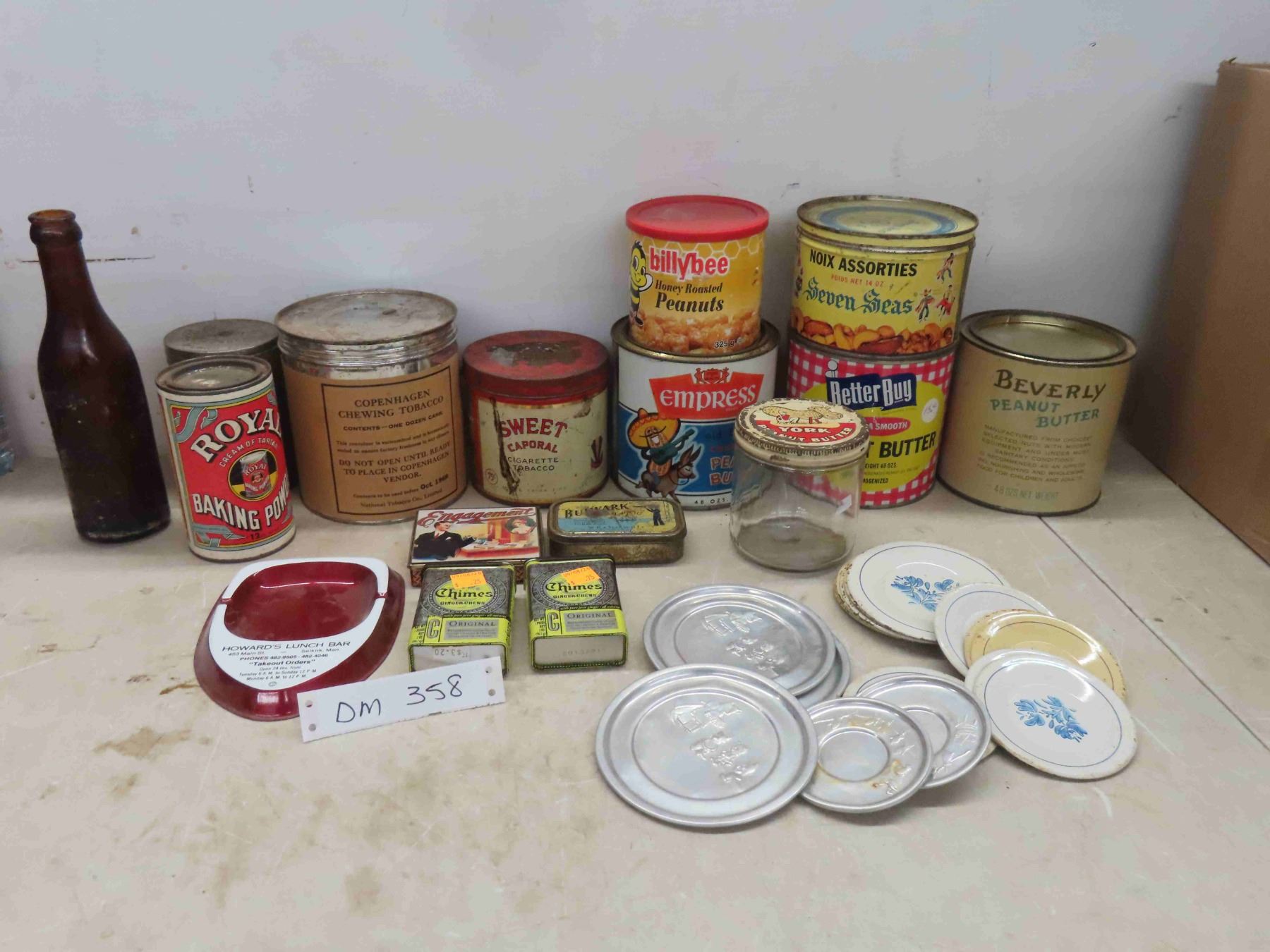 Vintage Tins: Royal Baking Powder, Butter Boy, Beverly Peanut Butter, Sweet Caporal Tobacco Tin, Howards Lunch Bar Ashtray & More.