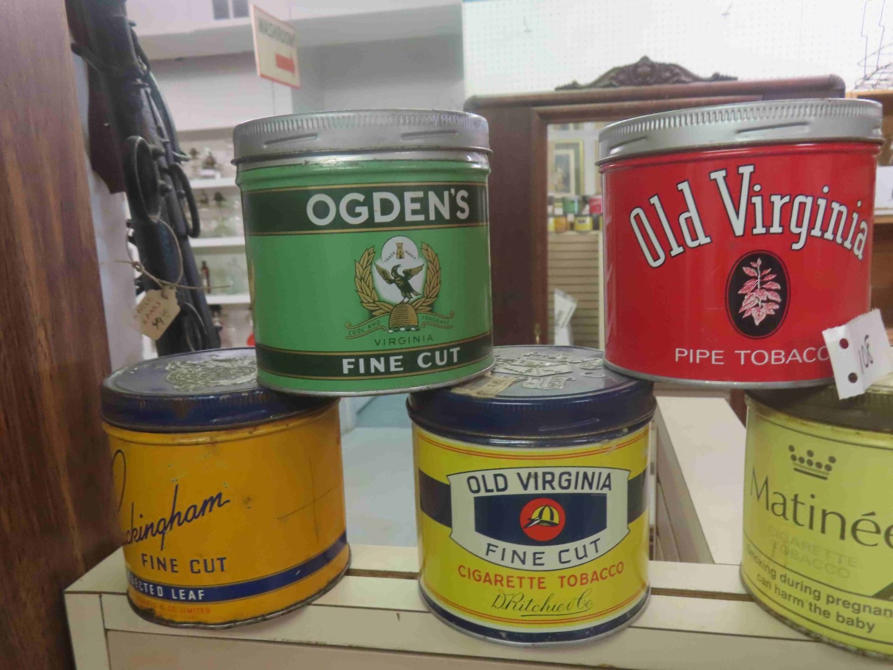 Vintage Tobacco Cans ; Buckingham, Old Virginia, Matinee, plus more
