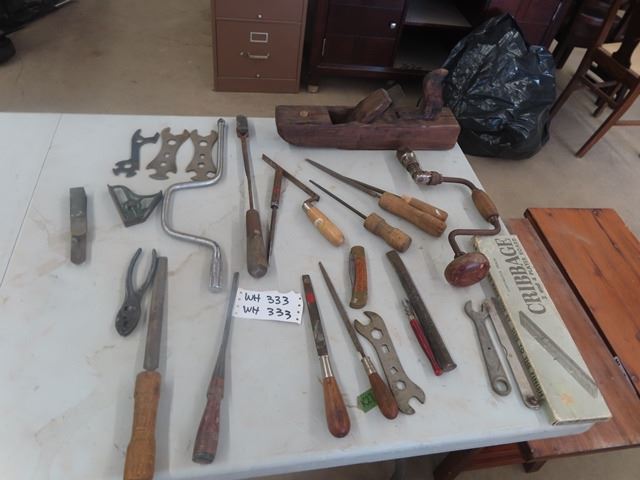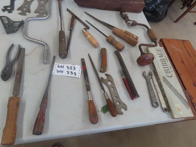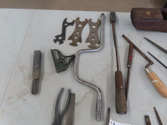 Vintage Tools: Pioneer Drill, Buck Knife, Wrench