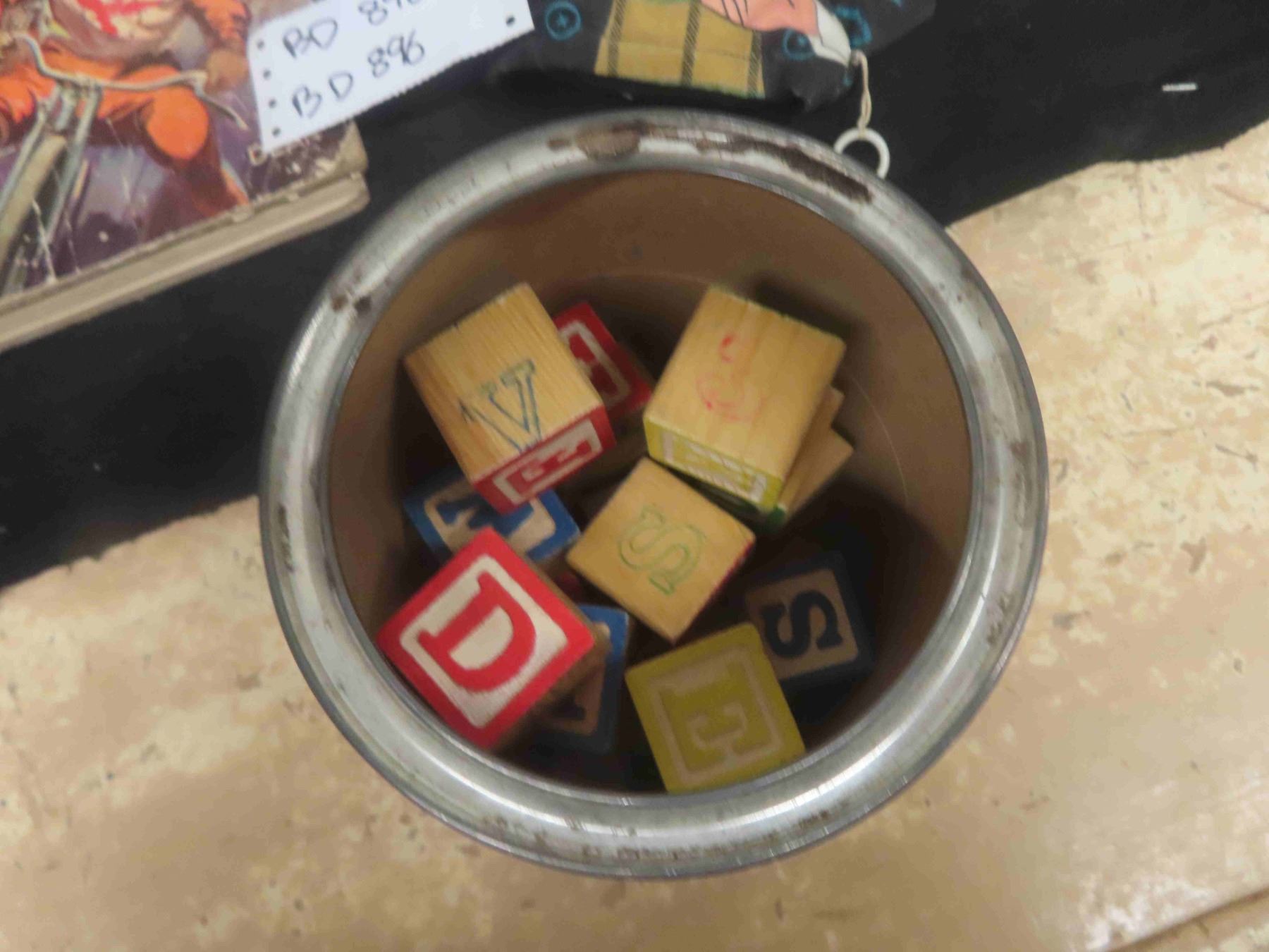 Vintage Toy Lot ; Playskool Wooden Blocks, Dr. Dolittle Puppet, Tarzan book with Dust