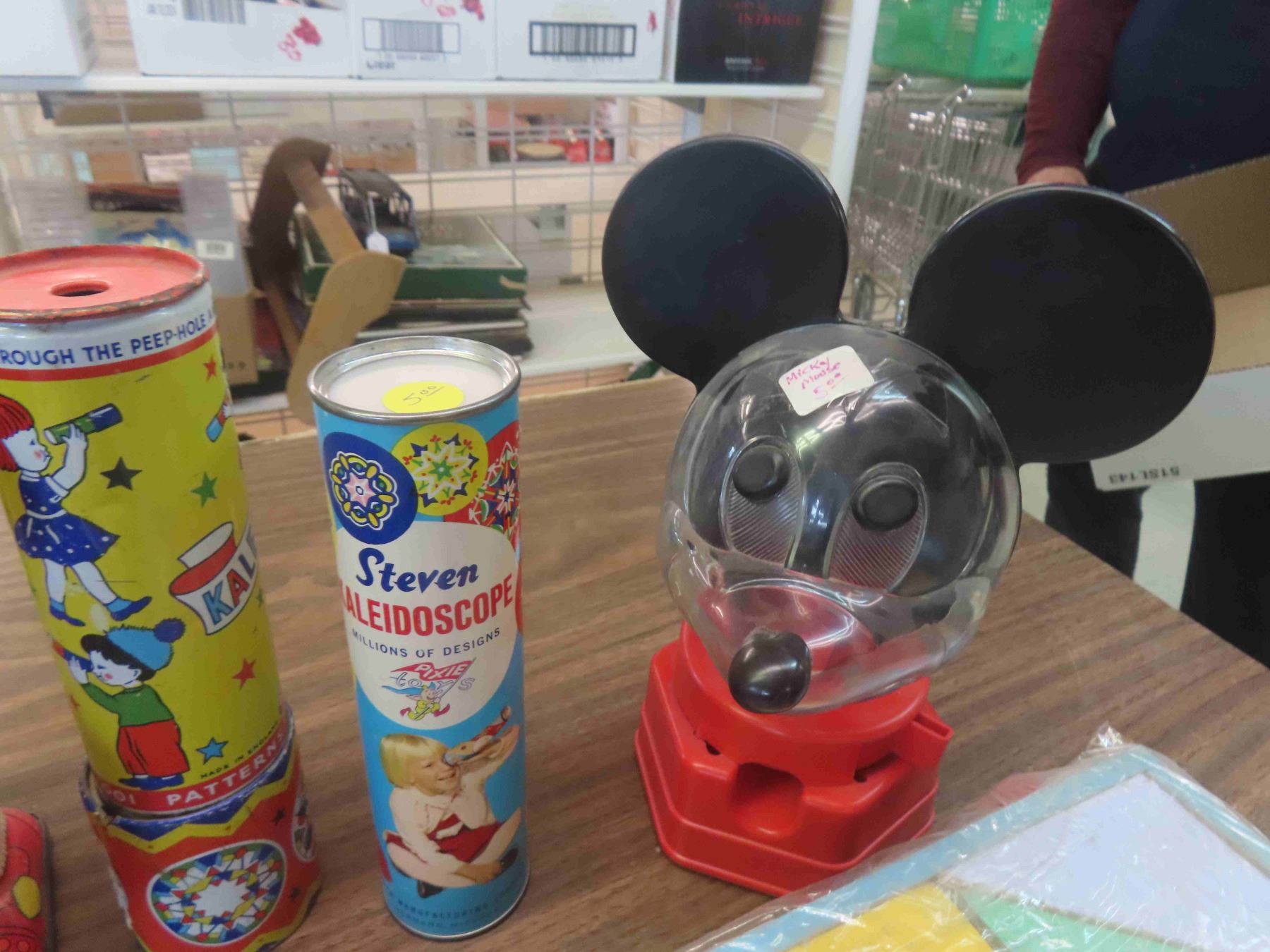 Vintage Toys ; Battery Drumming Bear, Mickey Mouse Gumball, Kaleidoscope, plus others