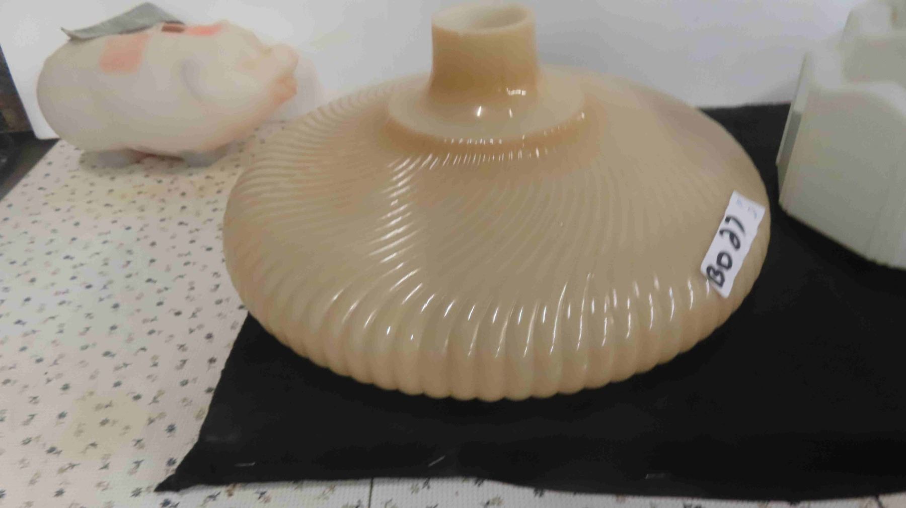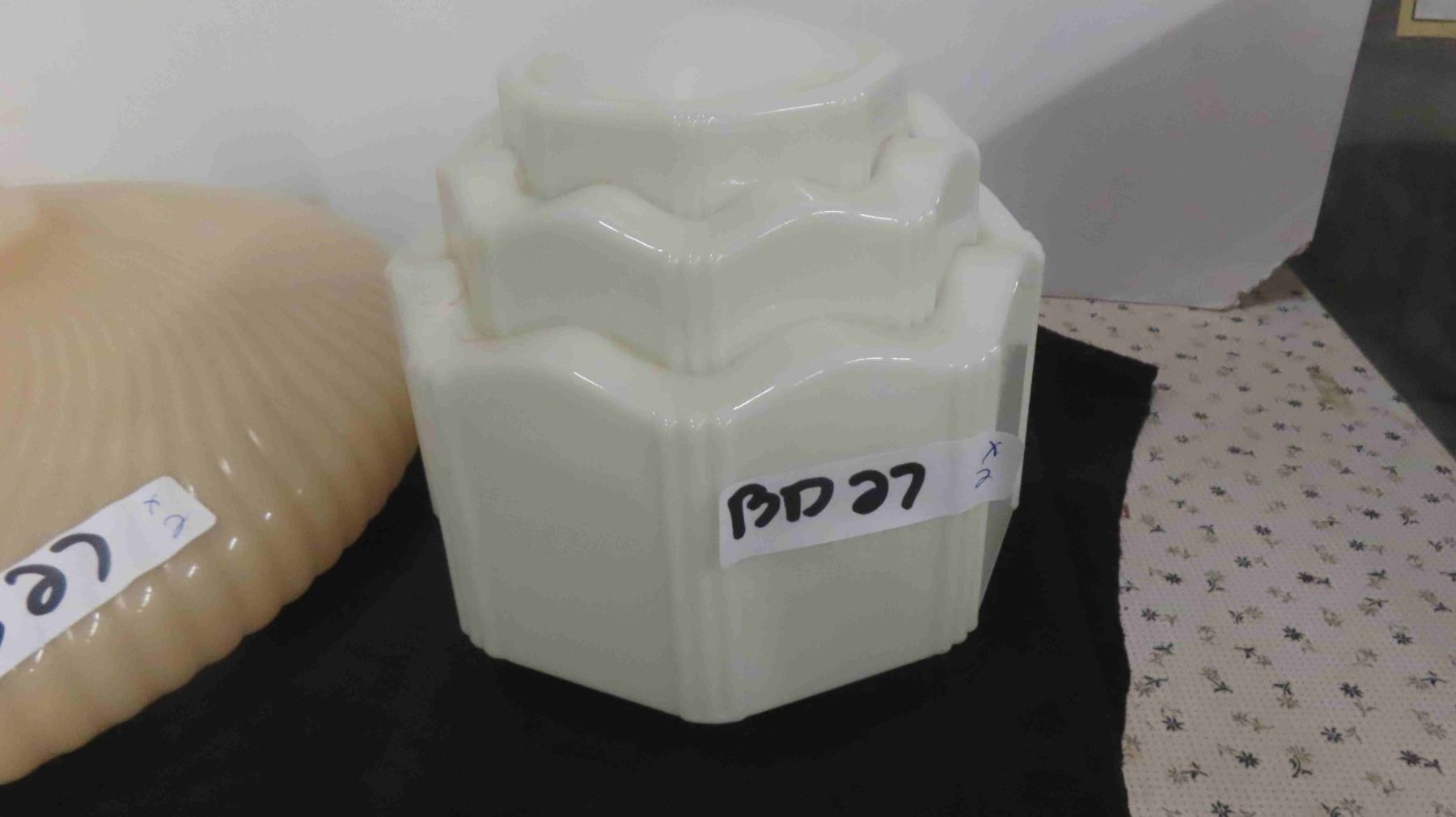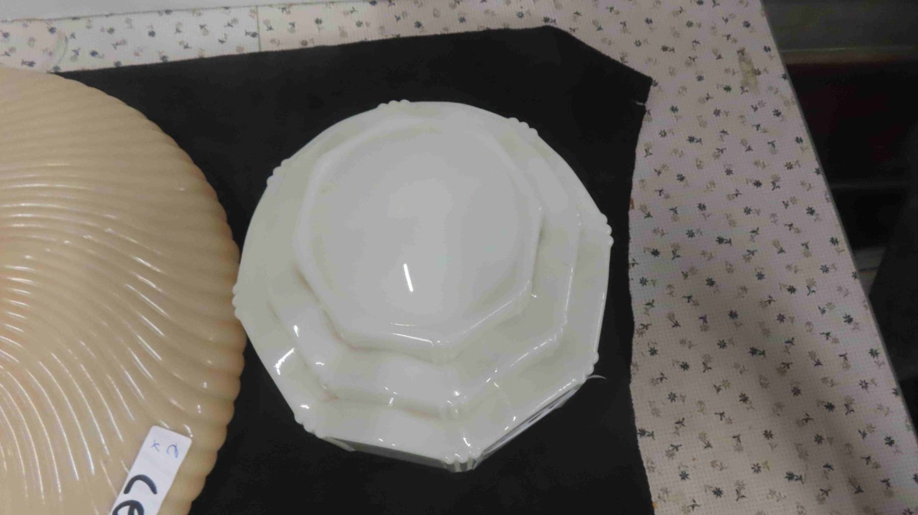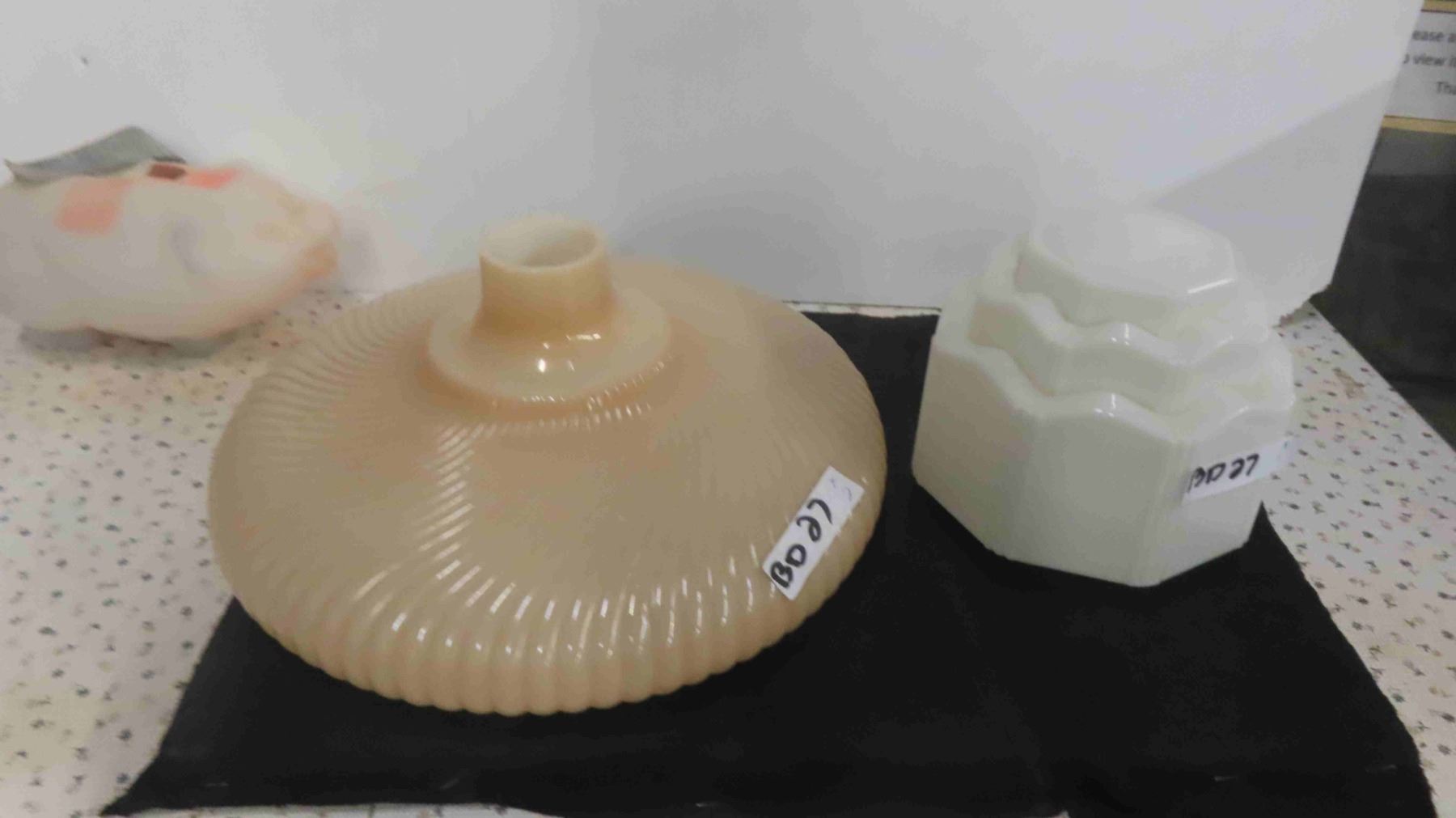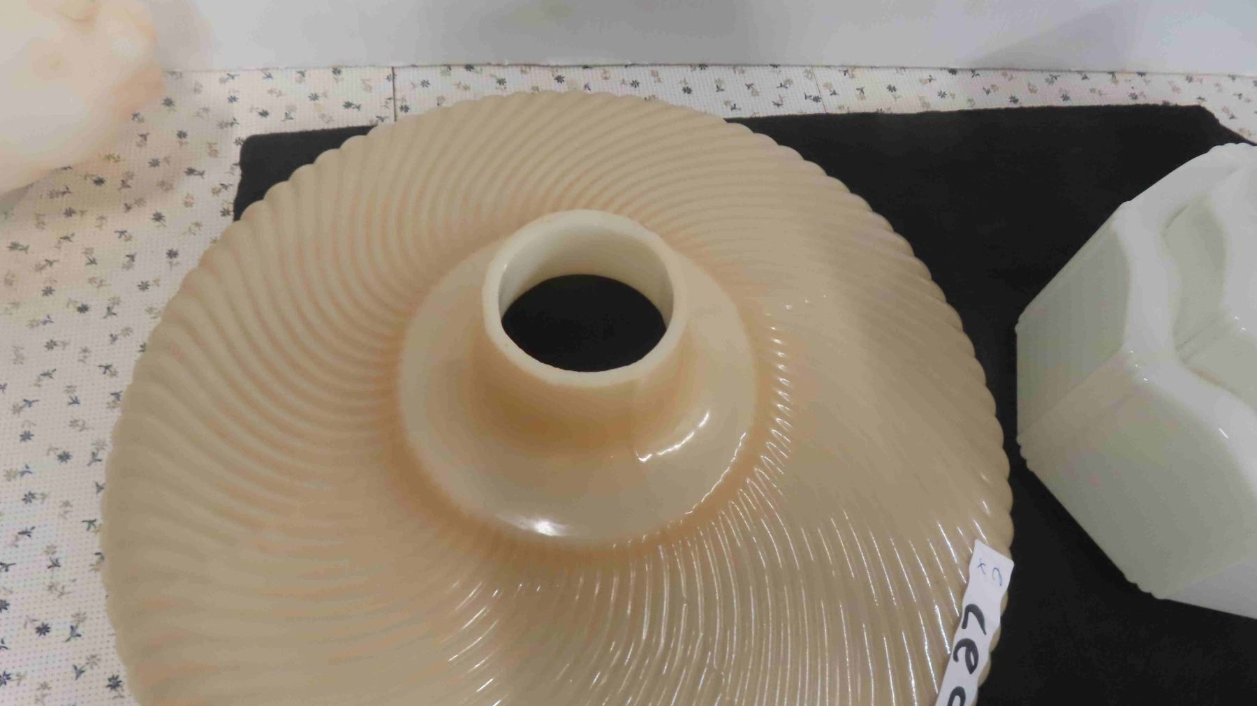 Vintage Tri Light Lamp Shade 16'' Diameter , Milk Glass 3 Tier Hall Light Shade 8'' Tall x 3 3/4'' Base - Both Excellent Condition