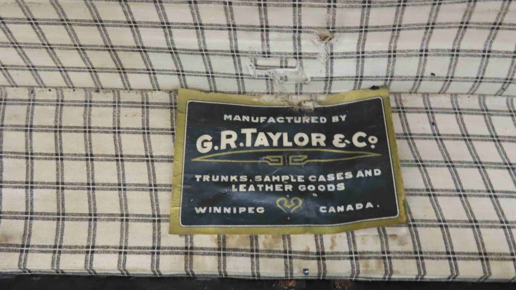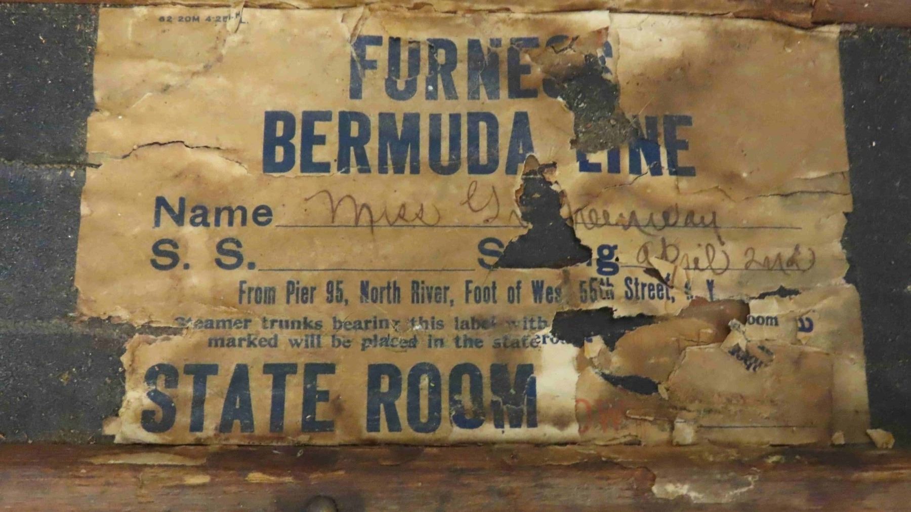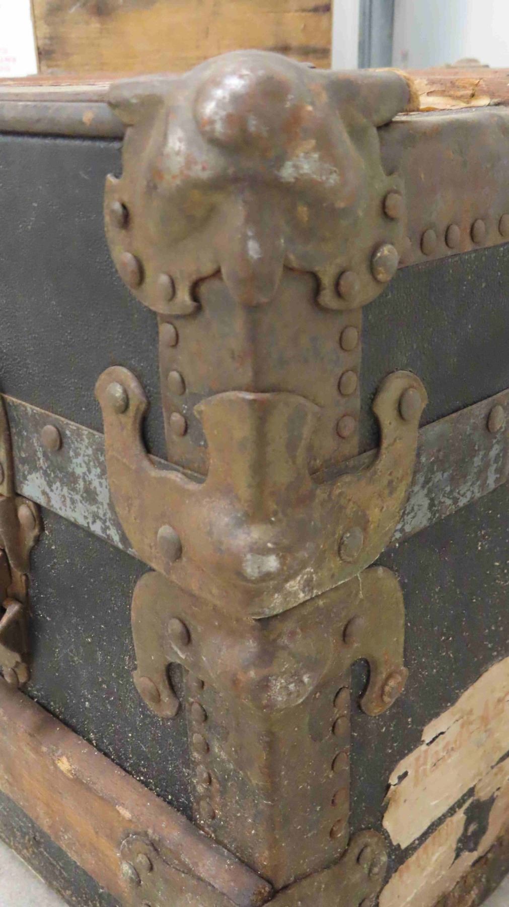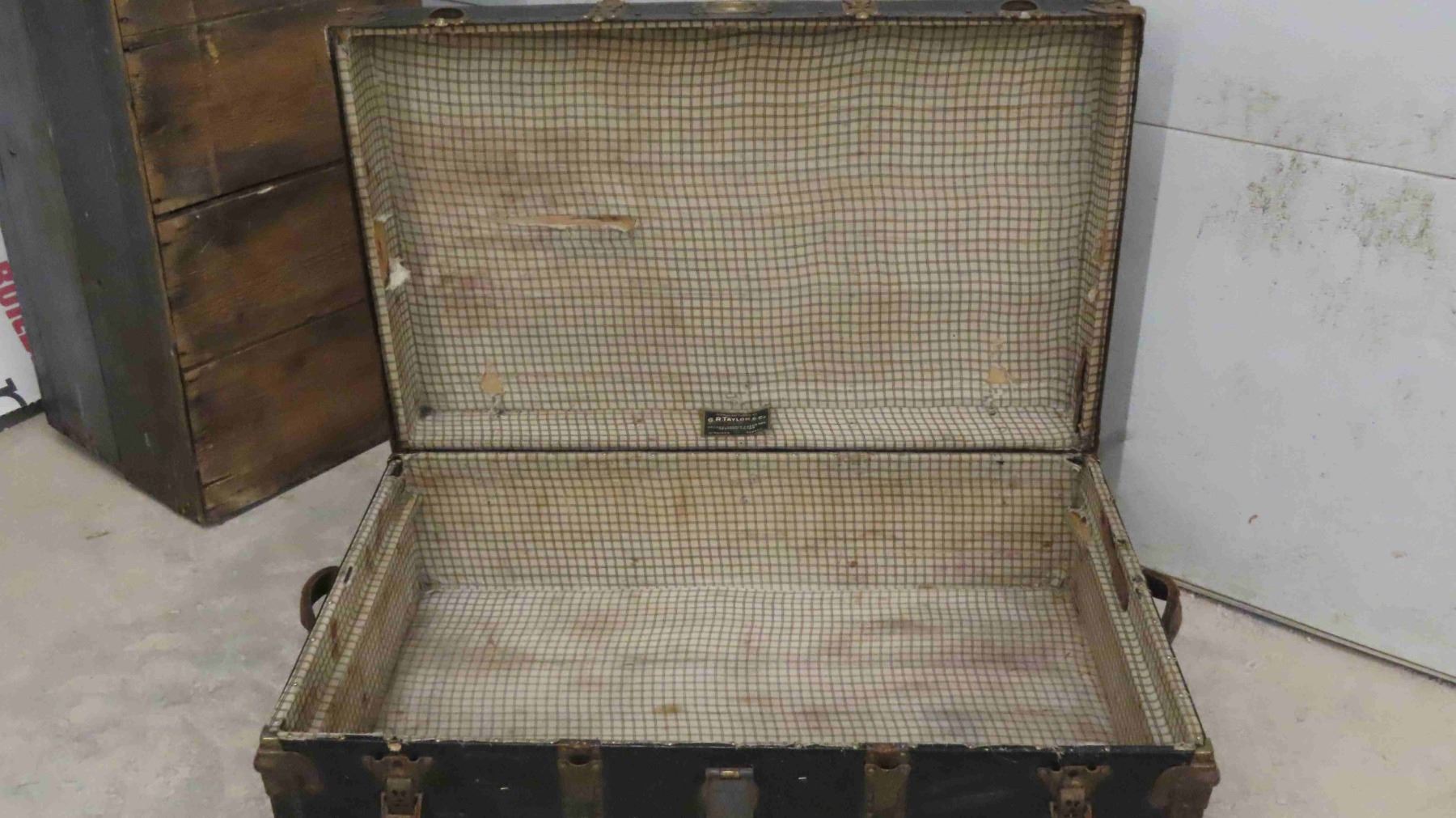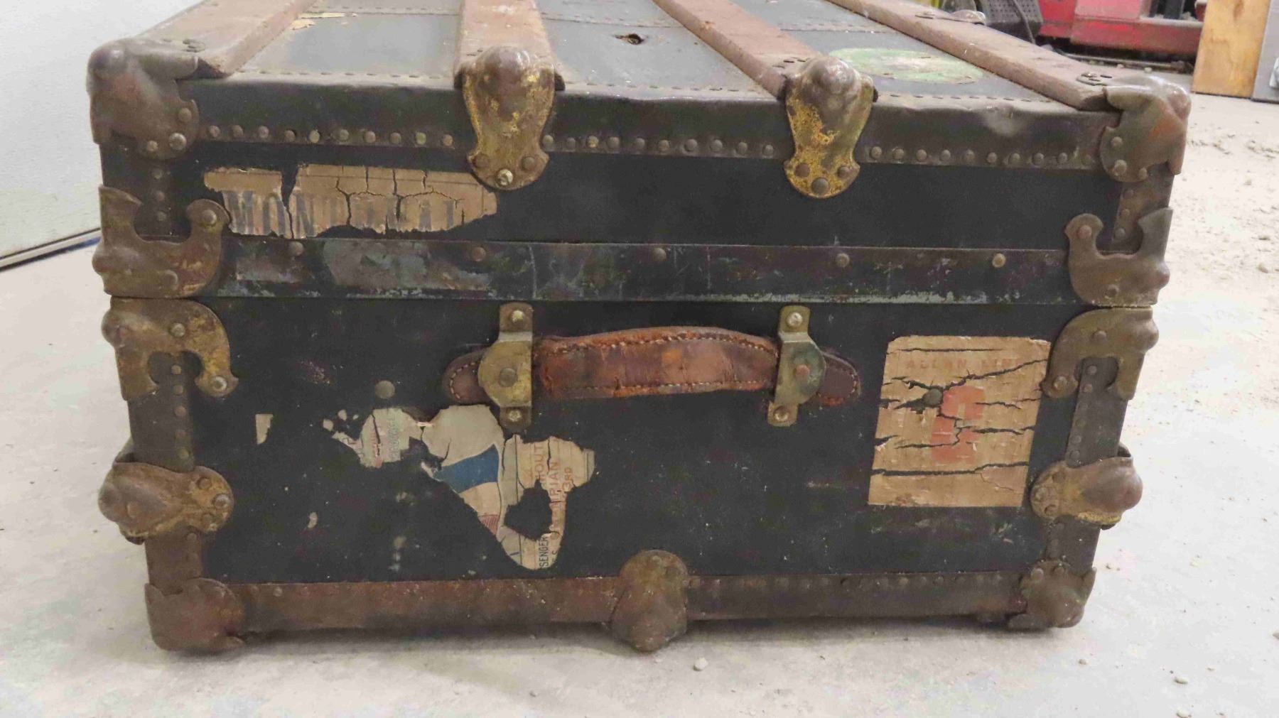 Vintage Trunk 13" x 22" x 36" with Brass + Wood Trim & Leather Handles