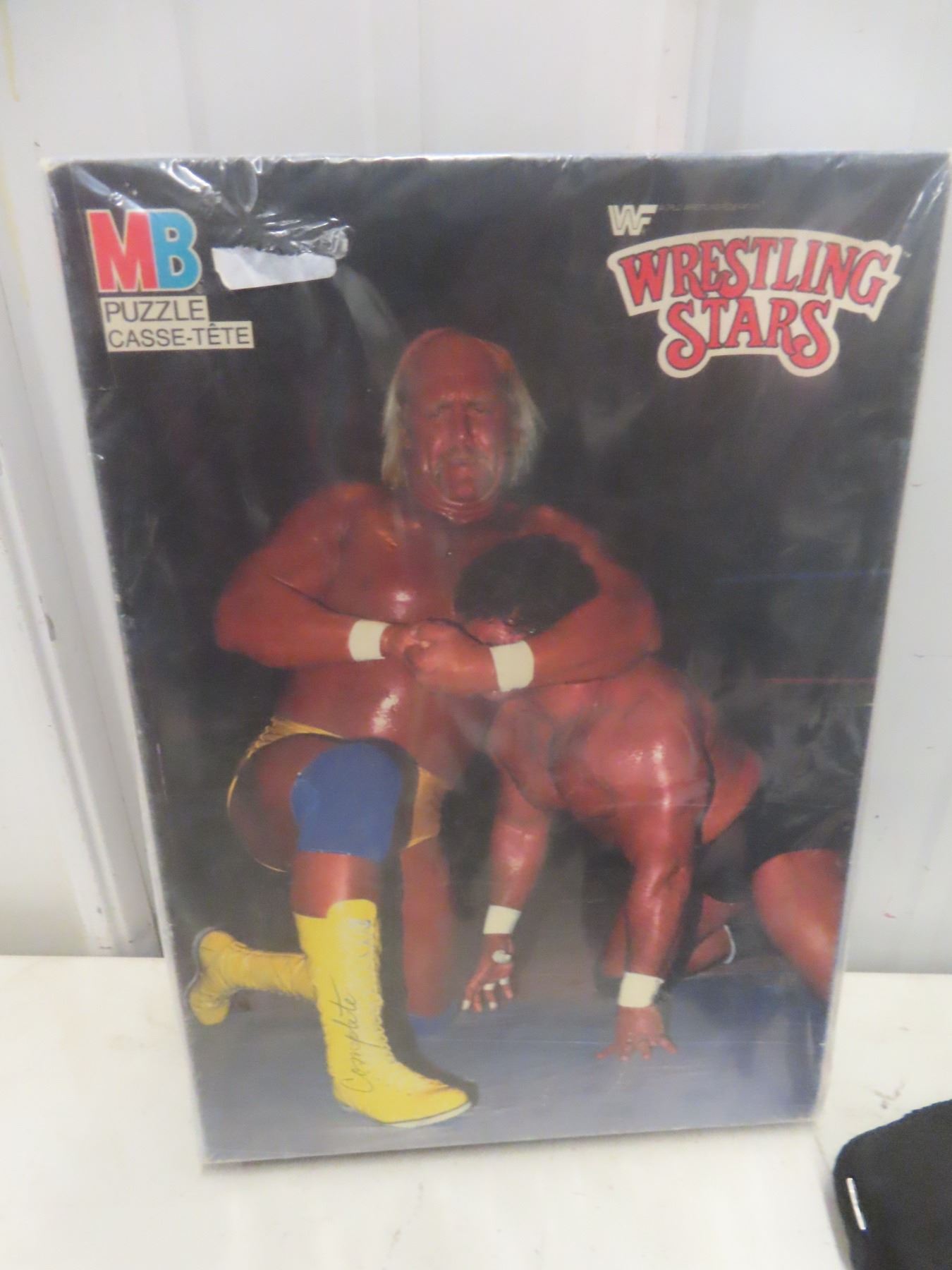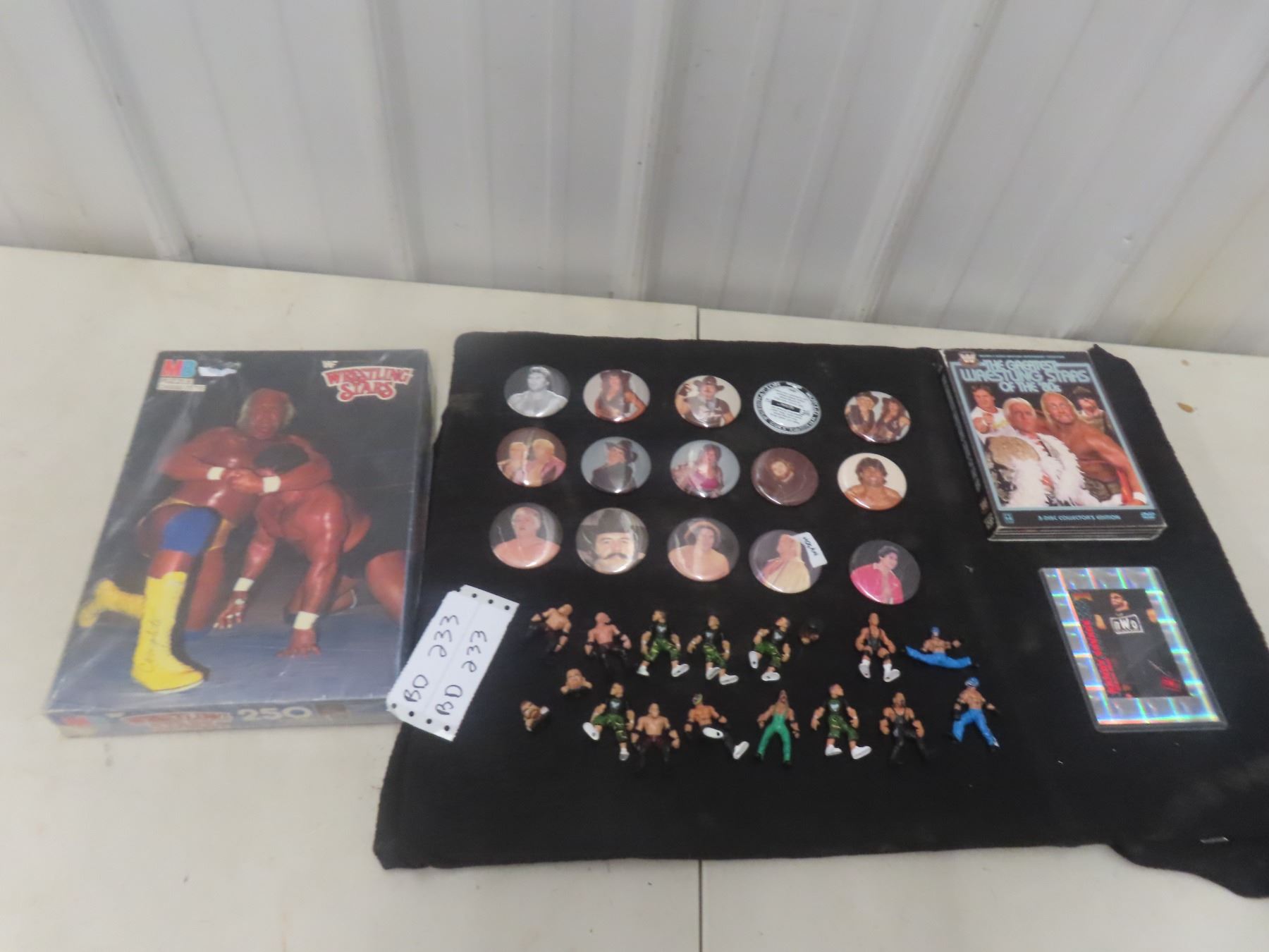 Vintage WWF Wrestling Lot: Hulk Hogan Puzzle, Button, 3 DVD Set, AWA Buttons, Mini Figures ETC