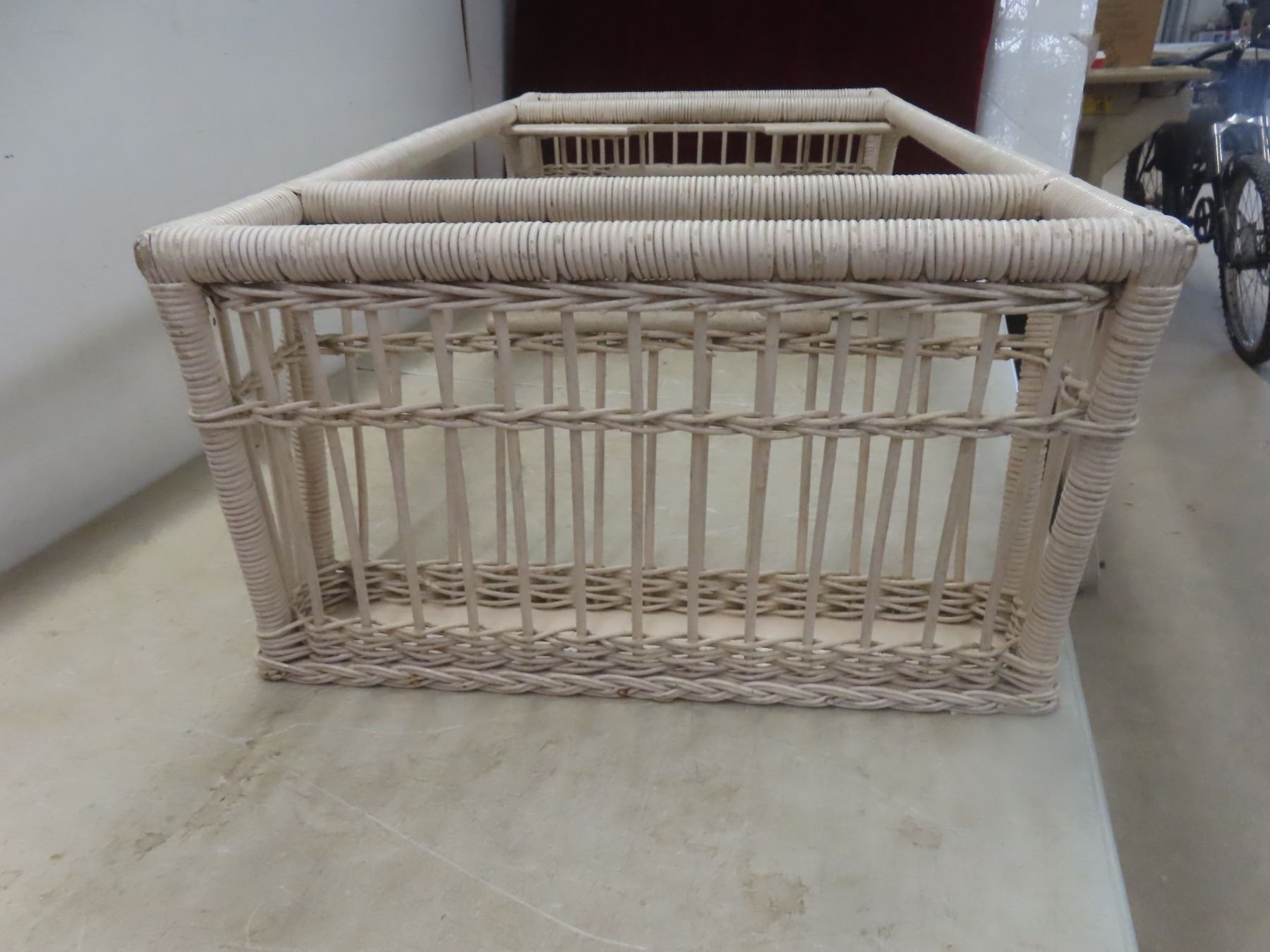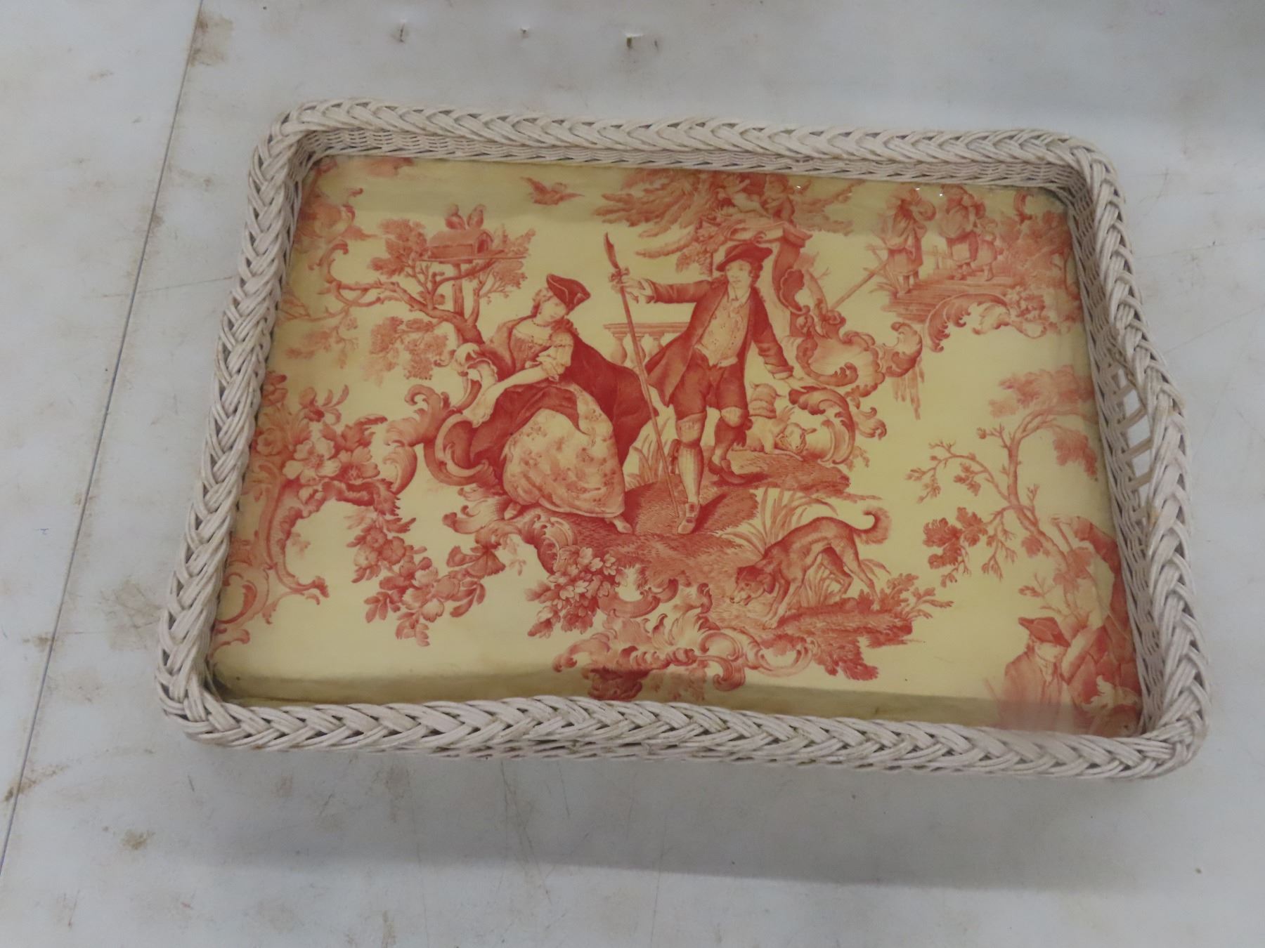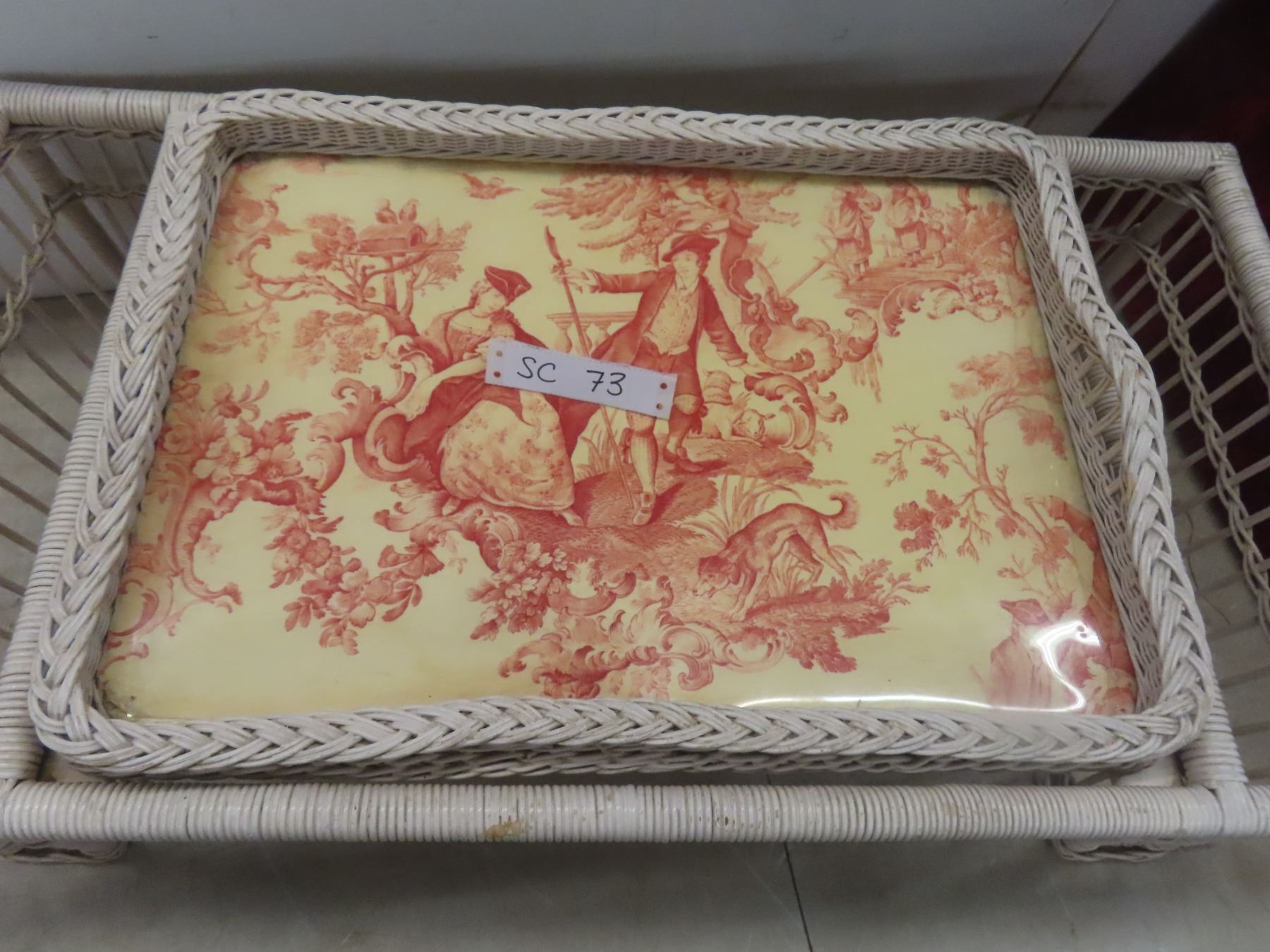 Vintage Wicker Breakfast-in-Bed Table with Book Storage and Removable Tray  10 x 18 x34  Tray 22 x16