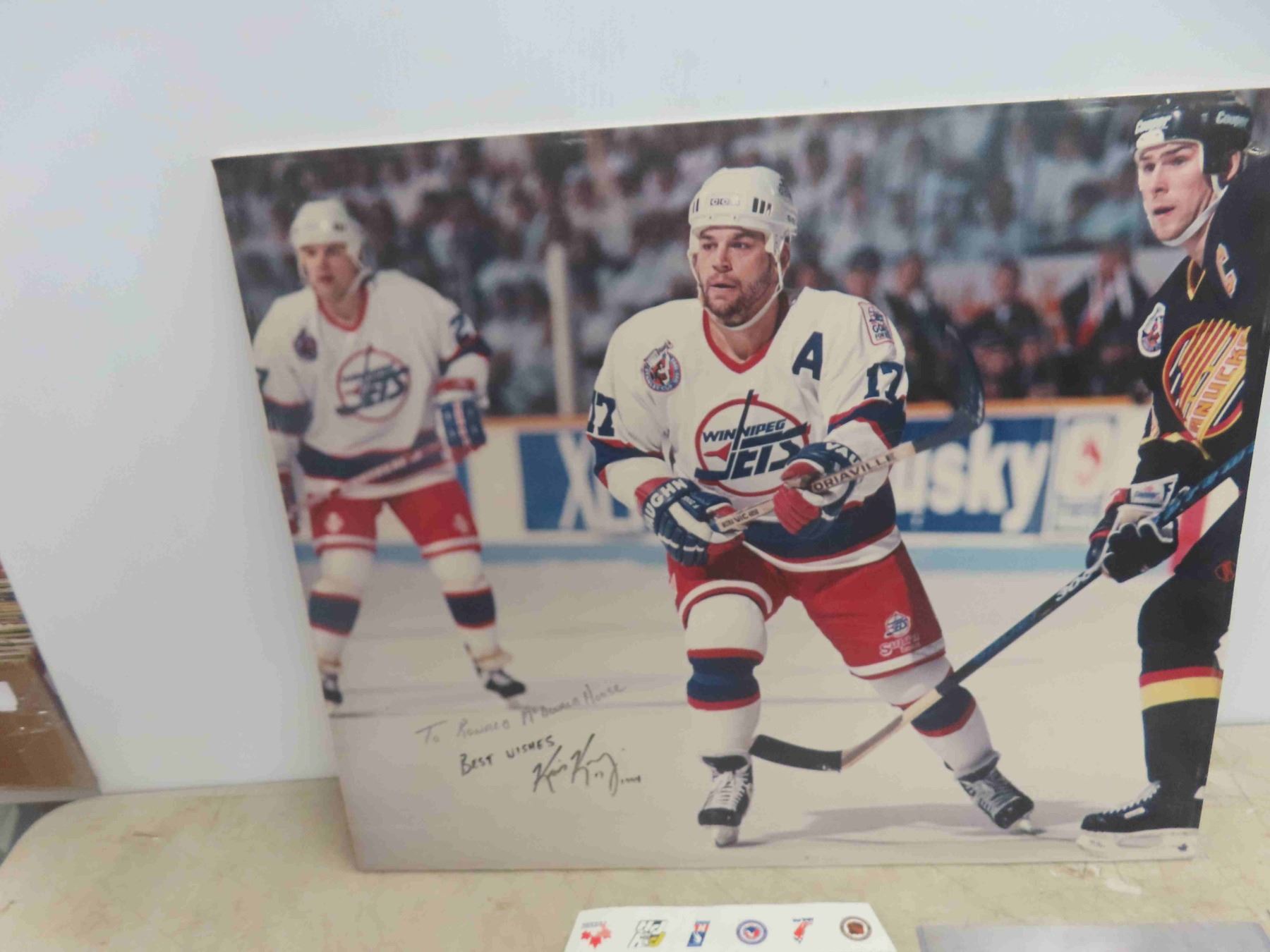 Vintage Winnipeg Jets Autographed Photo + Poster Lot ; Kris King Signed Poster 20"x 24", Signed 8" x 10" of ; Keith Tkachuk, Dave Manson, Alexei Zhamnov