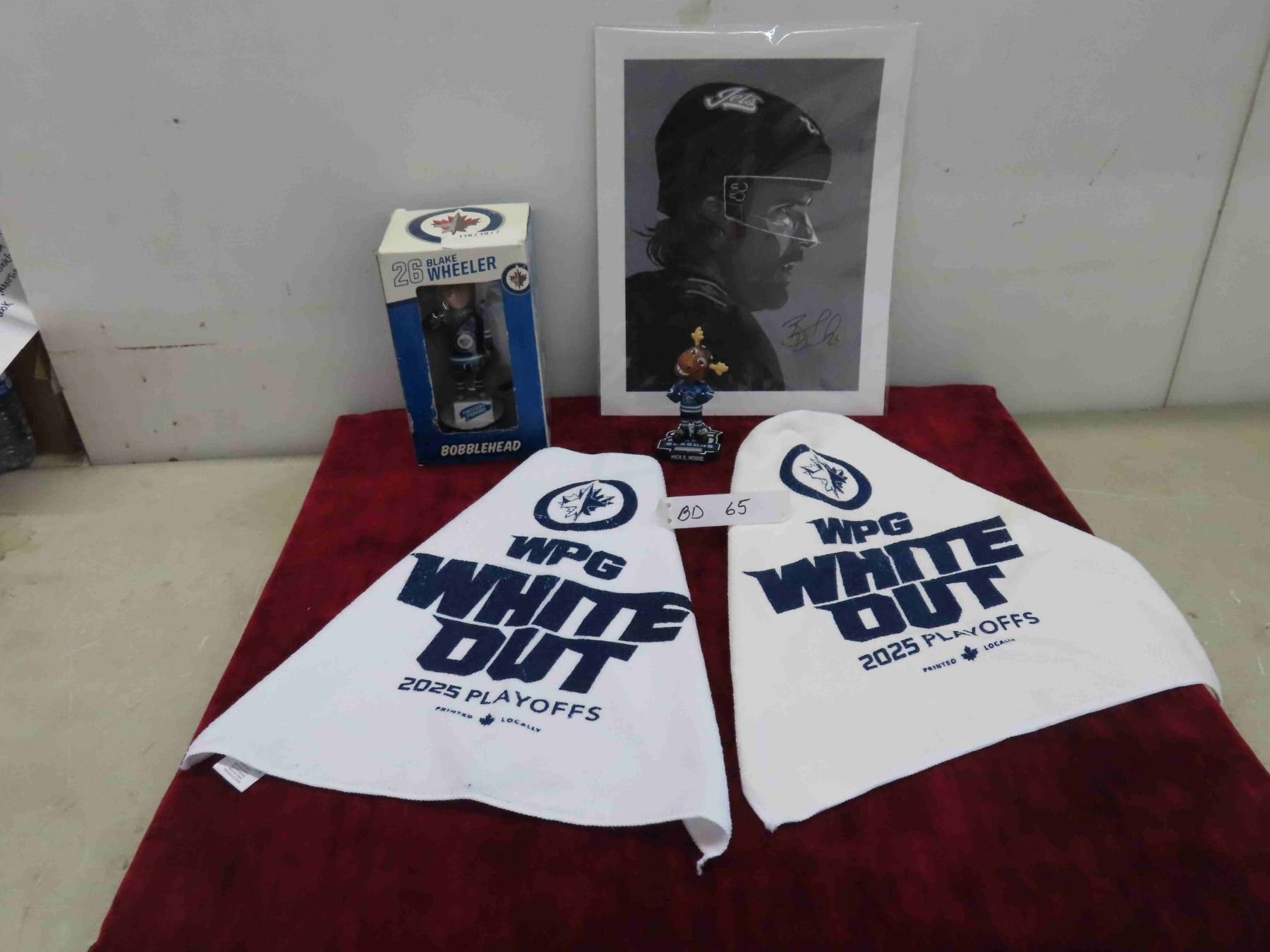 Vintage Winnipeg Jets Blake Wheeler Autographed Print, Bobble Head, 2 White Out Towels