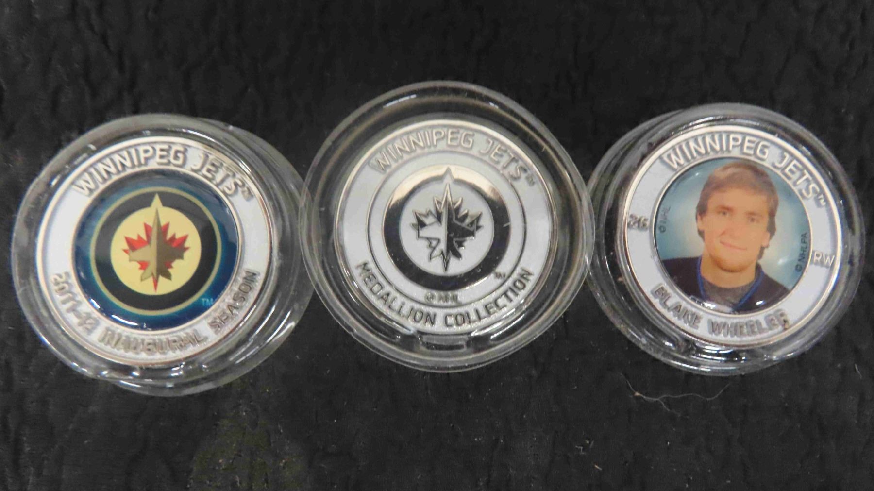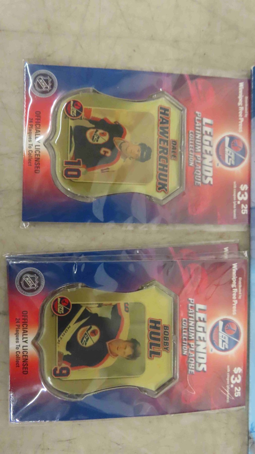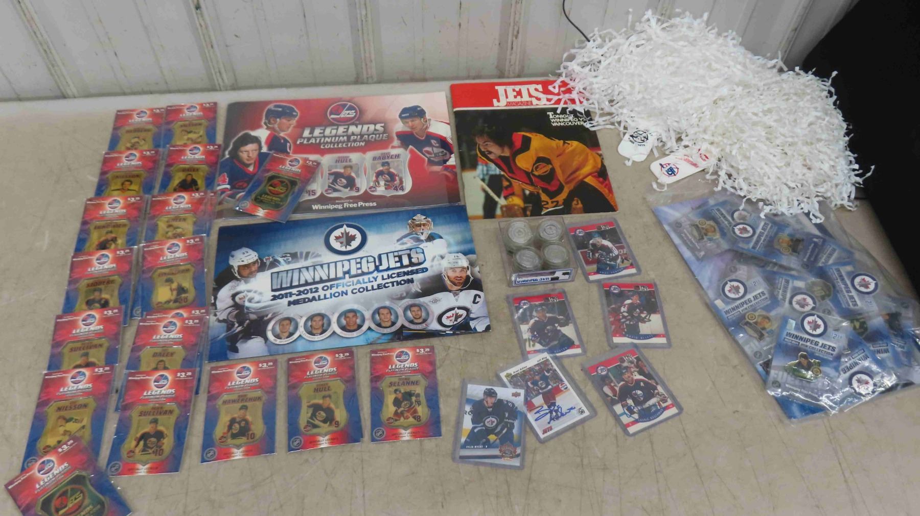 Vintage Winnipeg Jets Lot : 2011-12 Complete Medallion Collection, 2013-14 Jets Pin Collection , Legends Plaques (Some Missing), Signed Card Boschman, 2 Ashton, Ellett, Fenton, Plus