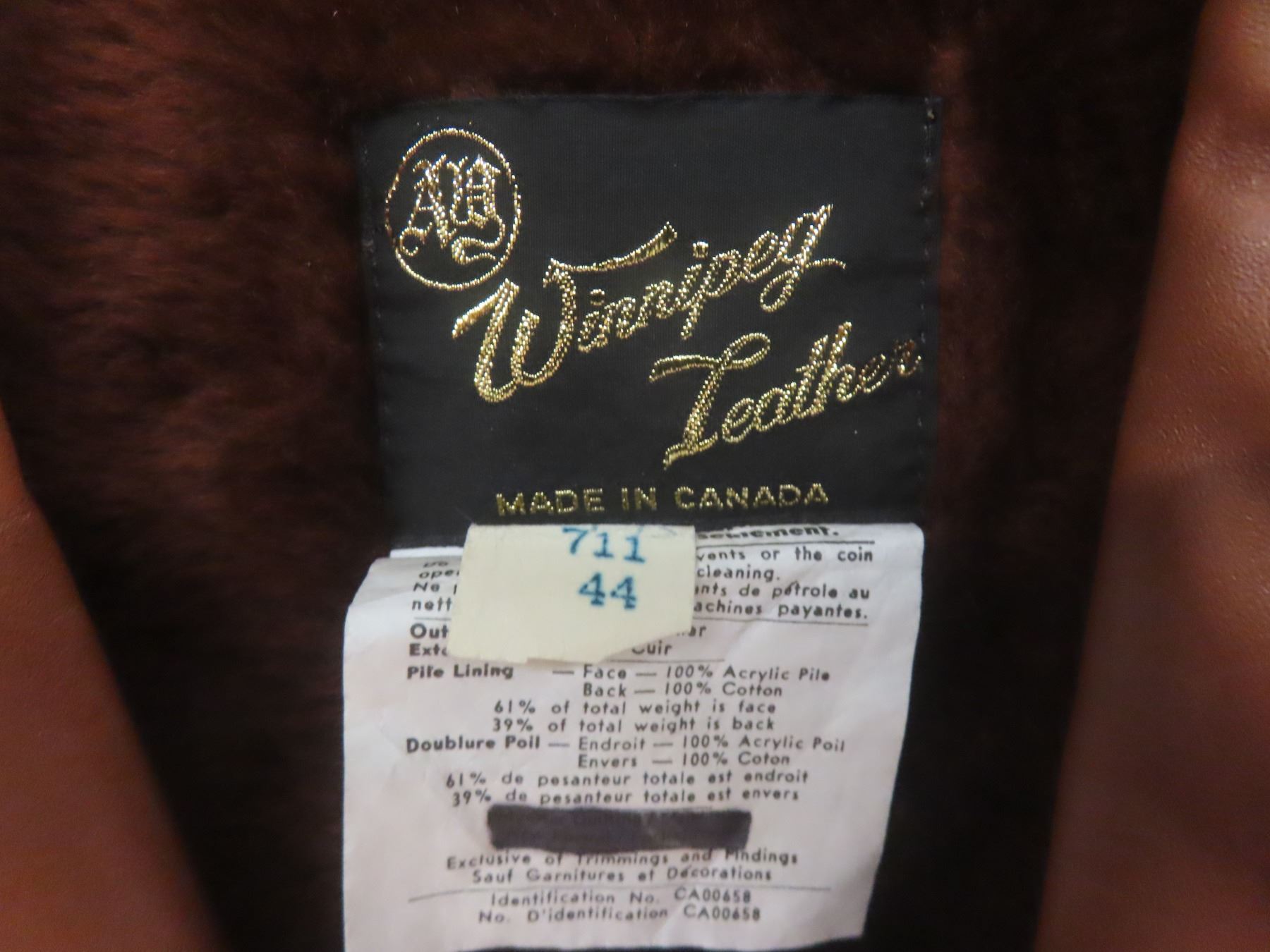 Vintage Winnipeg Leather Coat With Zip-Out Lining.
