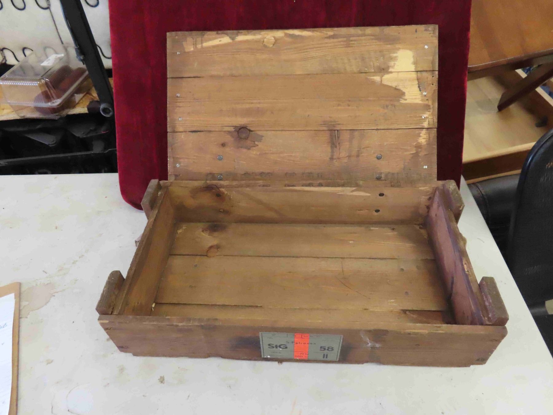 Vintage Wood Ammo Box 20 1/2'' x 11'' x 6'' with Hinged Lid