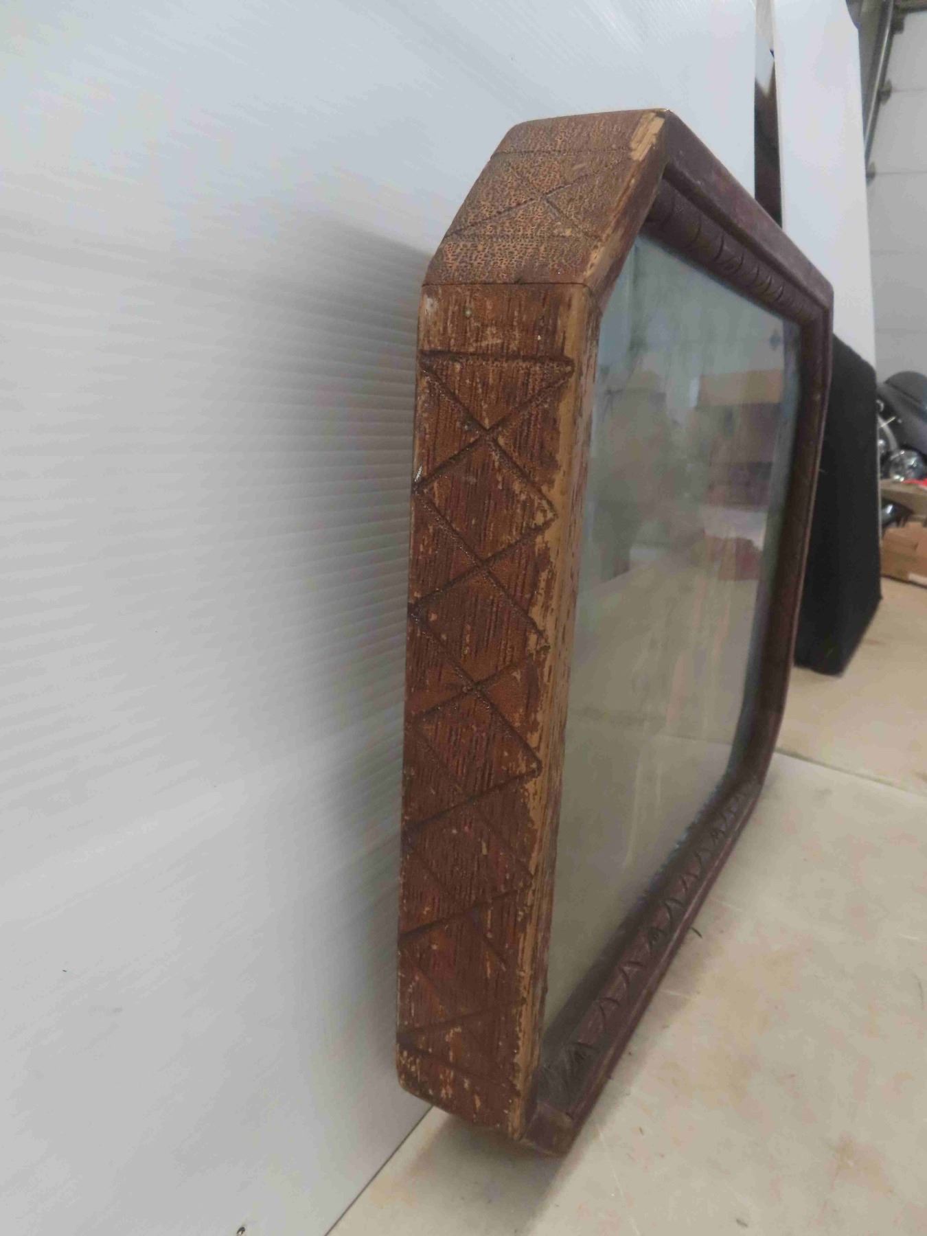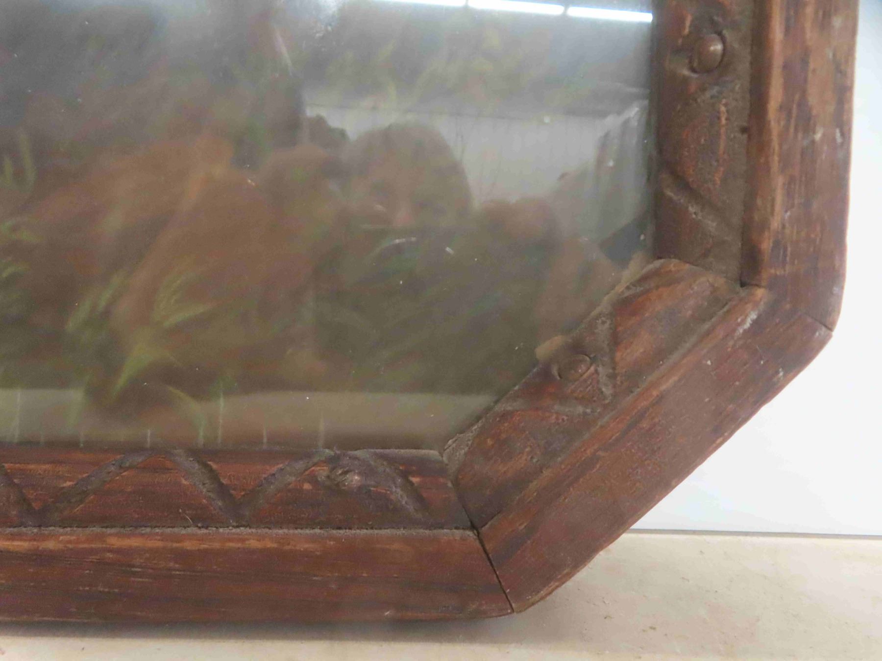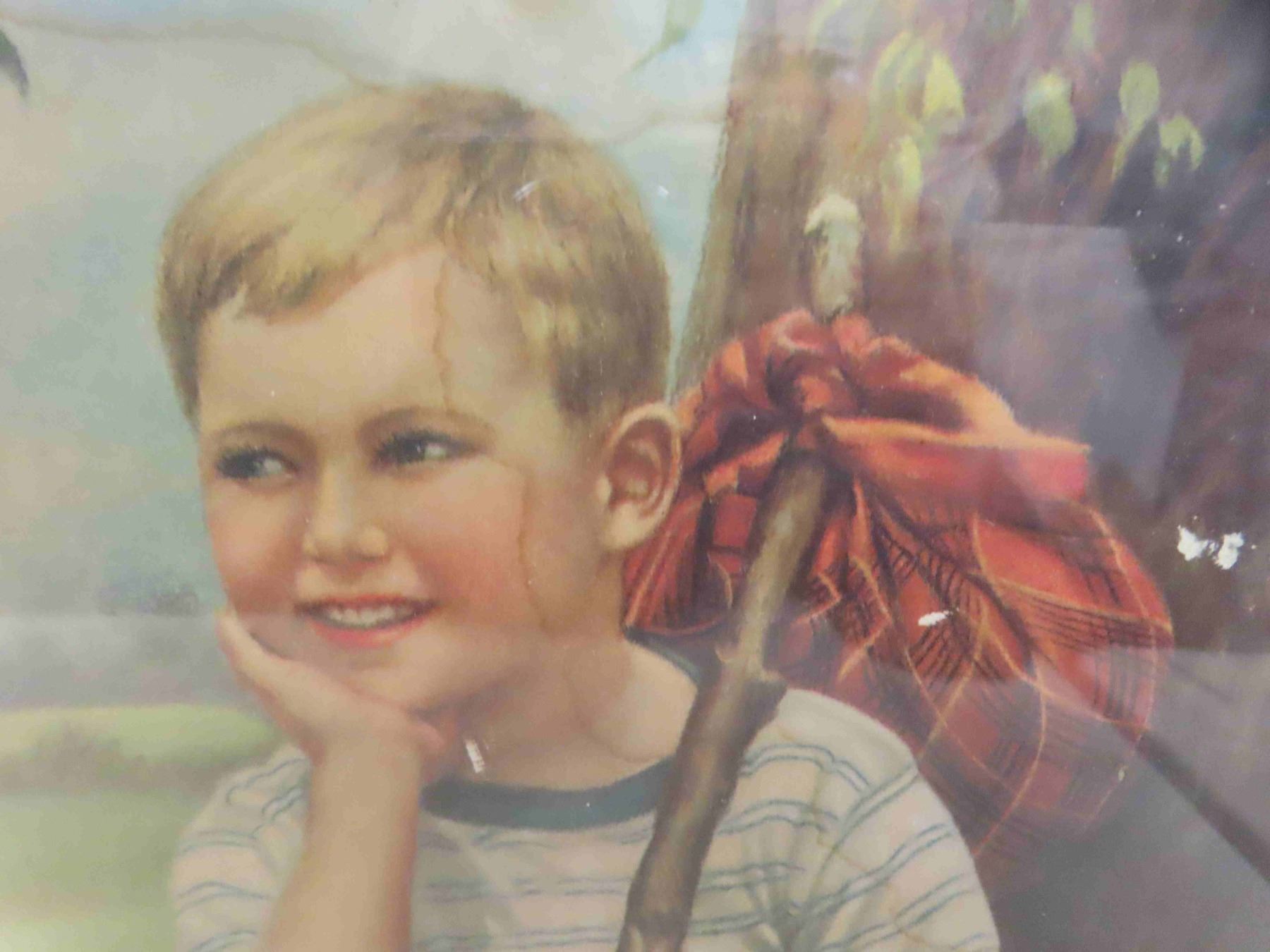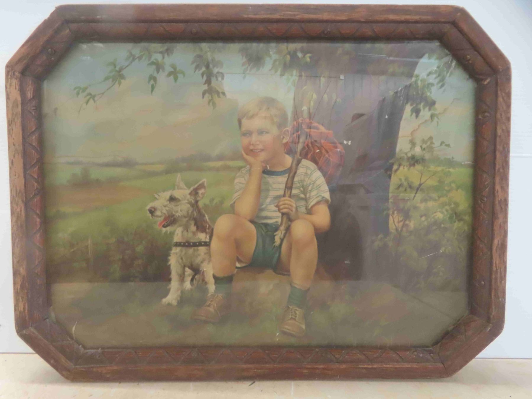 Vintage Wood Encased Dog and Boy Advertising Picture 21 1/4'' x 16''