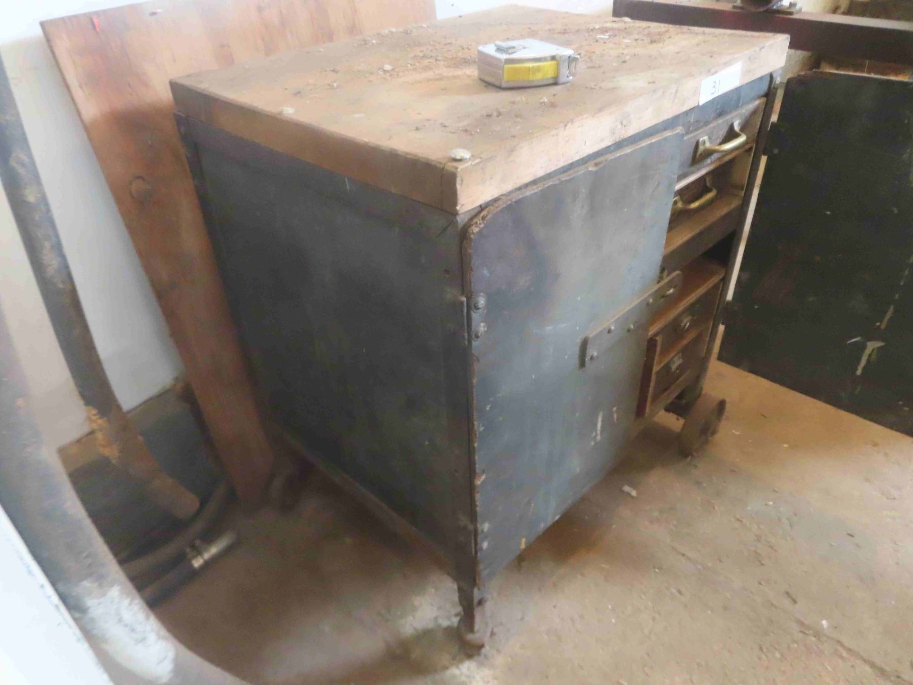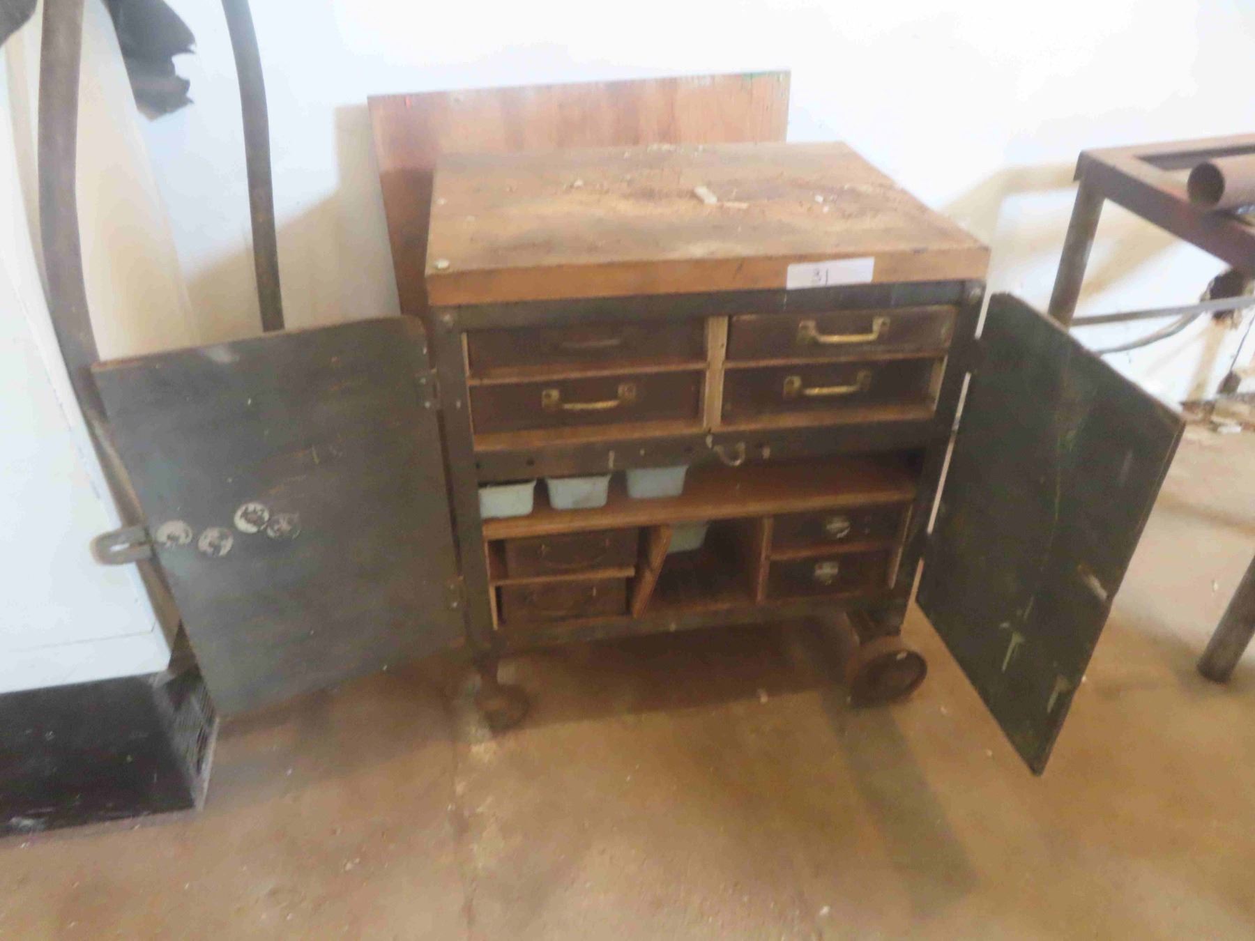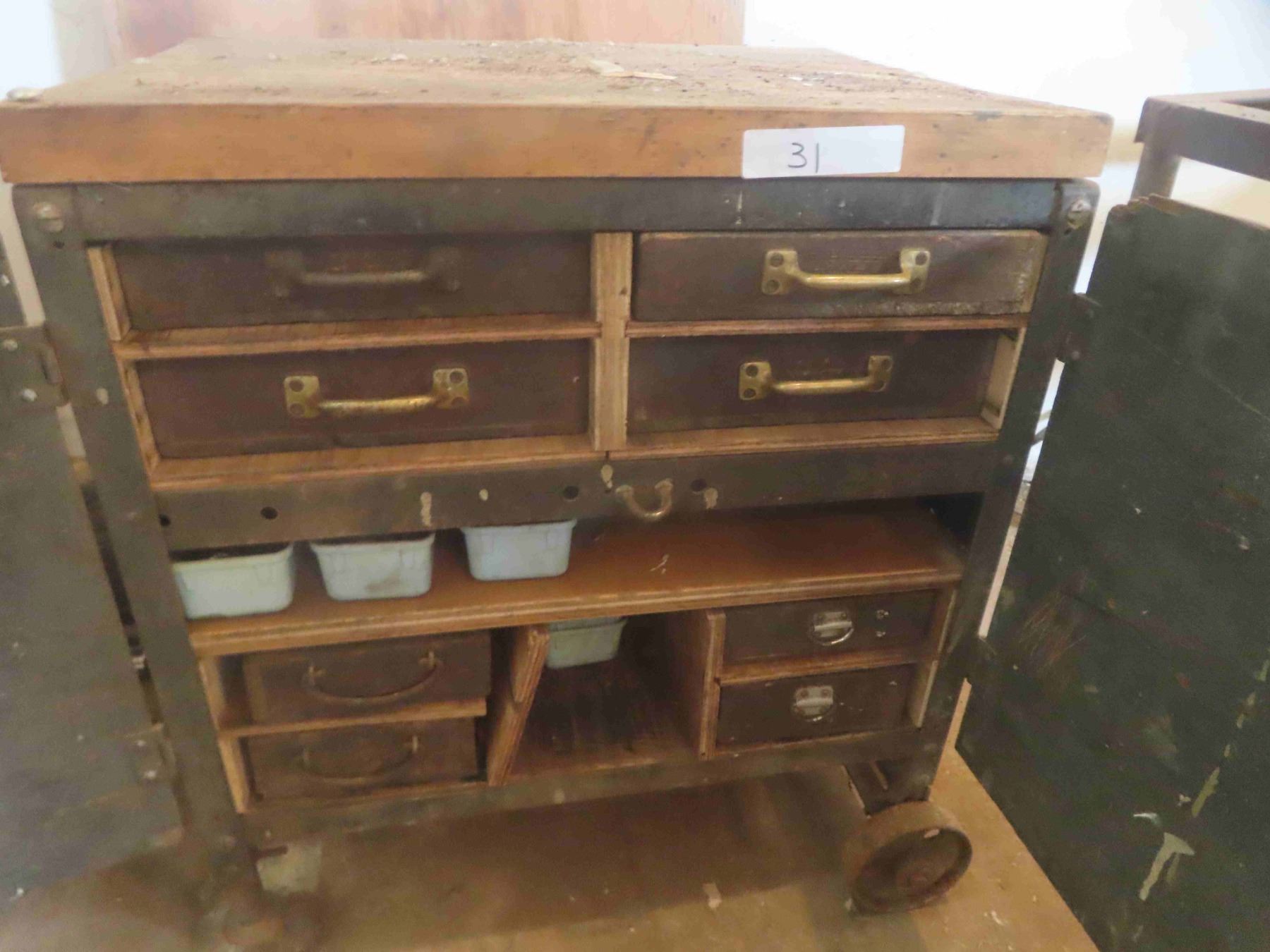 Vintage Wood Organizes Rolling With Drawers Full Of Nuts And Bolts