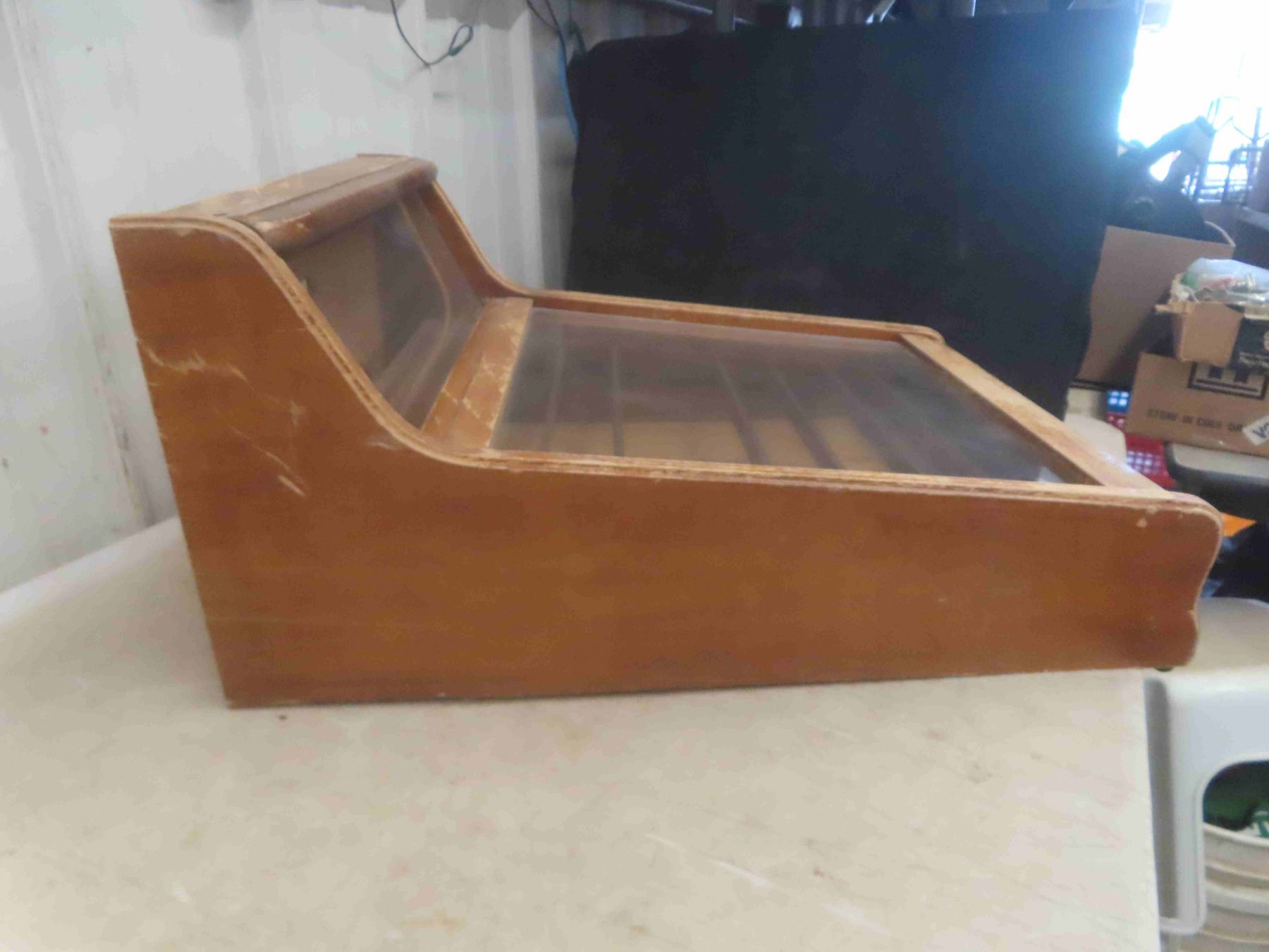 Vintage Wood/Plexi Glass Counter Cigarette/Tobacco Dispenser 19 1/4'' x 11 1/2'' Tapers To 4 3/4'' x 23 1/2''