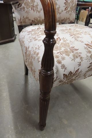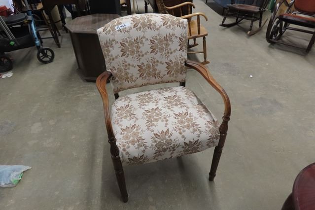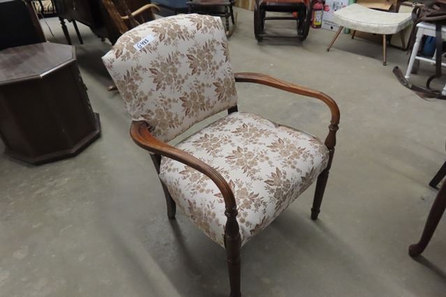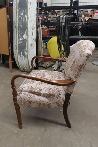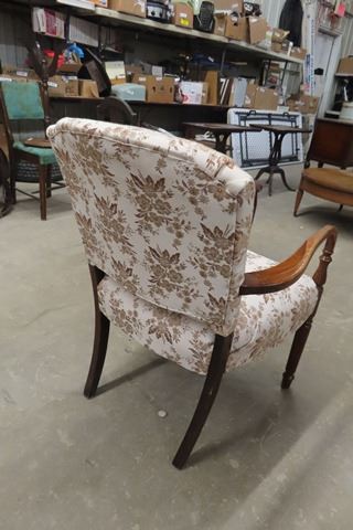 Vintage Wooden Arm Chair with Upholstered Seat + Back