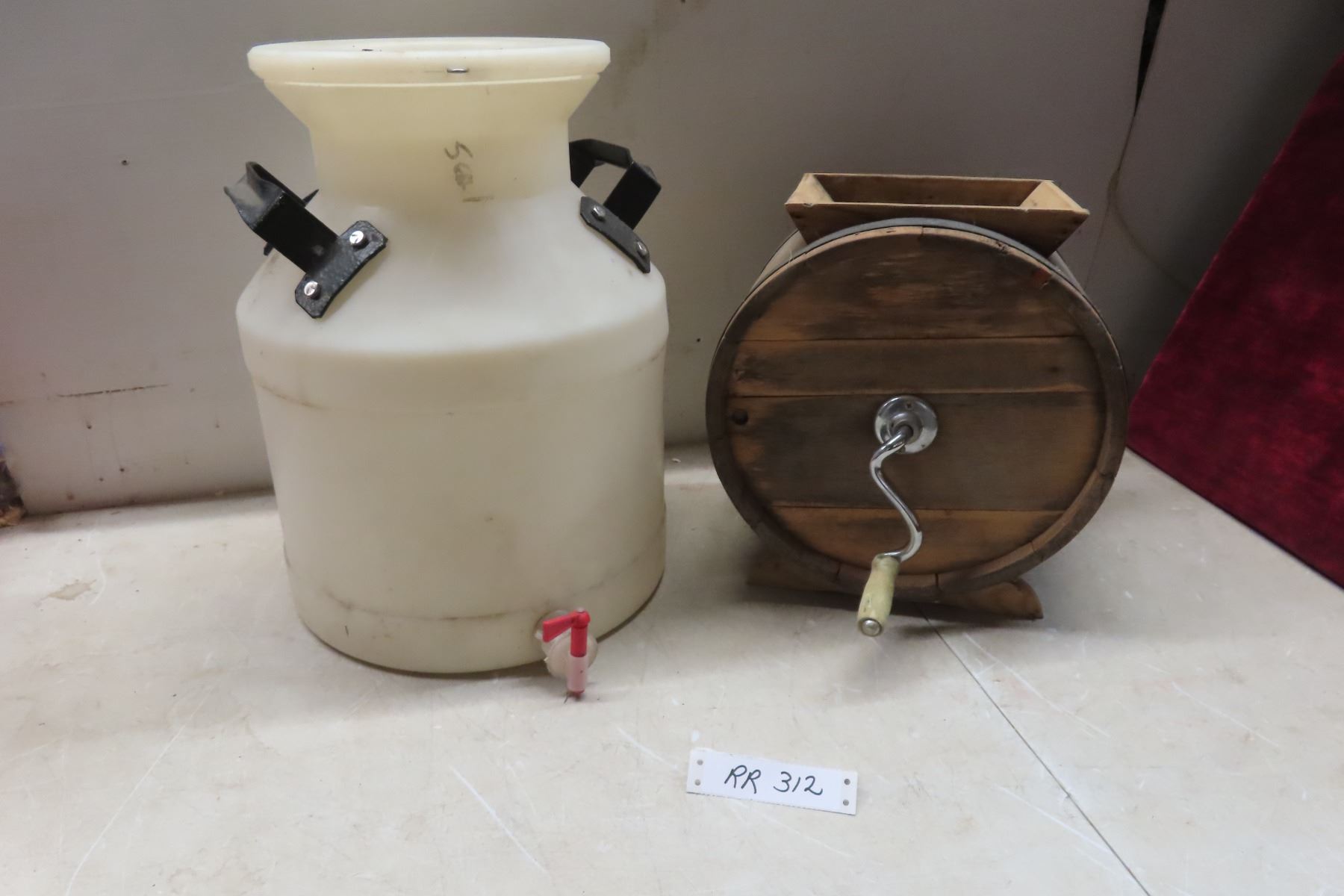 Vintage Wooden Barrel Butter Churn and Poly Dispensing Container