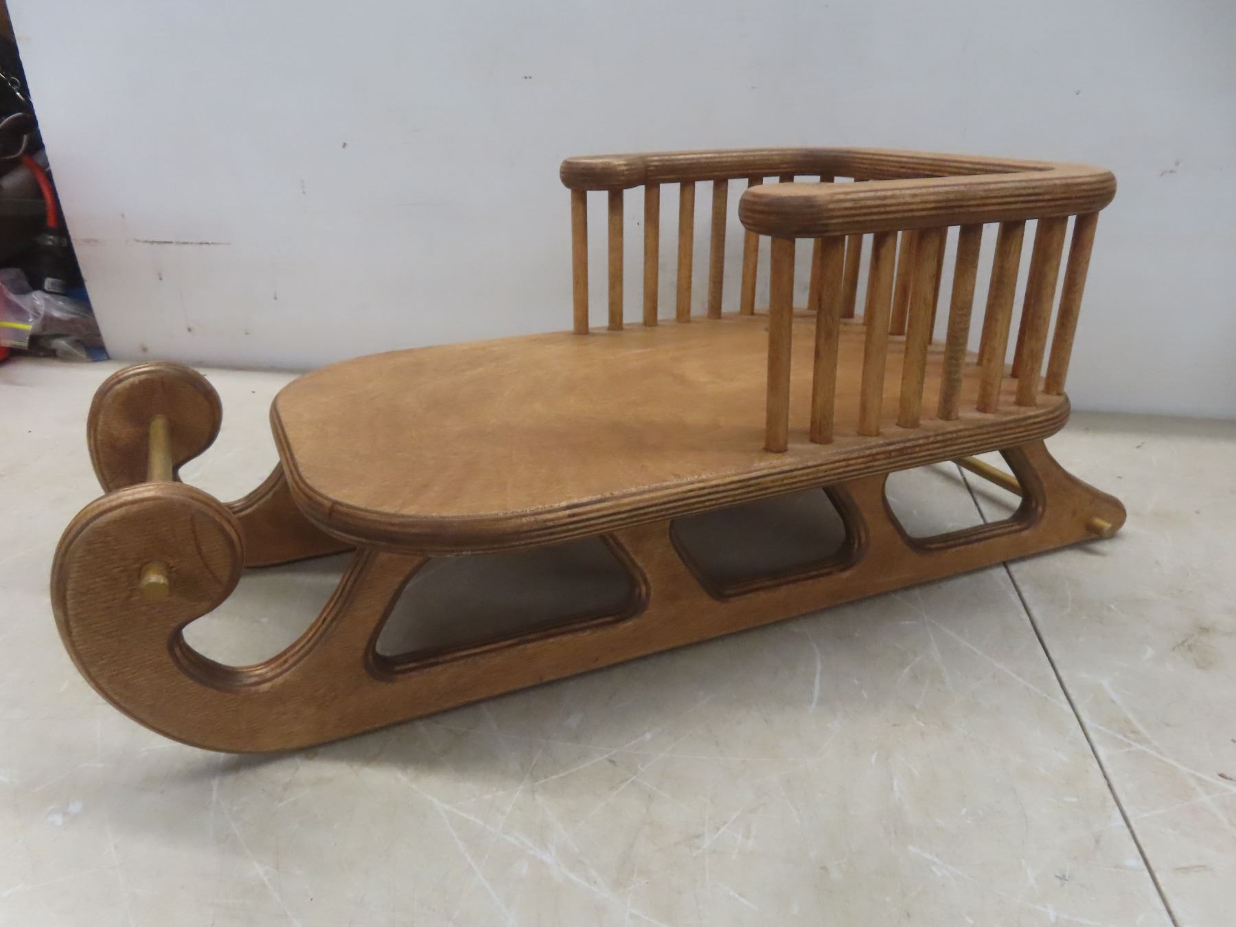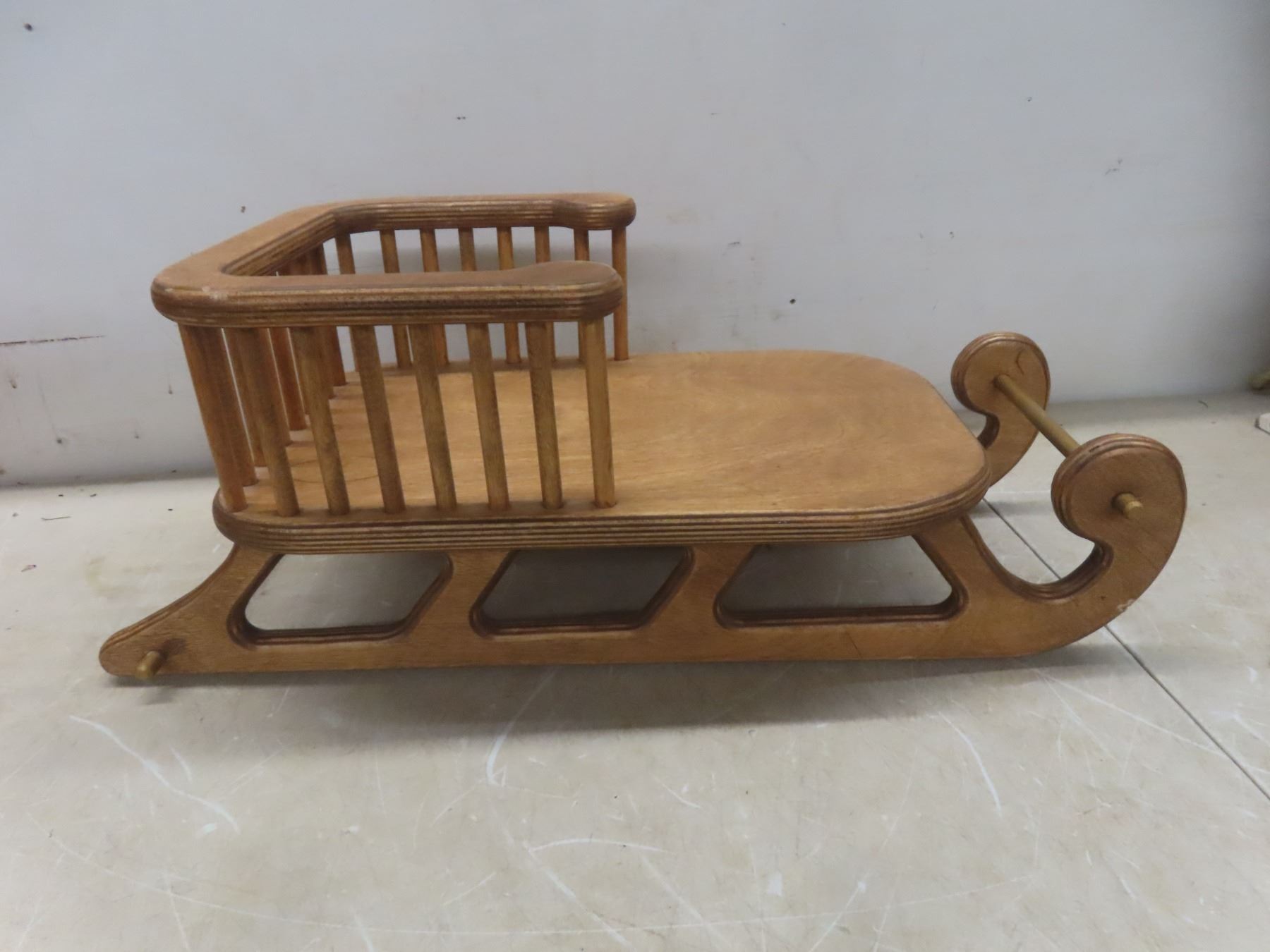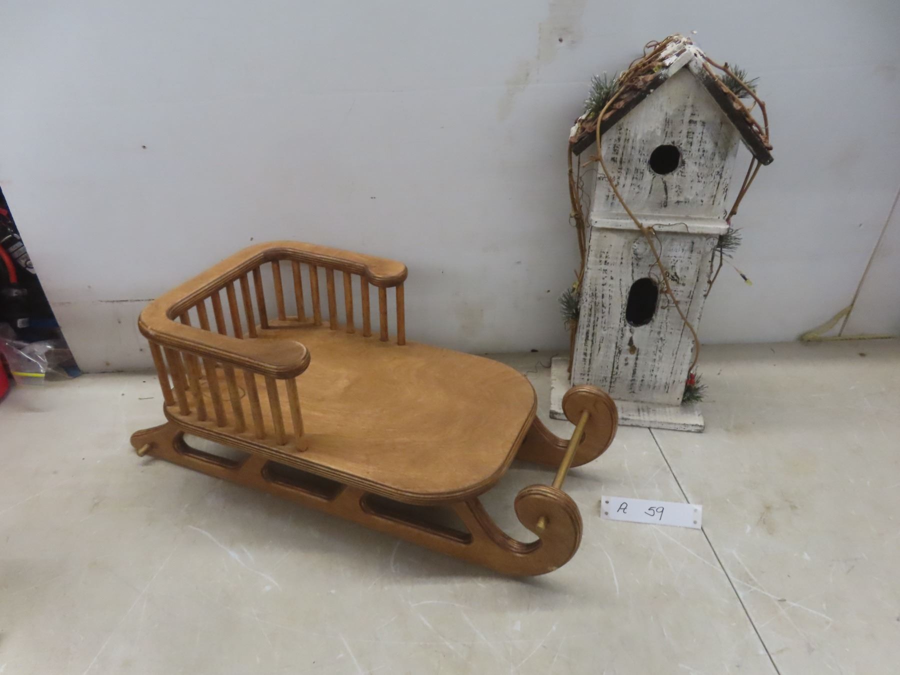 Vintage Wooden Sleigh (9" × 22½" × 10") and Decorative Bird House