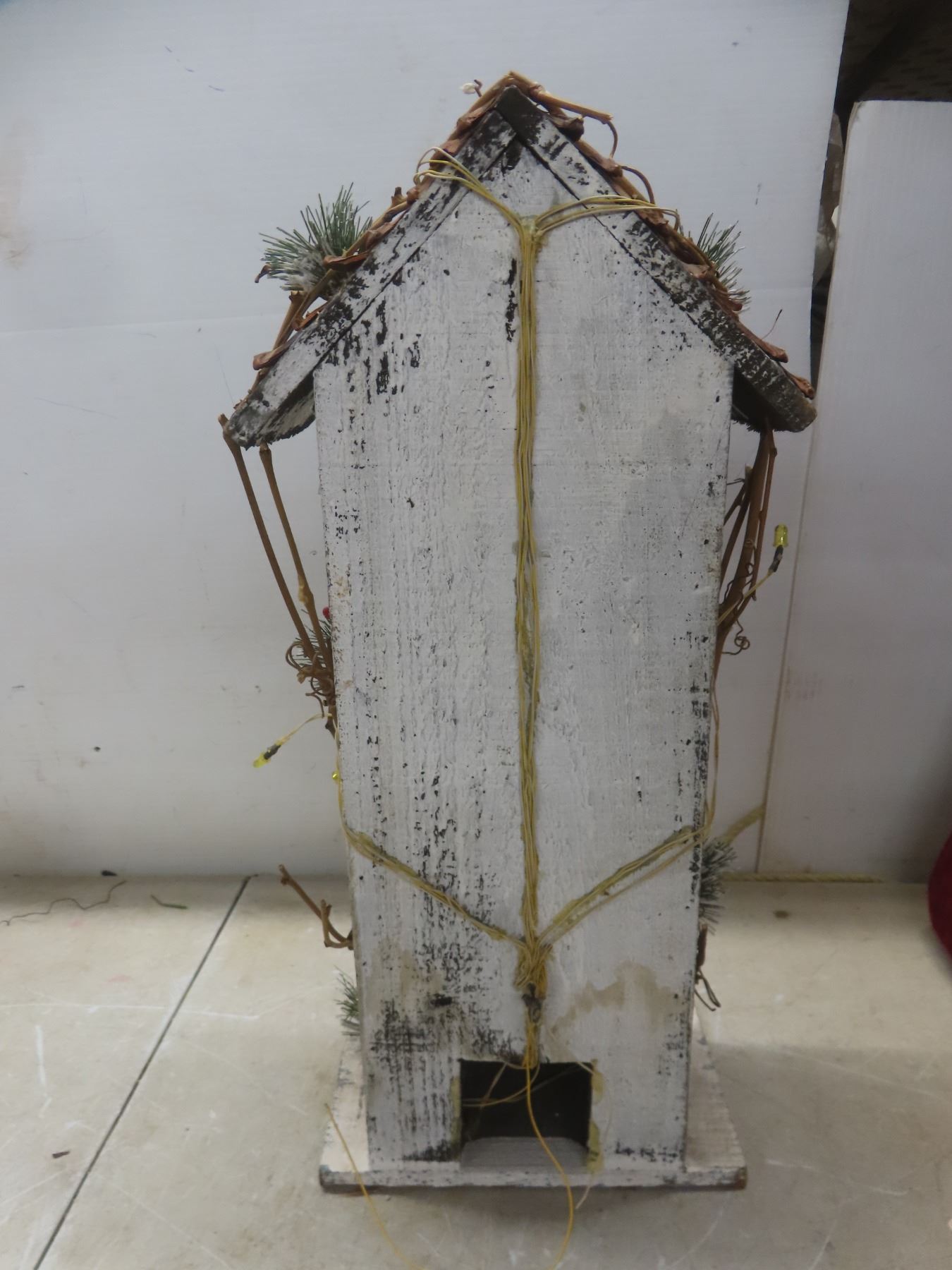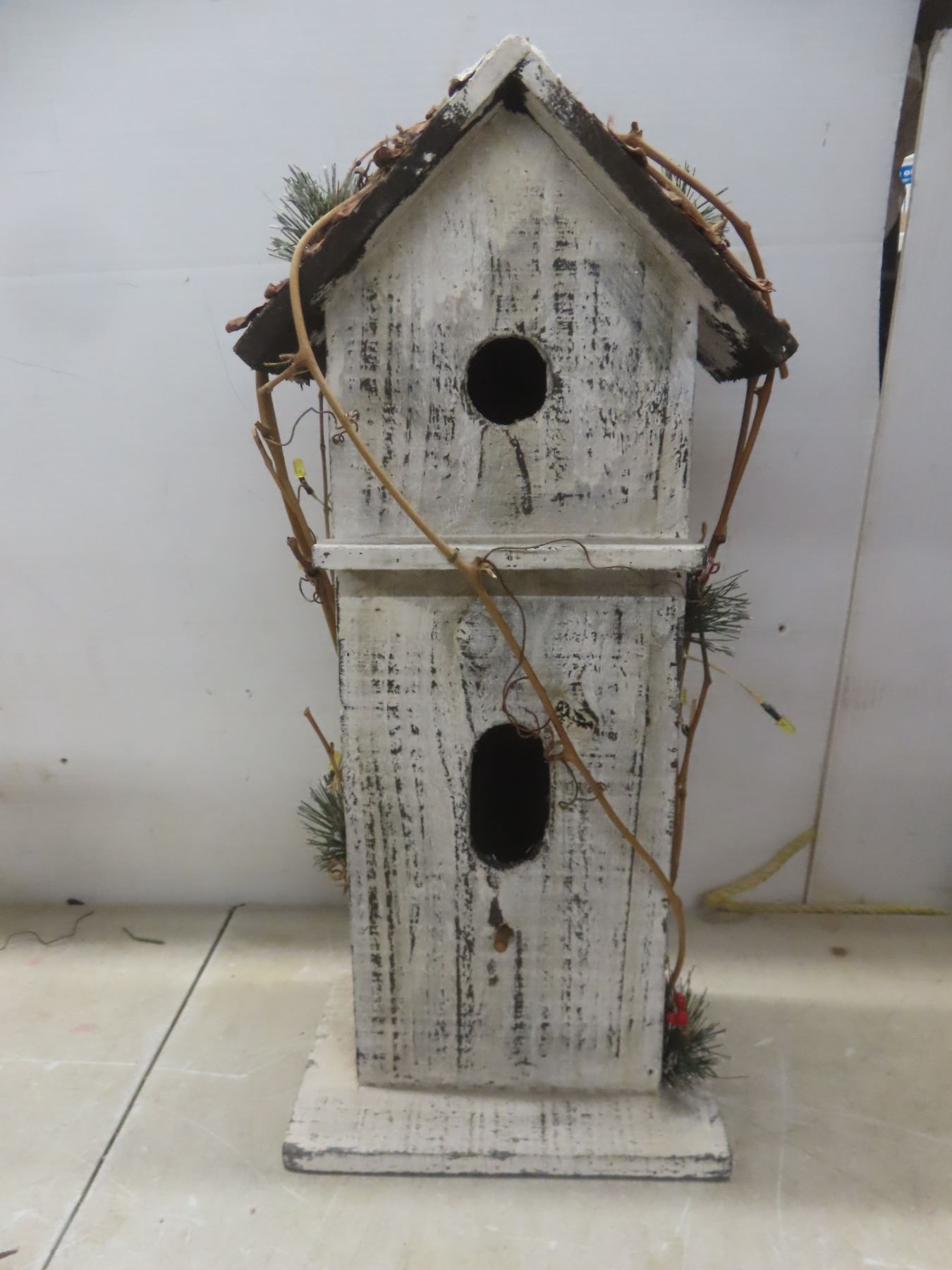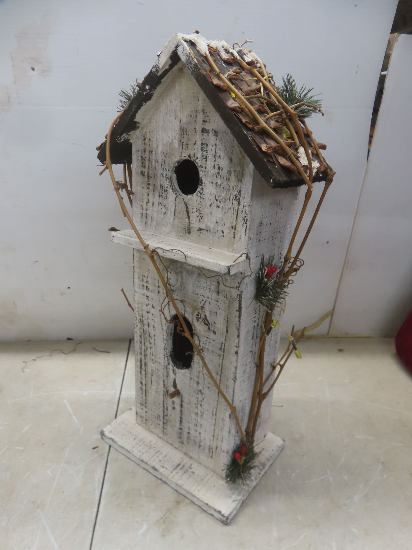 Vintage Wooden Sleigh (9" × 22½" × 10") and Decorative Bird House