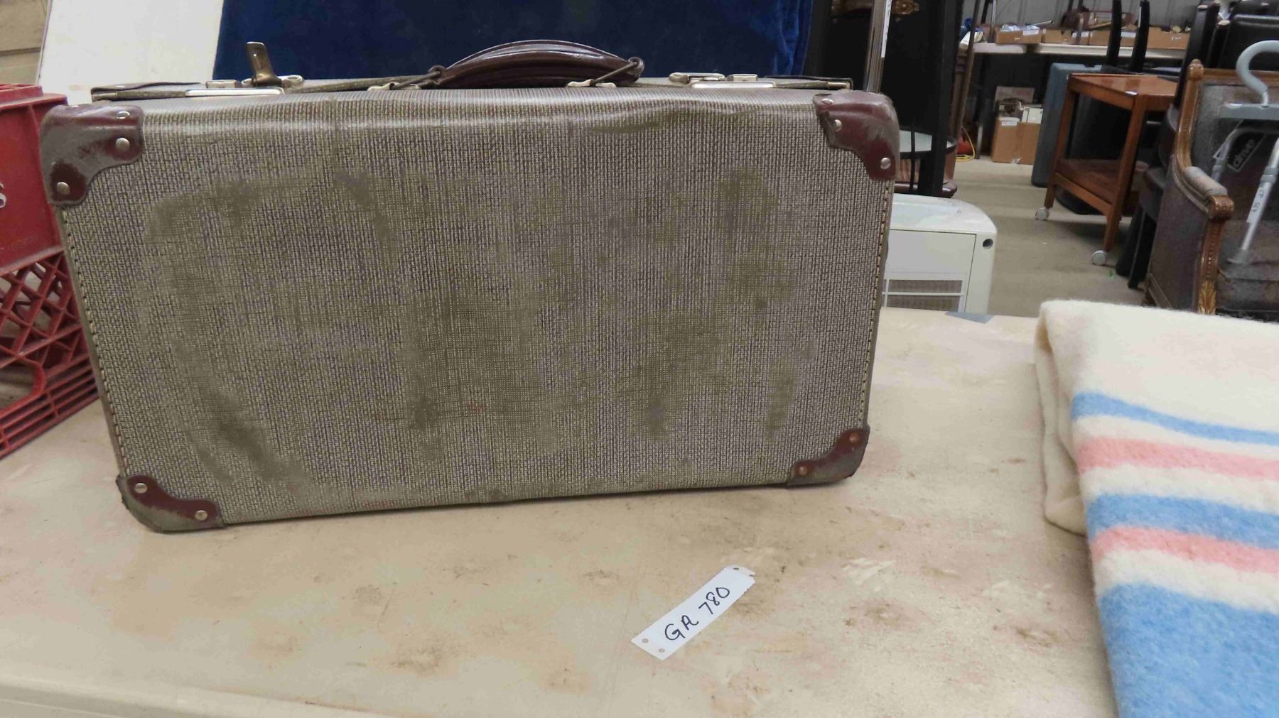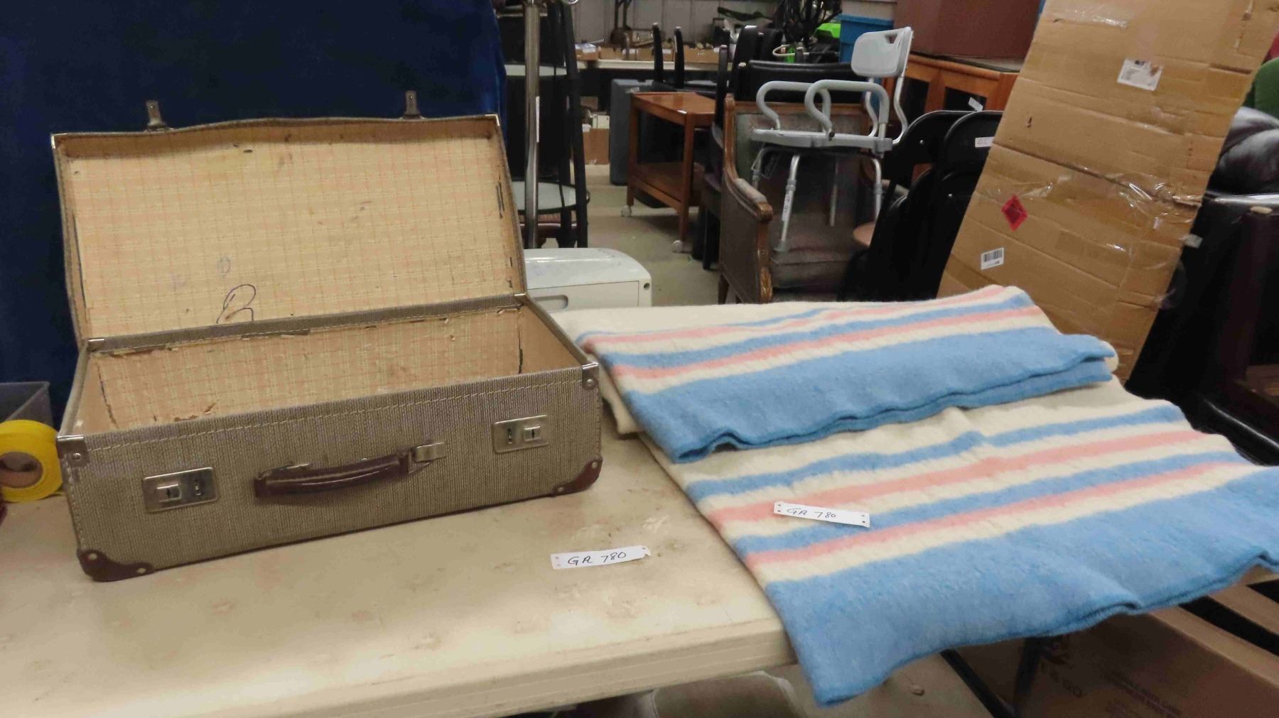 Vintage Wool Blanket 60" x 72" (approx.) & Suitcase