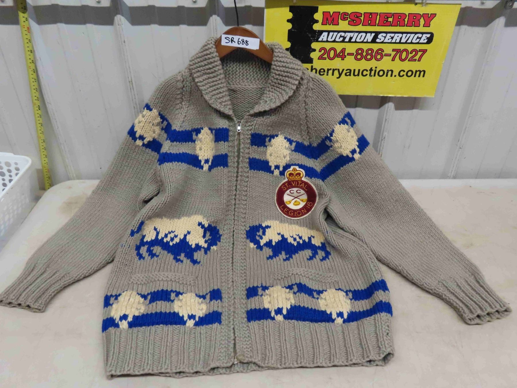 Vintage Wool Curling Sweater - Buffalos with St. Vital Curling Patch - Easy Sz L/ XL