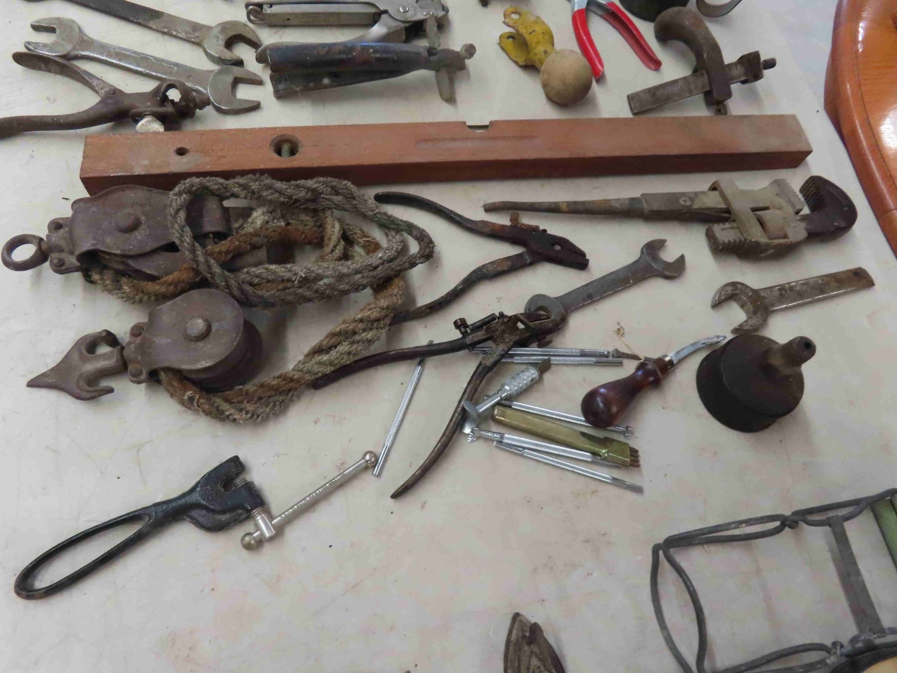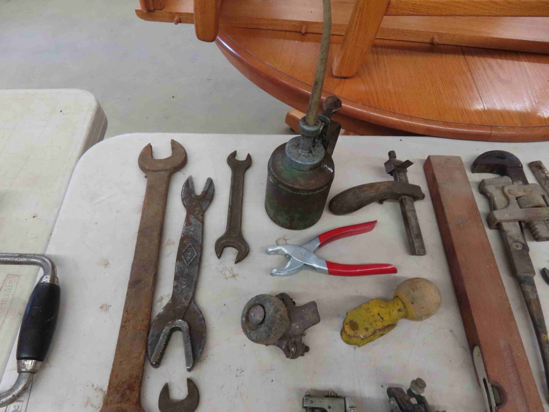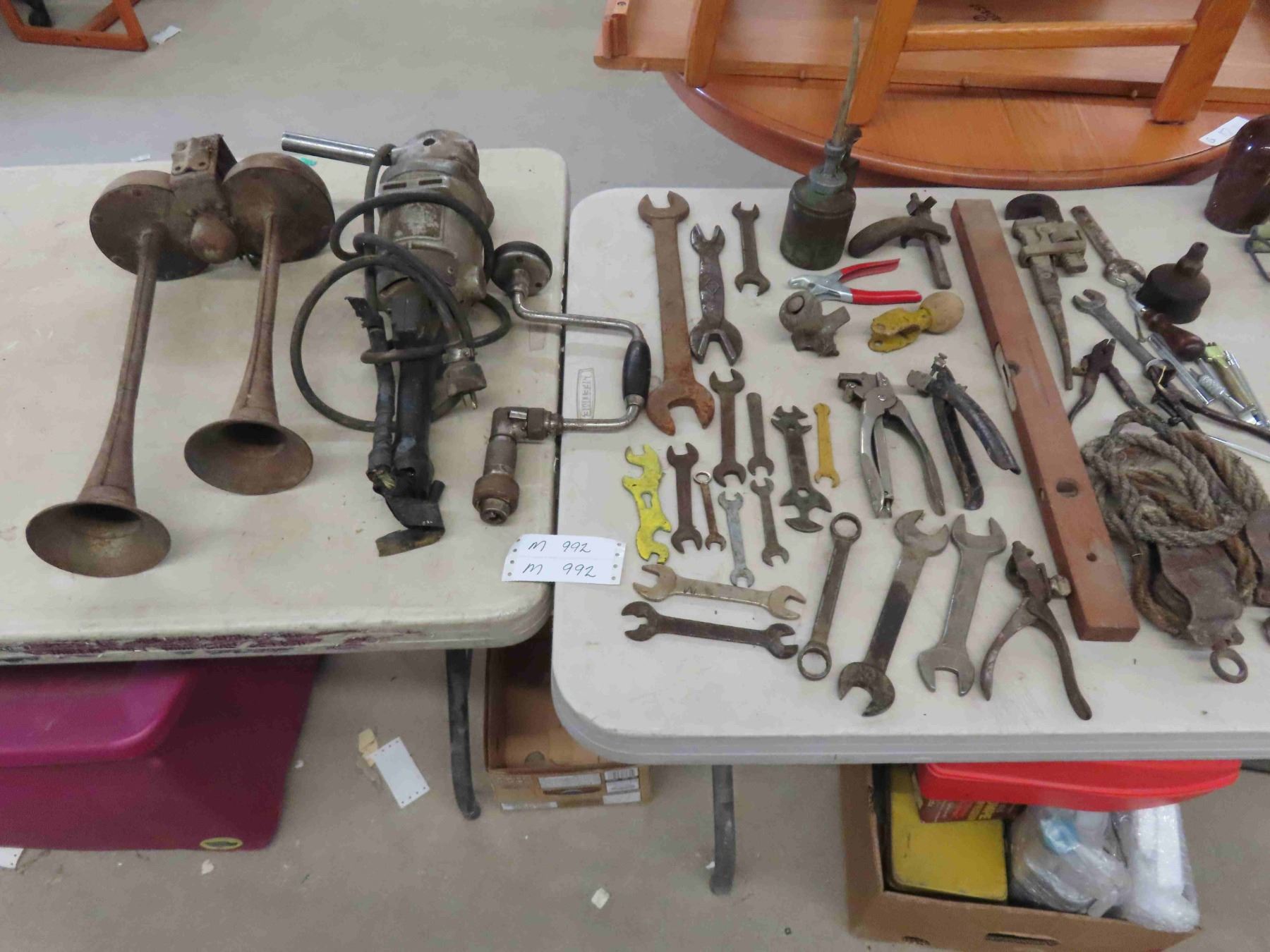 Vintage Wrenches, Pulleys, Oiler, Level, Truck Horn & More
