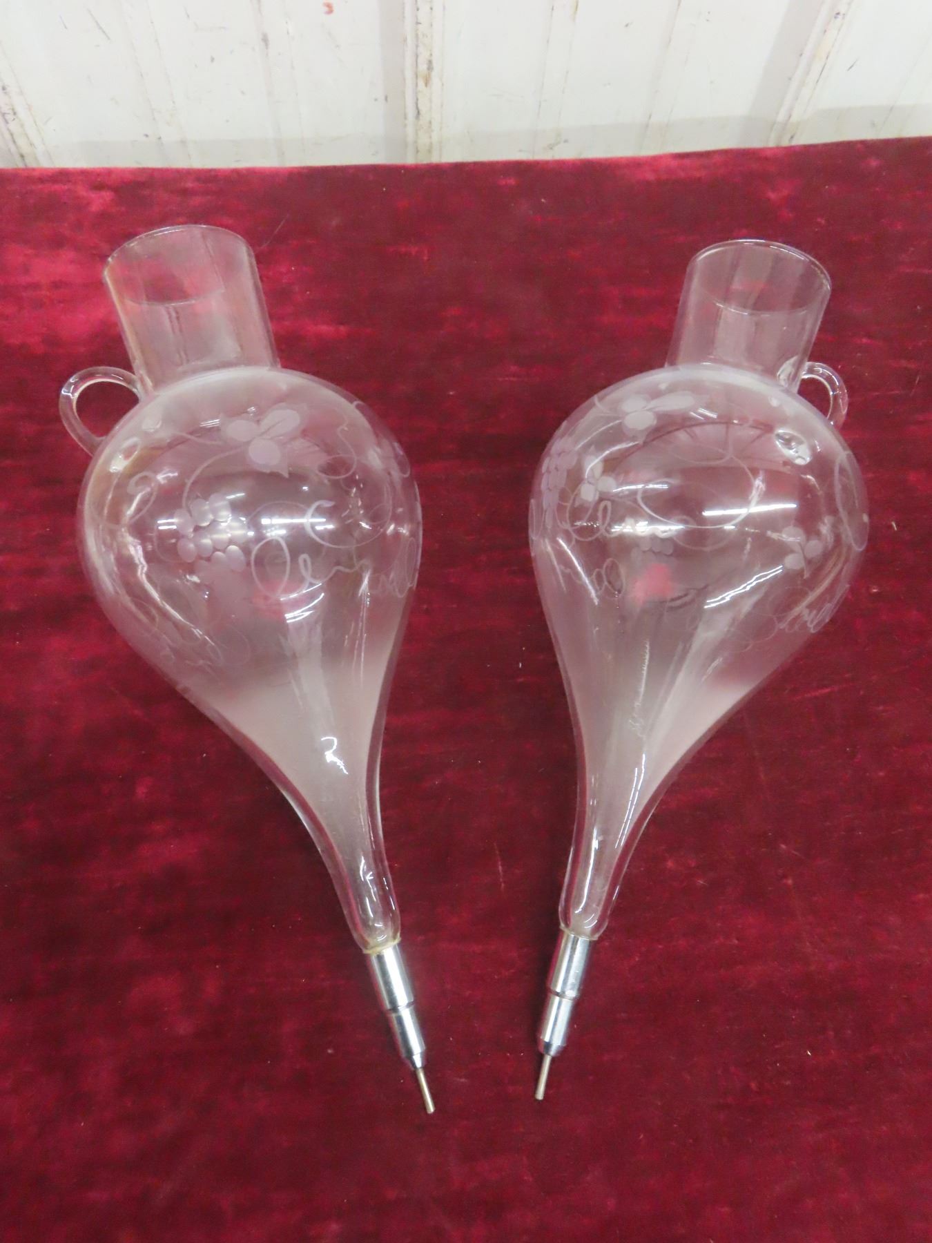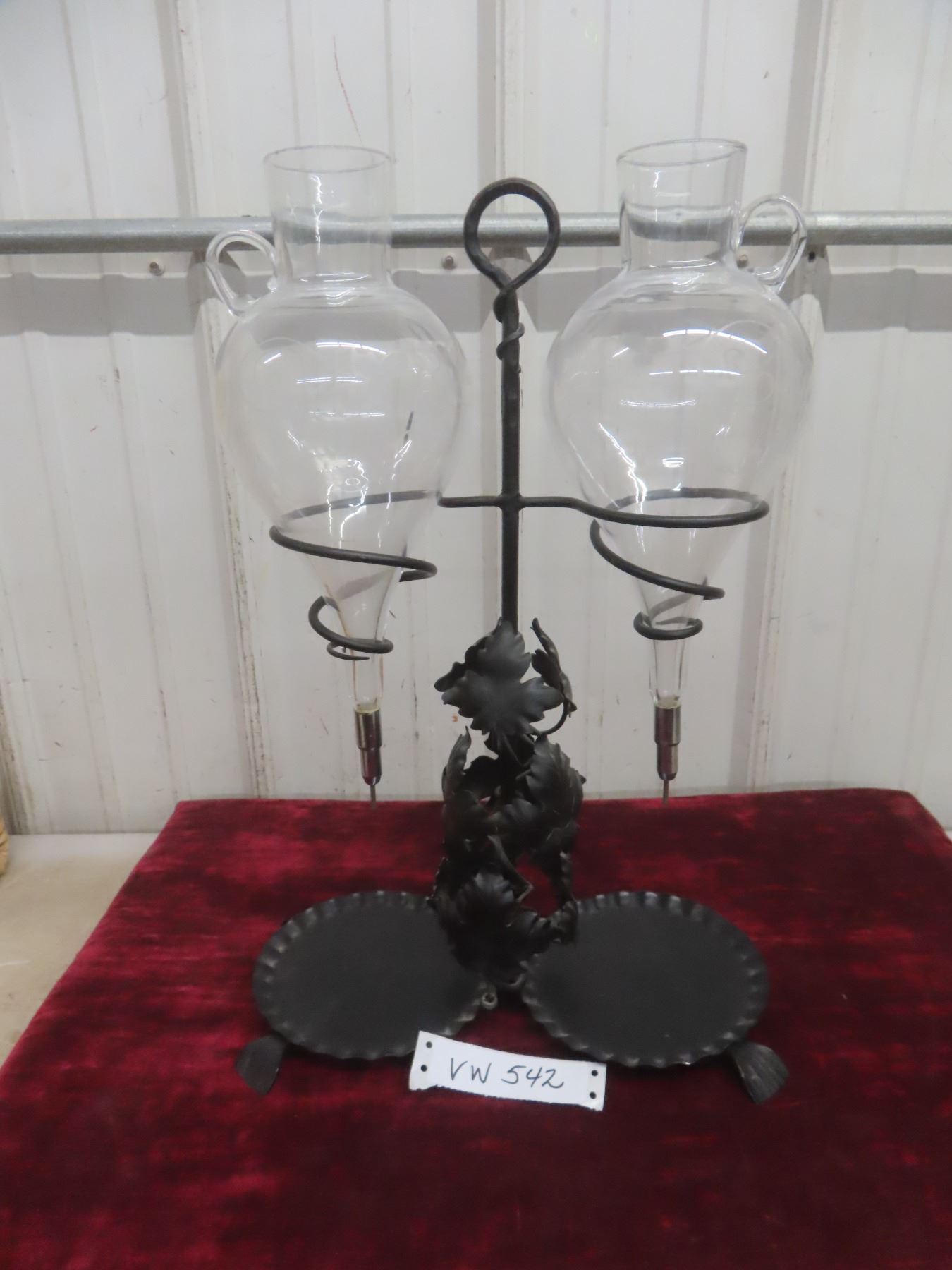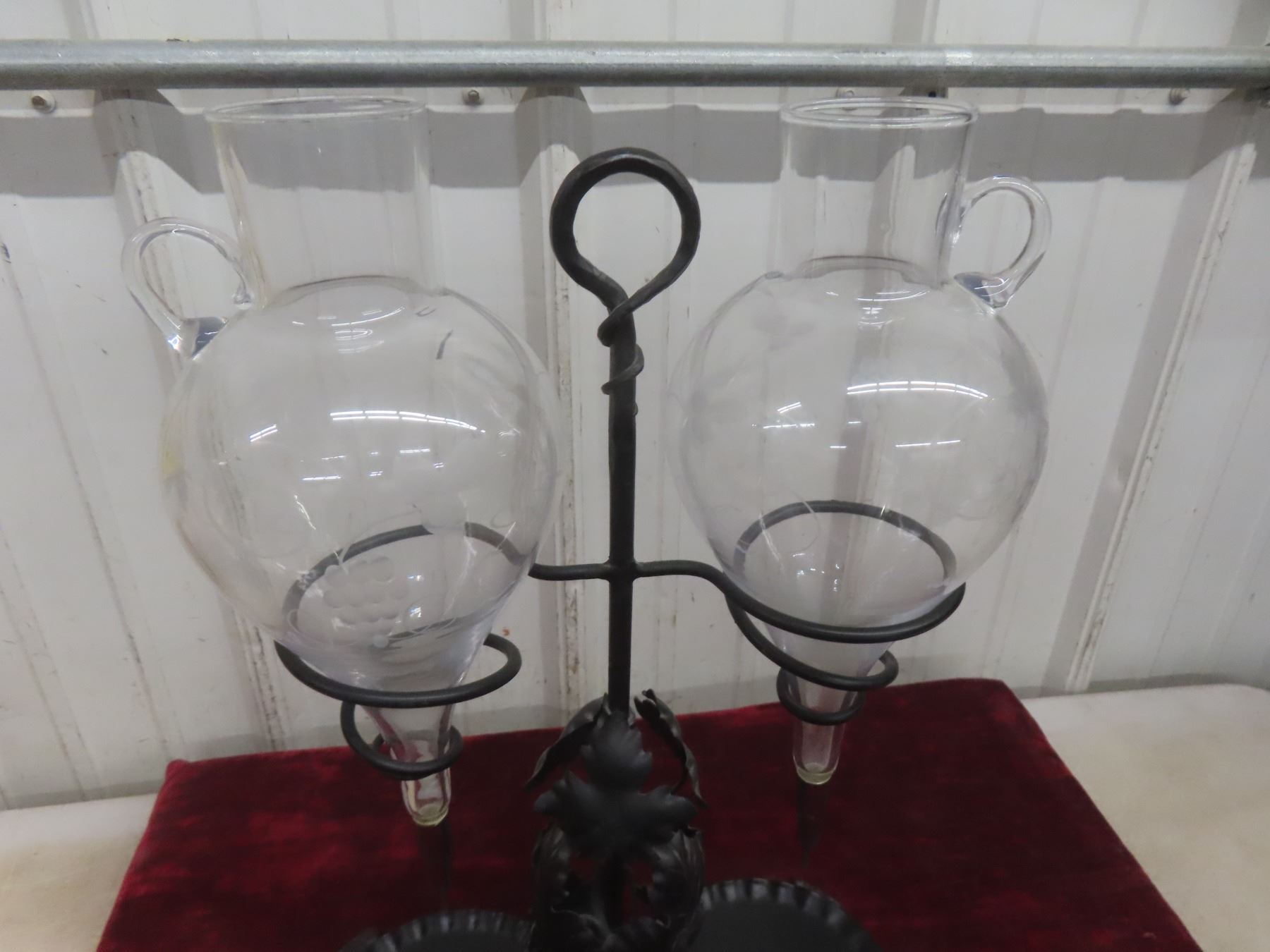 Vintage Wrought-Iron Etched-Glass Double Wine Aerator/Dispenser/Decanter.