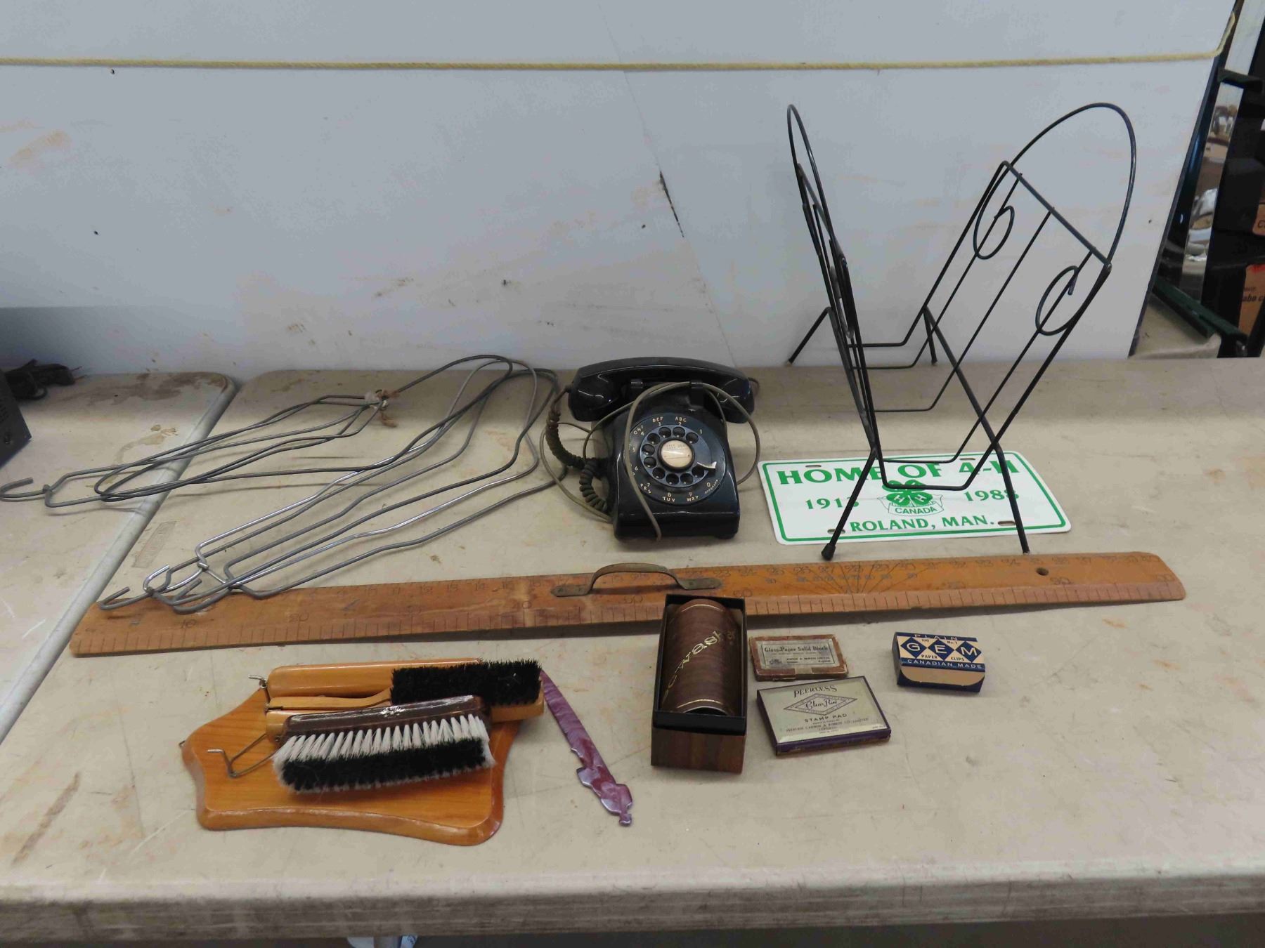 Vintage Yard Stick, Desk Phone , Sock Forms, Magazine Rack & More