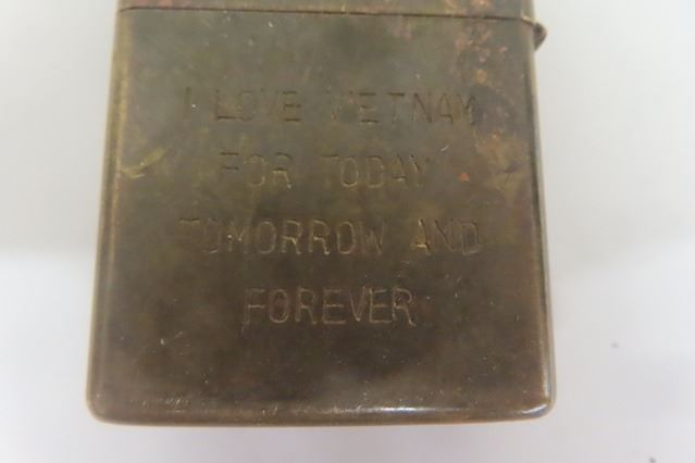 Vintage Zippo Vietnam Era Lighter - Engraved Vietnam Dong AP BIA 73-73 on Front + ' I Love Vietnam for Today, Tomorrow And Forever ' on Reverse